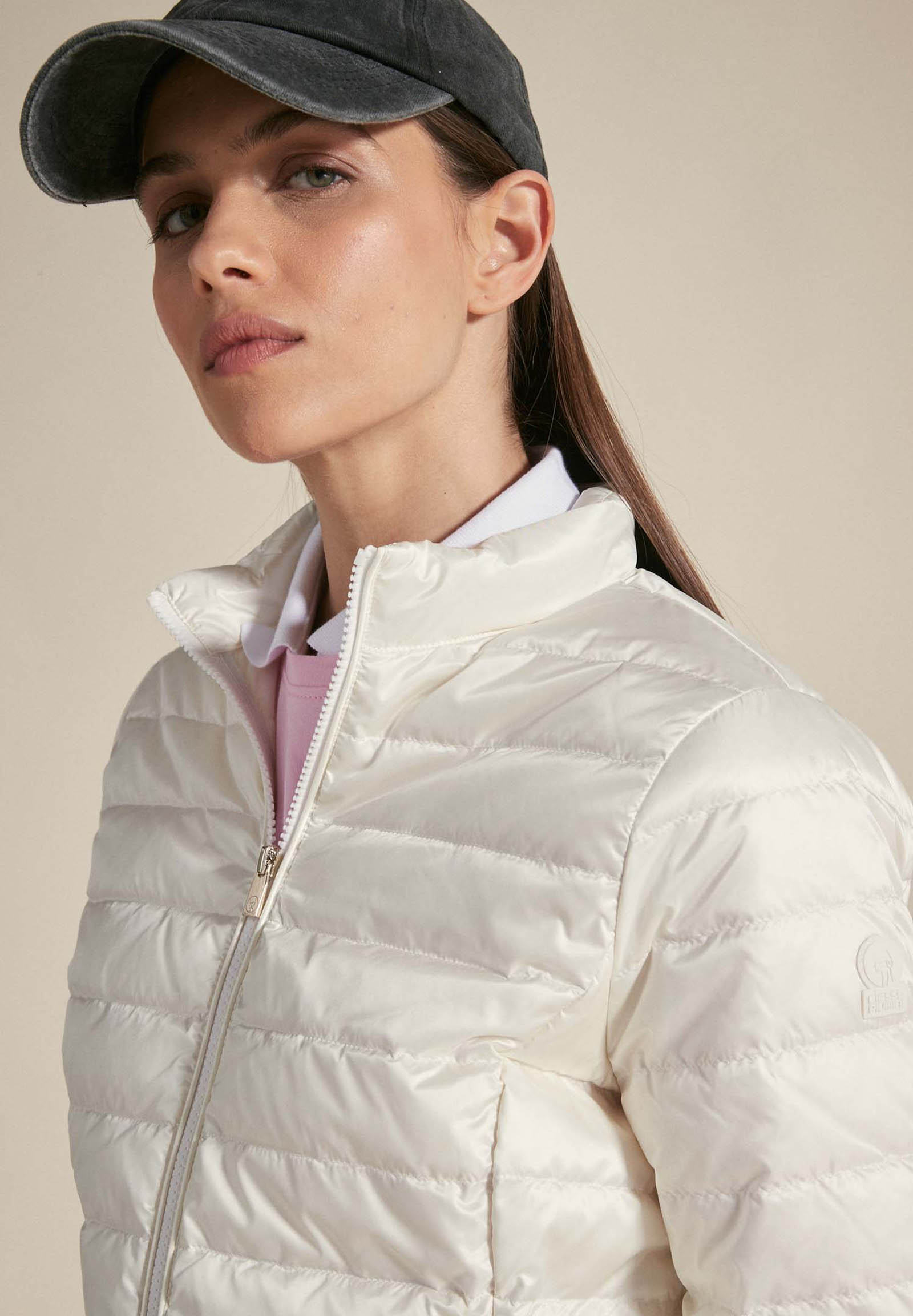 Full zip down jacket made of light calf nylon fabric and characterized by 800 fill power certified real natural down padding. The down jacket has a regular fit, and is characterized by a double slider closure in light gold metal, a zip and a matching logo. The Pola Long is a Ciesse Piumini best seller and is offered in different shades for the Spring/Summer season.