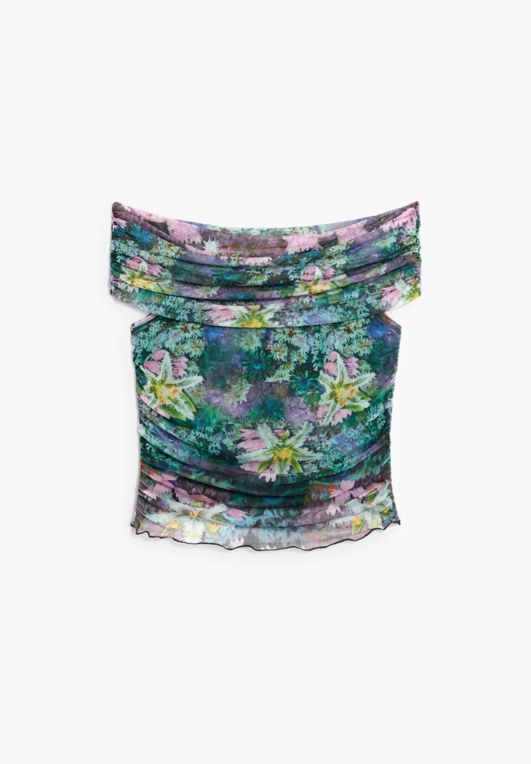 Tank top in tulle fabric with floral print 26SWTK22