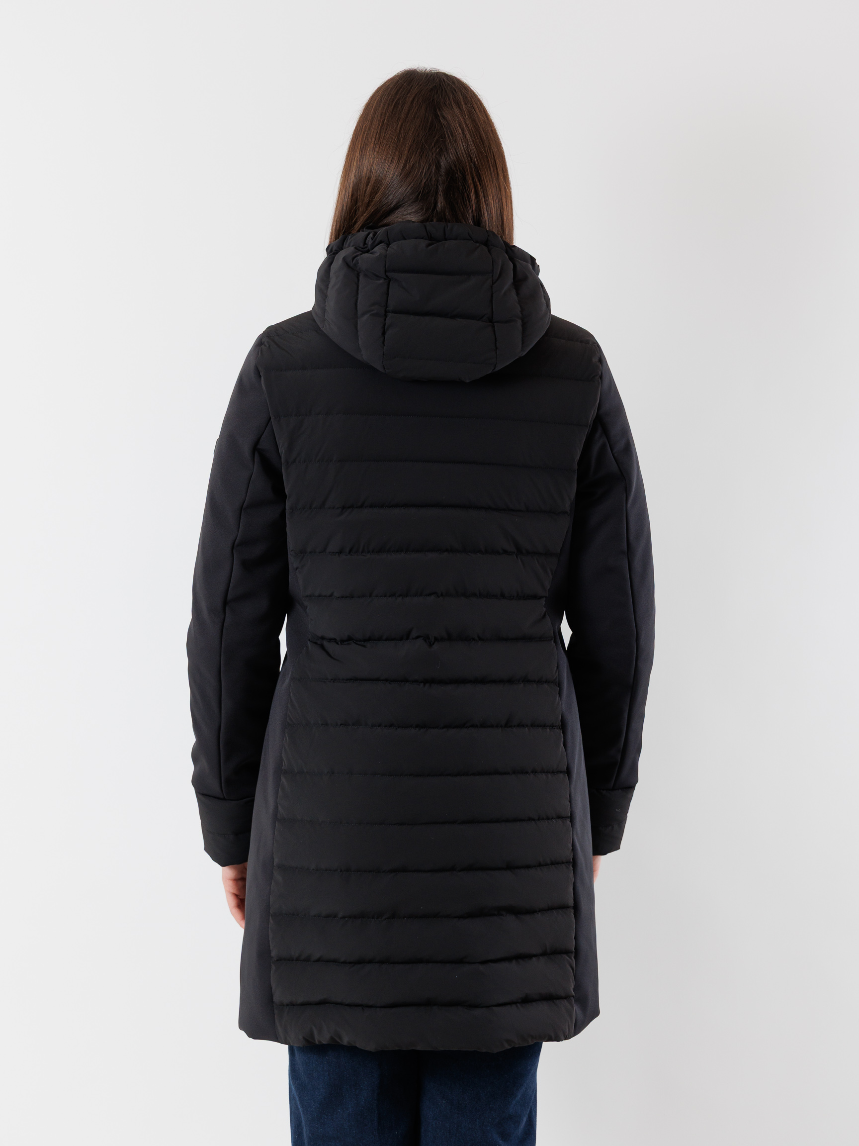 The Hox padded technical coat is designed for those looking for a perfect balance between functionality and contemporary style. Made with high-performance technical fabrics (88% polyamide, 12% elastane) and padding of down and feathers, it offers optimal protection against cold, wind, and moisture while maintaining a lightweight and comfortable fit.The padded interior ensures consistent warmth throughout the winter season, while the fitted and modern cut enhances the feminine silhouette. The integrated hood and front zip closure make the coat practical and versatile, perfect for complementing your urban or travel looks.Like all Hox garments, this coat is entirely made in Italy, synonymous with tailoring quality and attention to detail. An elegant and functional outerwear piece, ideal for facing even the coldest days in style.Product details:Brand: HoxMade in ItalyComposition: 88% Polyamide, 12% ElastanePadding 1: 80% Down, 20% Feather