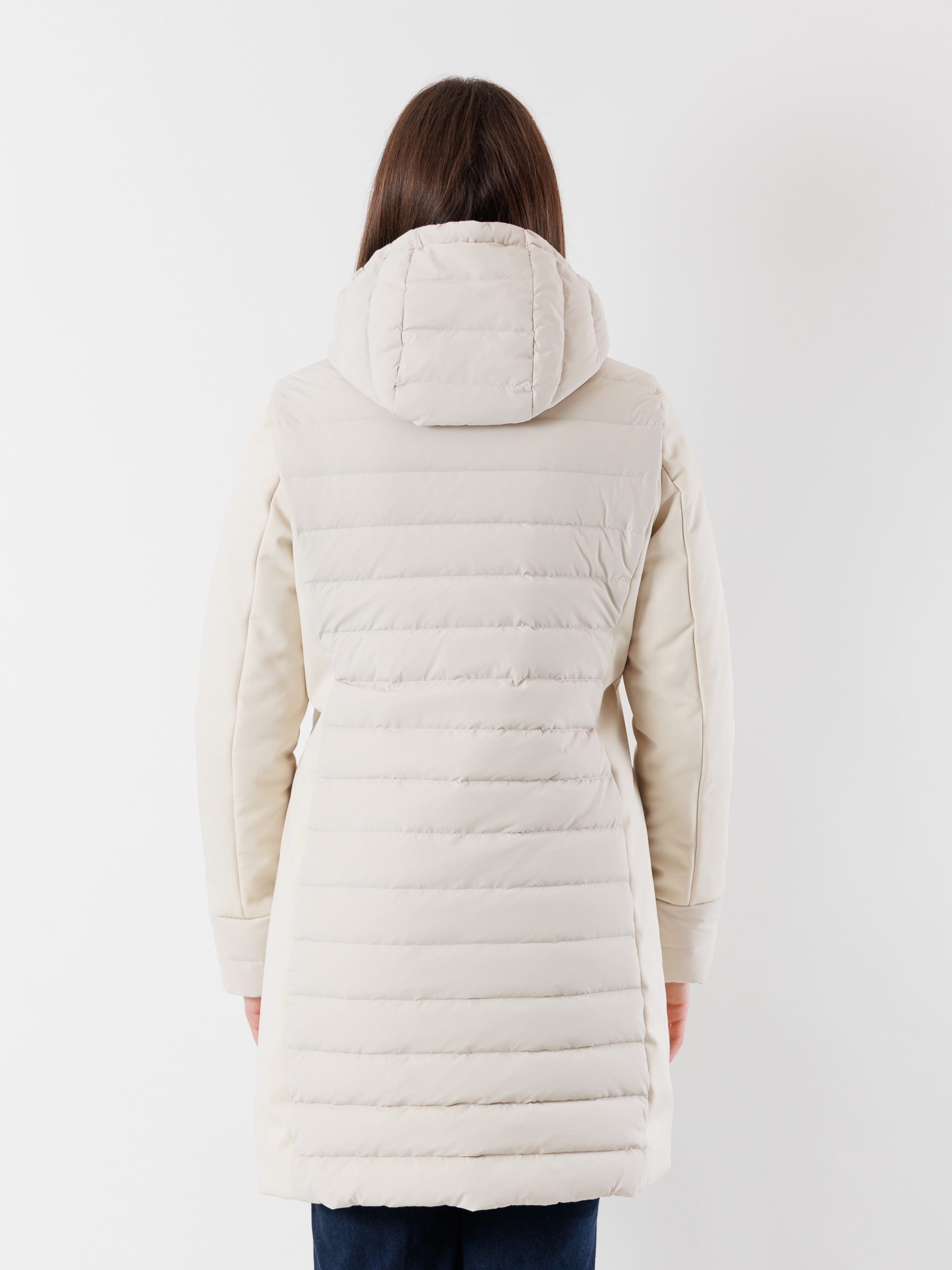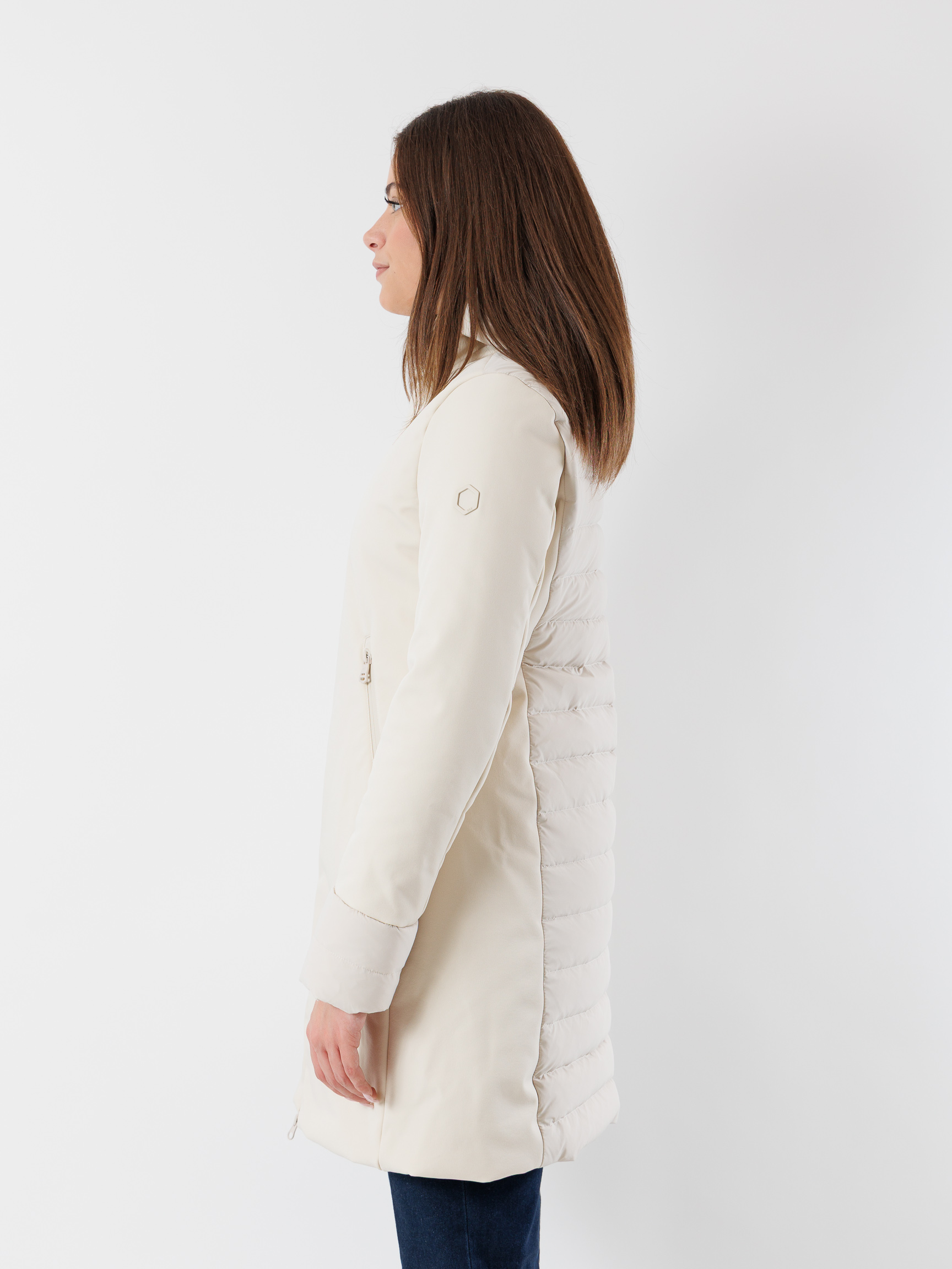 The Hox padded technical coat is designed for those looking for a perfect balance between functionality and contemporary style. Made with high-performance technical fabrics (88% polyamide, 12% elastane) and padding of down and feathers, it offers optimal protection against cold, wind, and moisture while maintaining a lightweight and comfortable fit.The padded interior ensures consistent warmth throughout the winter season, while the fitted and modern cut enhances the feminine silhouette. The integrated hood and front zip closure make the coat practical and versatile, perfect for complementing your urban or travel looks.Like all Hox garments, this coat is entirely made in Italy, synonymous with tailoring quality and attention to detail. An elegant and functional outerwear piece, ideal for facing even the coldest days in style.Product details:Brand: HoxMade in ItalyComposition: 88% Polyamide, 12% ElastanePadding 1: 80% Down, 20% Feather