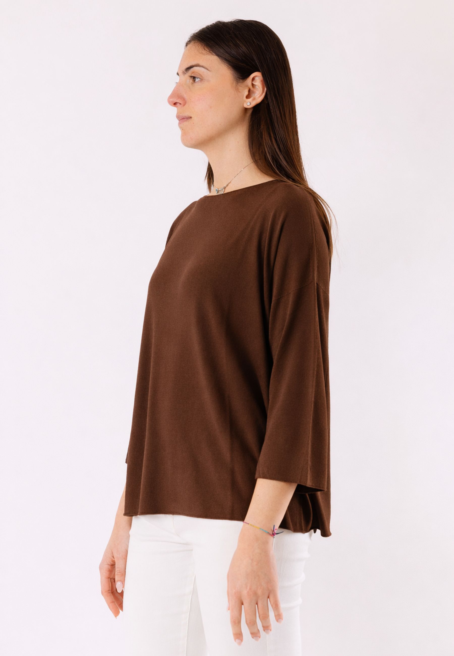 This Kontatto sweater is an essential and versatile piece, perfect for creating casual, elegant, or everyday outfits. The design features a soft, comfortable fit with a round neckline and long sleeves, elements that give it a clean and contemporary look. The slightly loose cut ensures a pleasant and harmonious fit, ideal for those seeking comfort without compromising on style.