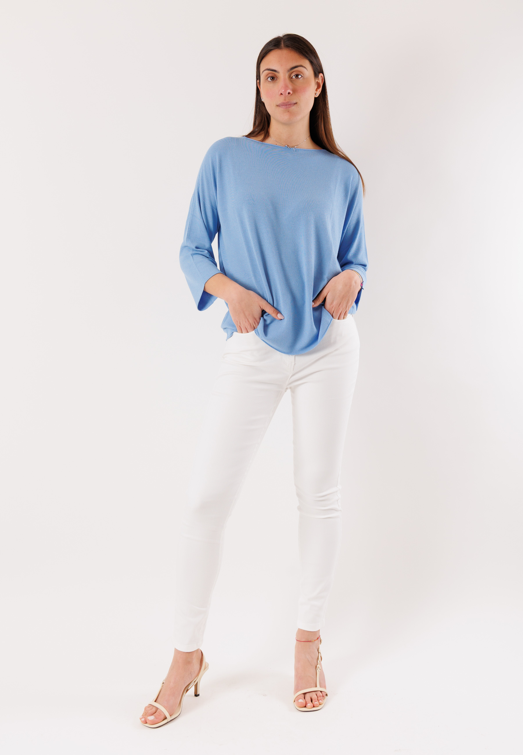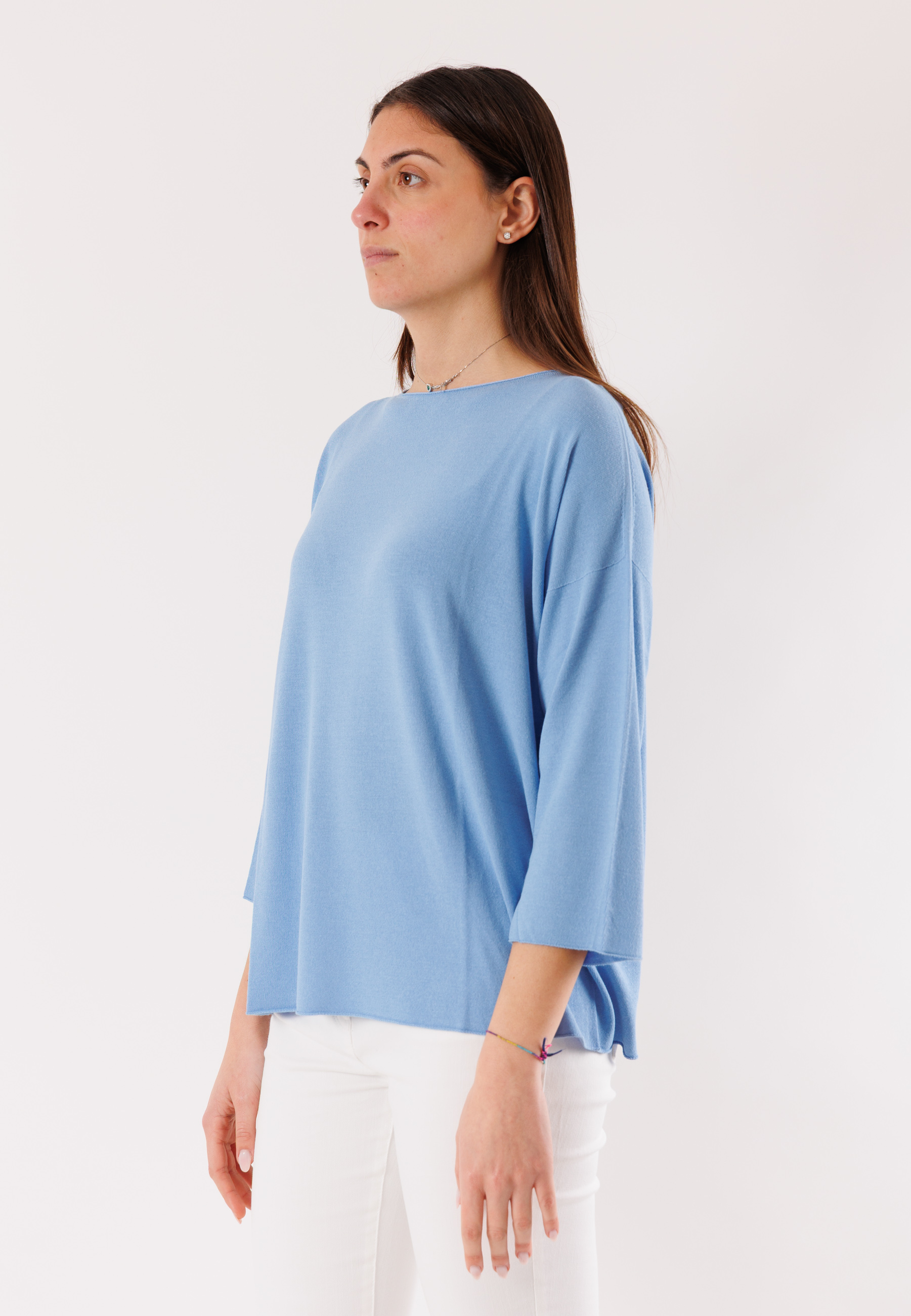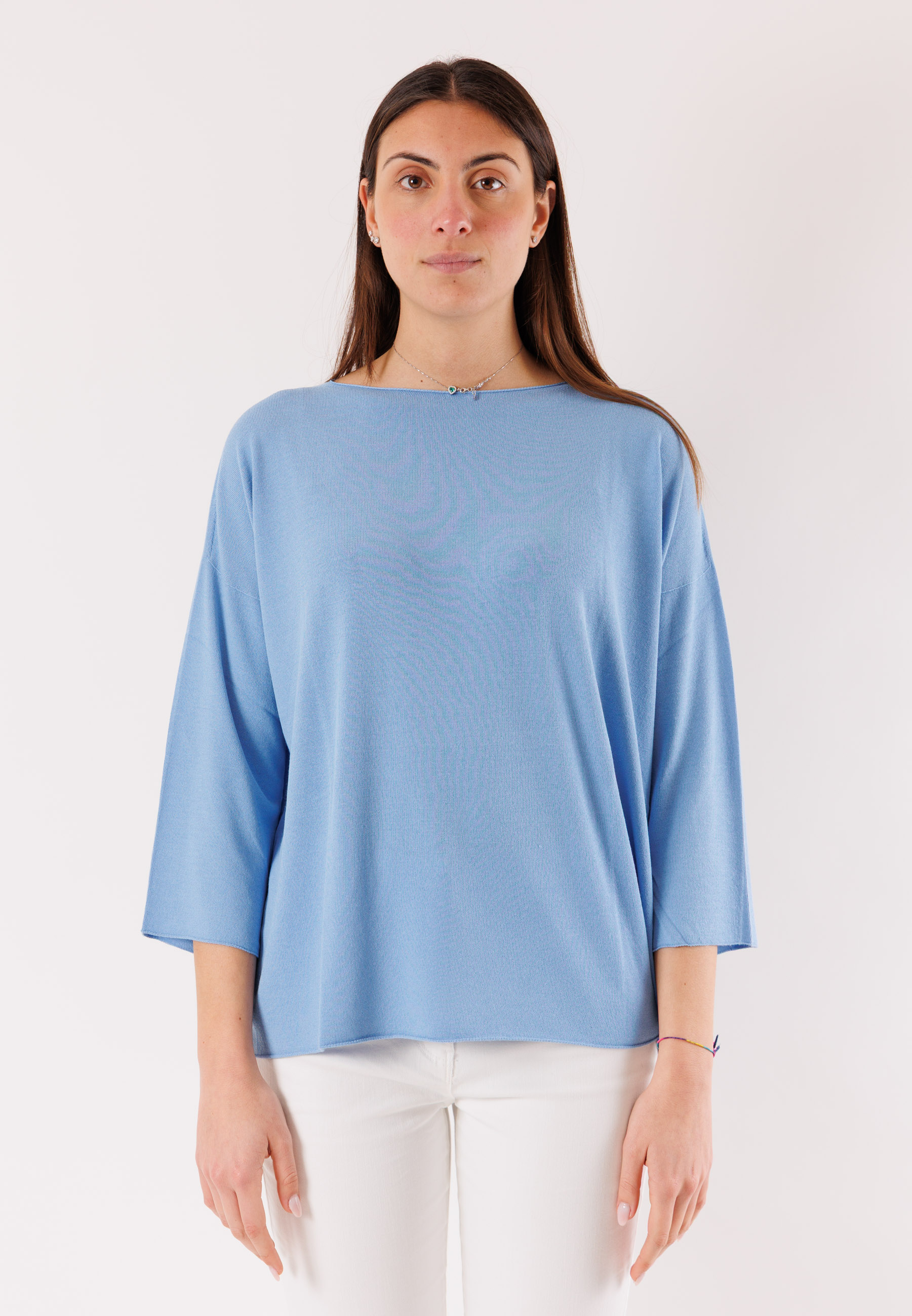 This Kontatto sweater is an essential and versatile piece, perfect for creating casual, elegant, or everyday outfits. The design features a soft, comfortable fit with a round neckline and long sleeves, elements that give it a clean and contemporary look. The slightly loose cut ensures a pleasant and harmonious fit, ideal for those seeking comfort without compromising on style.