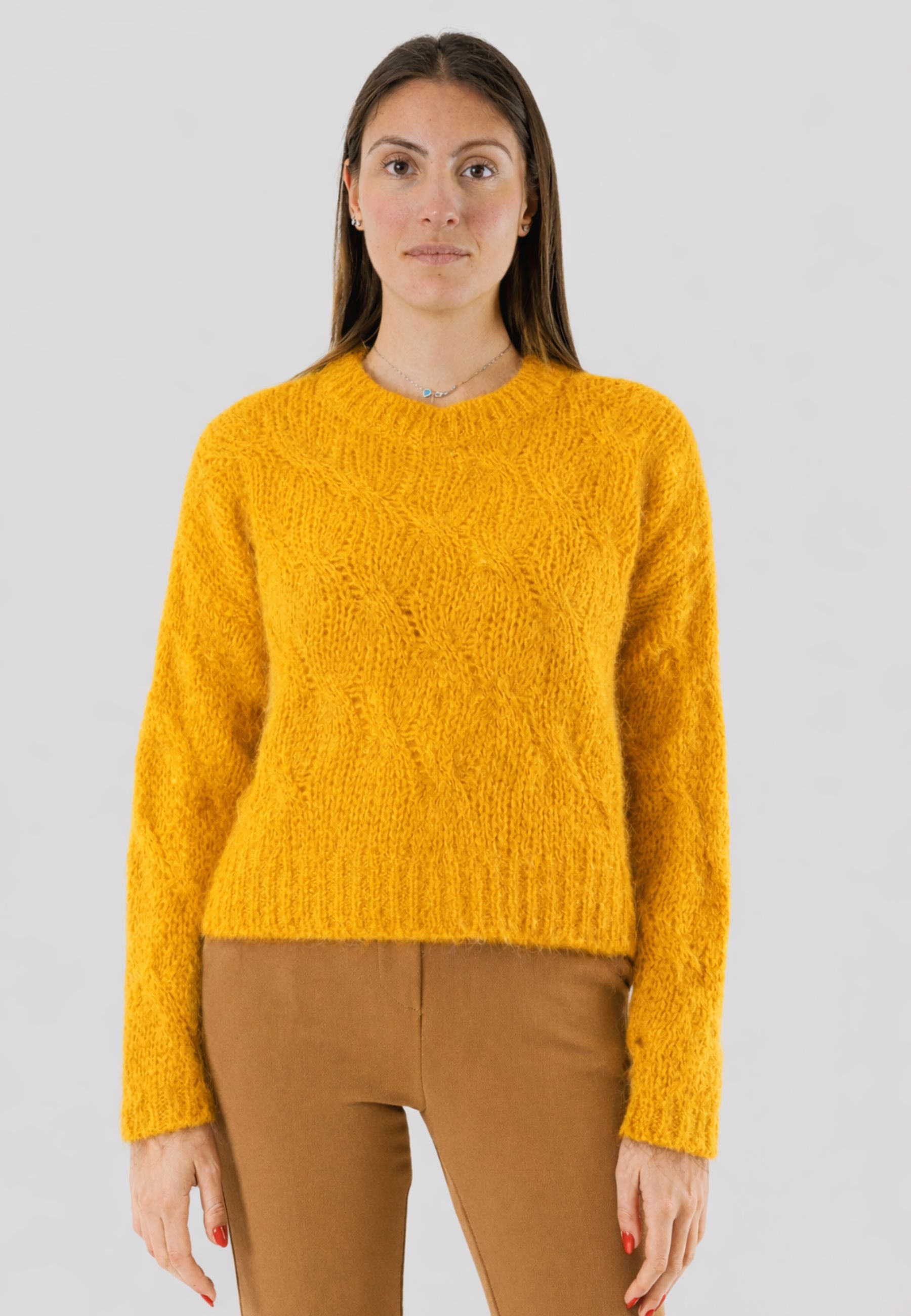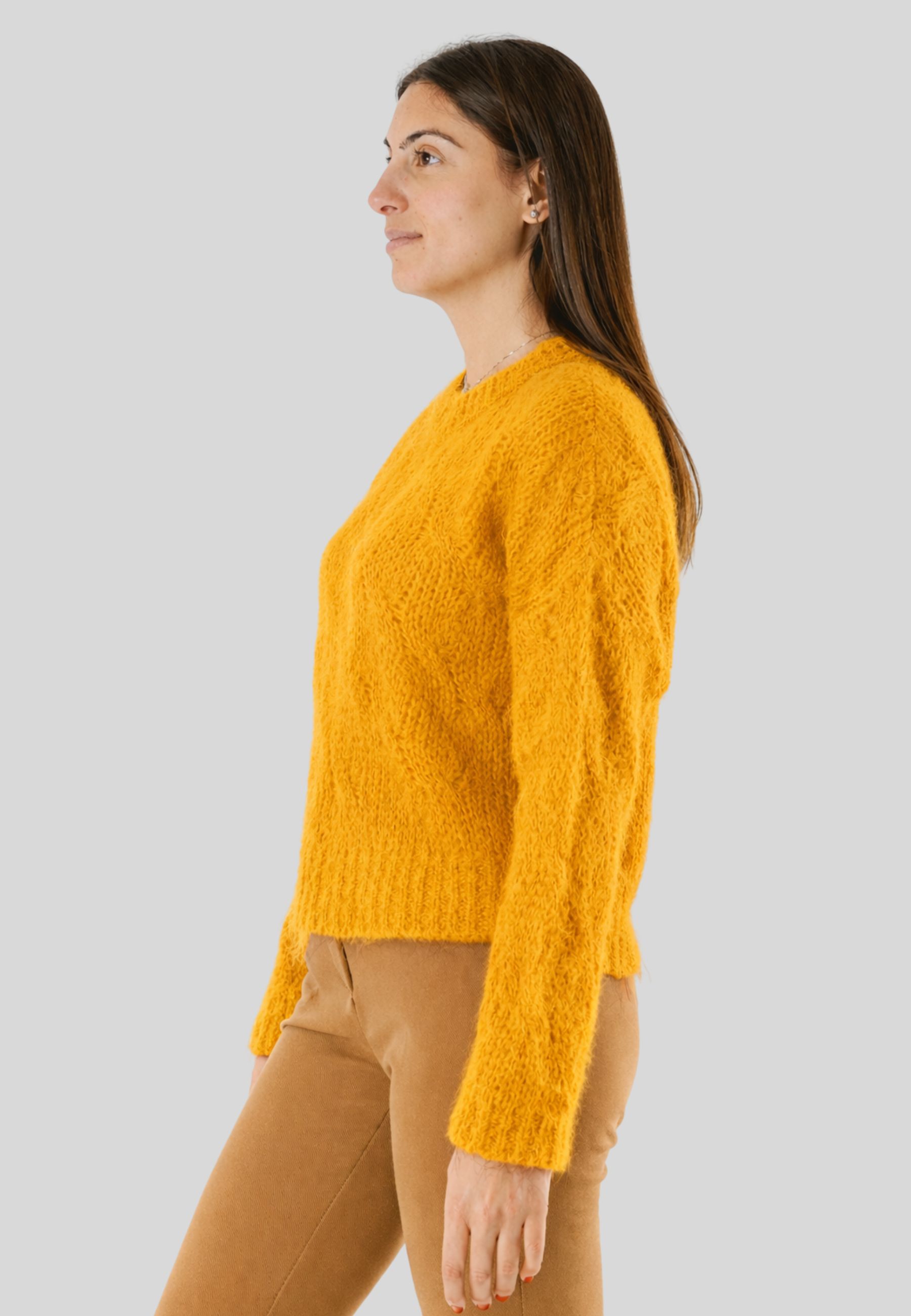Kontatto women's sweater with a refined and contemporary taste, ideal for facing the cold season with style and comfort. Made from a fine blend of 36% polyacrylic, 30% merino wool, 30% polyamide, and 4% wool, it ensures warmth, softness, and a pleasant feel on the skin.