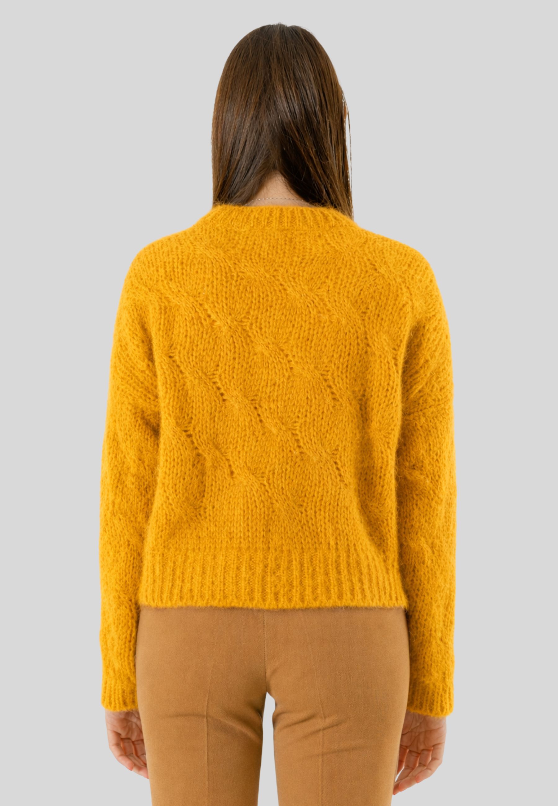 The cozy and slightly structured fabric provides prolonged comfort without compromising elegance, making this garment perfect for both everyday looks and more polished outfits. The sweater pairs easily with tailored trousers, skirts, or denim, suiting casual chic, work, or leisure settings.