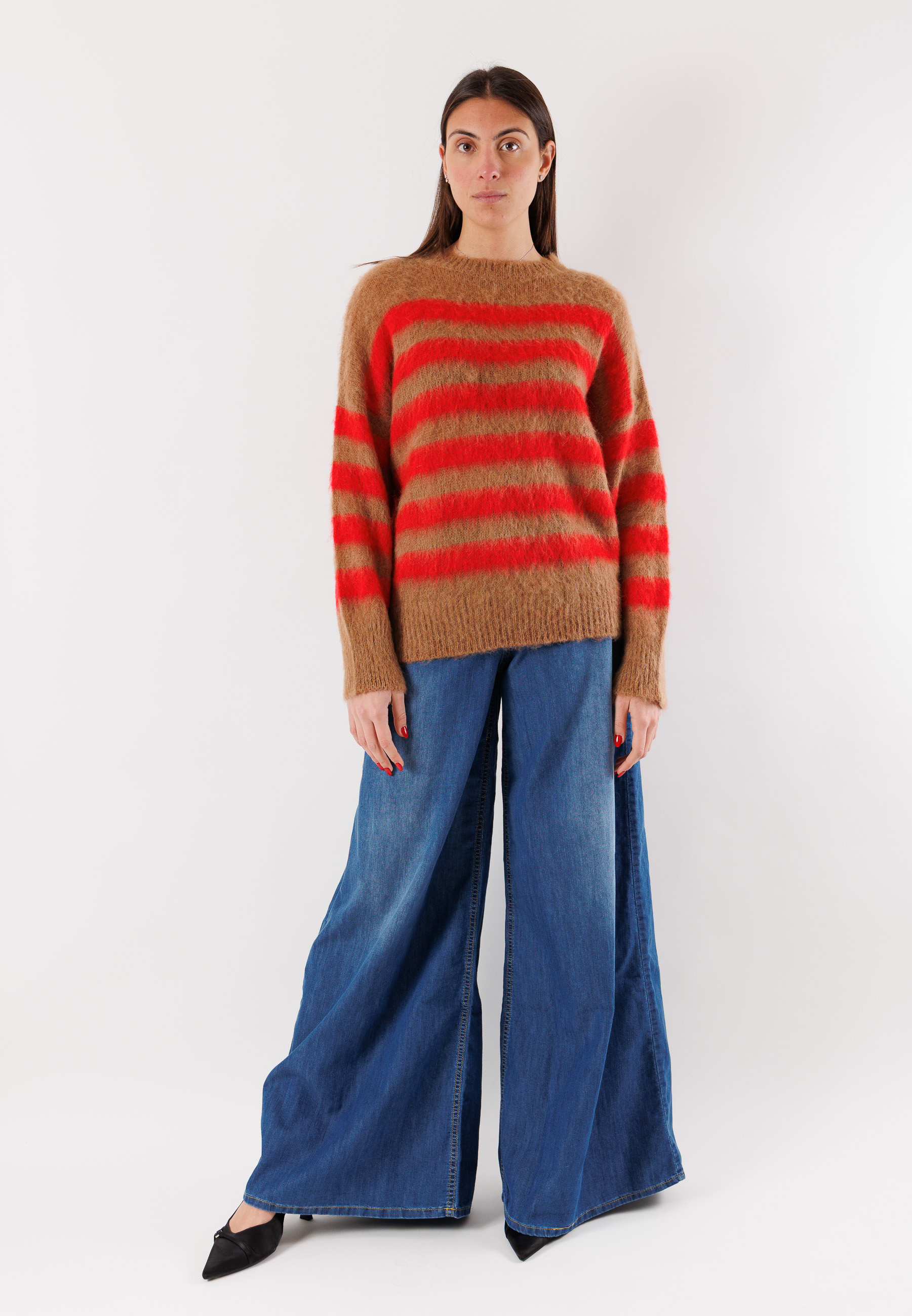 The blended yarn provides a pleasant feeling of softness and warmth, combining comfort, lightness, and durability. The regular cut and carefully finished details ensure a versatile fit, easy to wear with jeans, wide-leg trousers, or skirts. A trendy piece, perfect for the cold season, designed for those who love a contemporary style without compromising on quality.