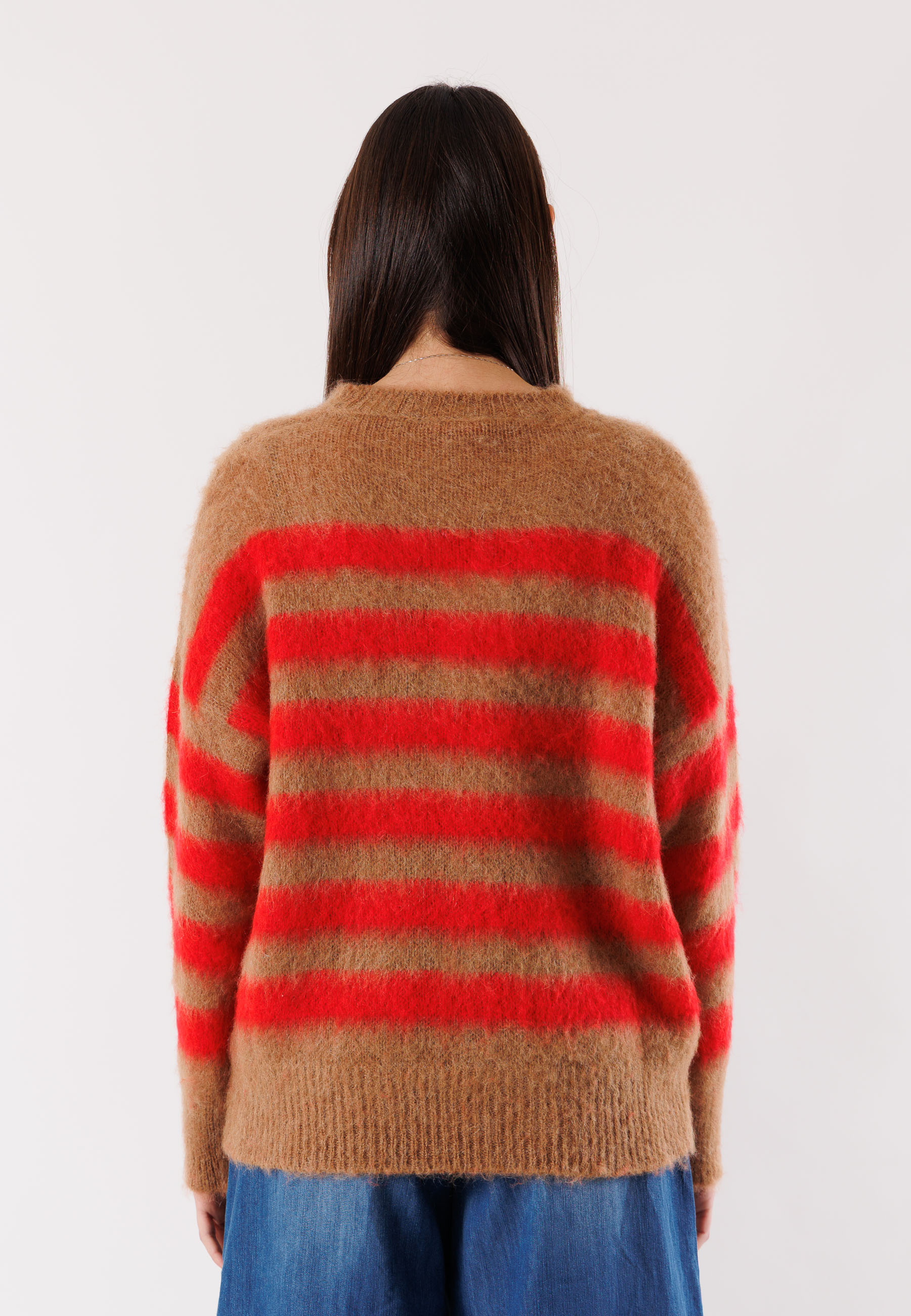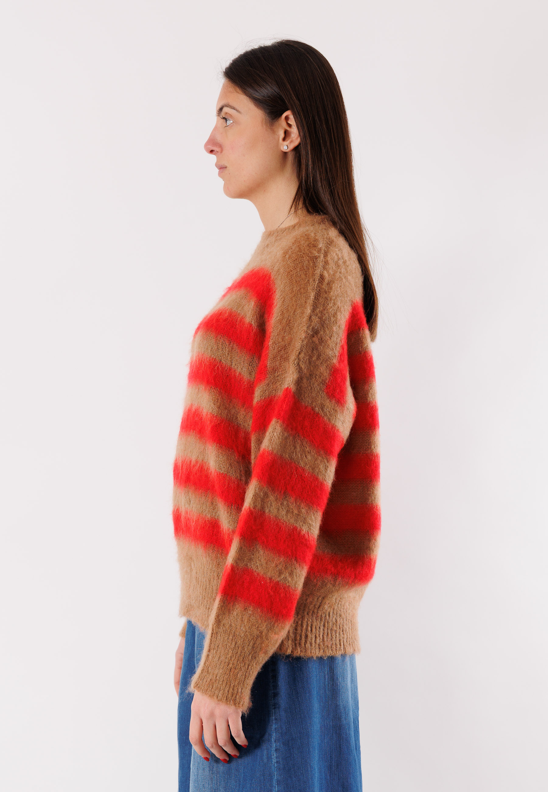 Women's Kontatto sweater featuring a horizontal stripe pattern in contrasting tones, perfect for adding character and personality to everyday looks. The modern design and comfortable fit make it ideal for both casual outfits and more sophisticated combinations.