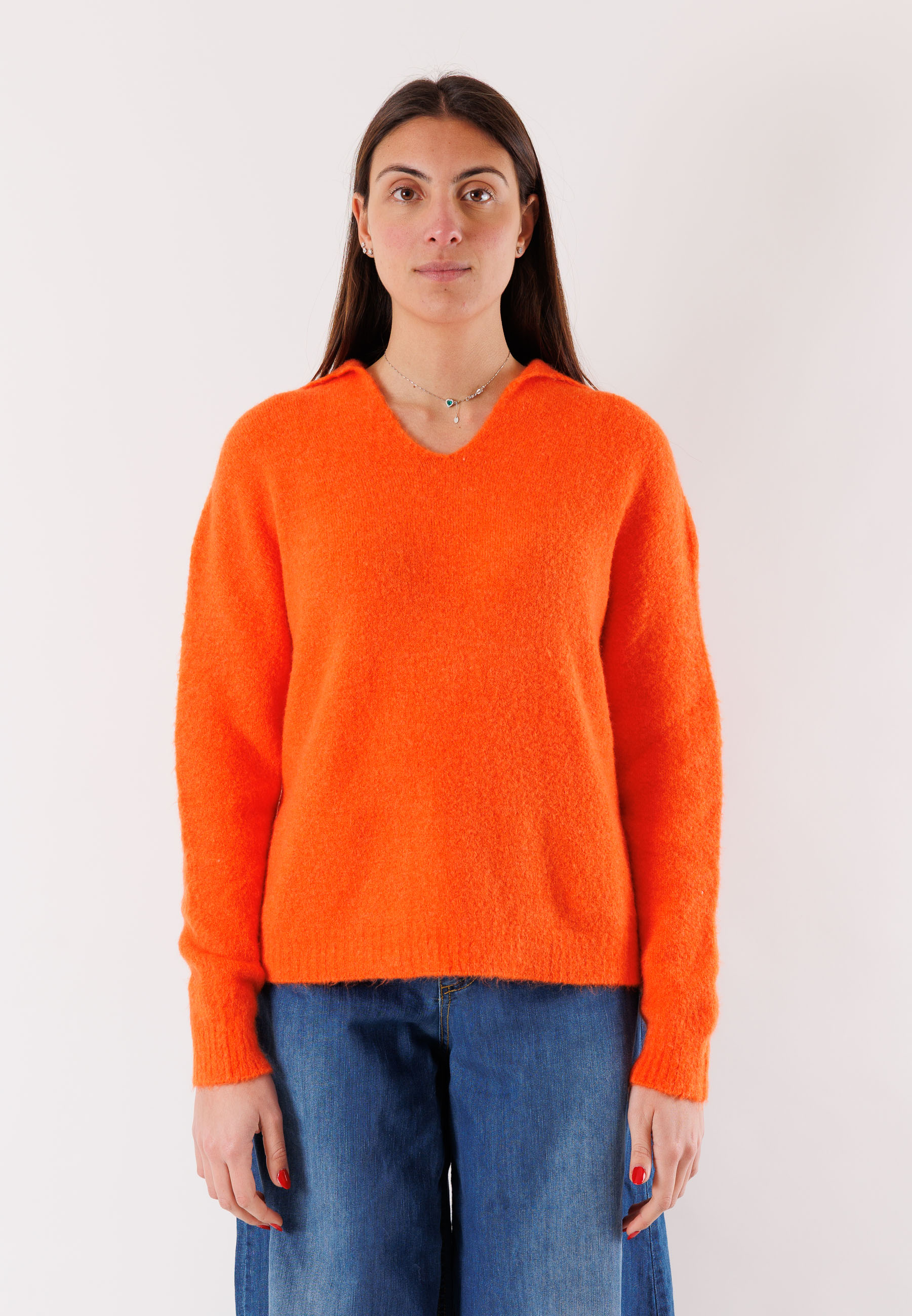 Women's Kontatto sweater with an essential and refined look, ideal for elegantly completing everyday outfits. Made from a warm and comfortable yarn composed of 60% polyamide, 15% polyester, 11% polyamide, 7% viscose, and 7% wool, it offers a soft feel on the skin and a snug fit.