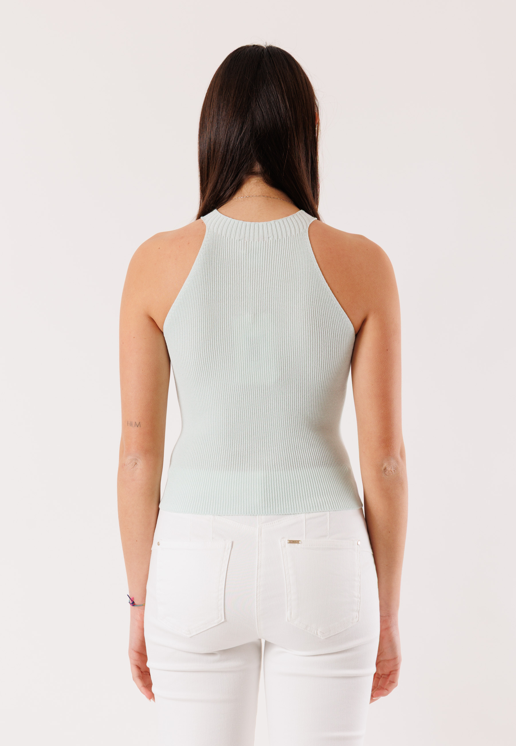 This Kontatto top is an essential and versatile piece, perfect for creating modern and minimal outfits. The design features a fitted silhouette that naturally enhances your shape and a soft, shaped neckline, designed to add balance and sophistication to the overall look. The sleeveless cut makes it ideal for warm weather or as a base layer to wear under jackets, cardigans, and blazers. Made from a lightweight and comfortable fabric, the top offers a pleasant fit that moves with you without restrictions. The simplicity of the design allows for endless combinations: perfect with denim, tailored pants, skirts, or more casual-chic looks. An indispensable piece for those who love a clean, contemporary, and functional style.