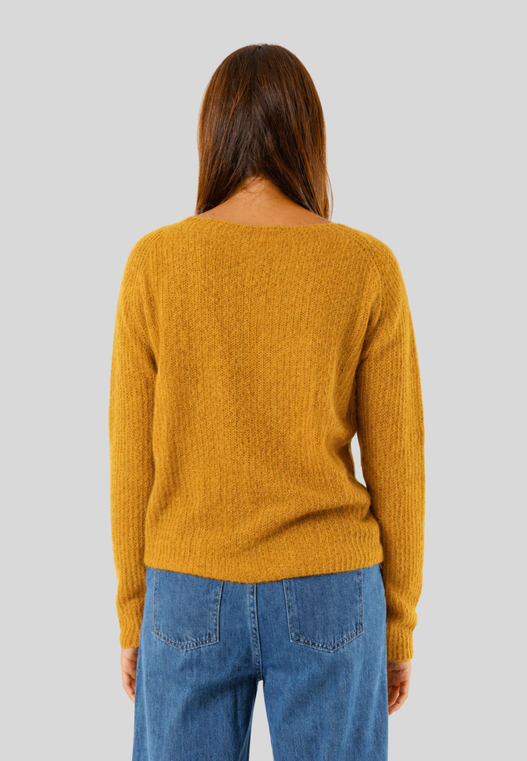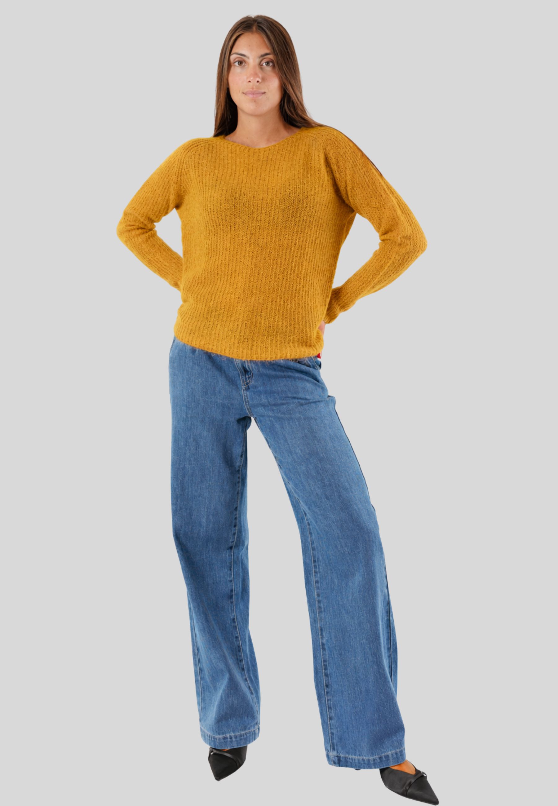 Enveloping, soft, and light: this sweater by Kontatto is a must-have piece for the cold season. Made from a premium blend of yarns (36% PC, 30% WM mohair, 30% PA, 4% WO), it combines the softness of mohair with the durability of nylon, offering comfort and style in one solution. The clean design with a round neckline and vertical ribbed texture lends itself to a thousand combinations, from casual looks to more refined ones. One size, with a soft fit that adapts to various body types. Perfect to wear with slim trousers or flowing skirts for a natural and feminine style. Made in Italy, synonymous with quality and artisanal care.