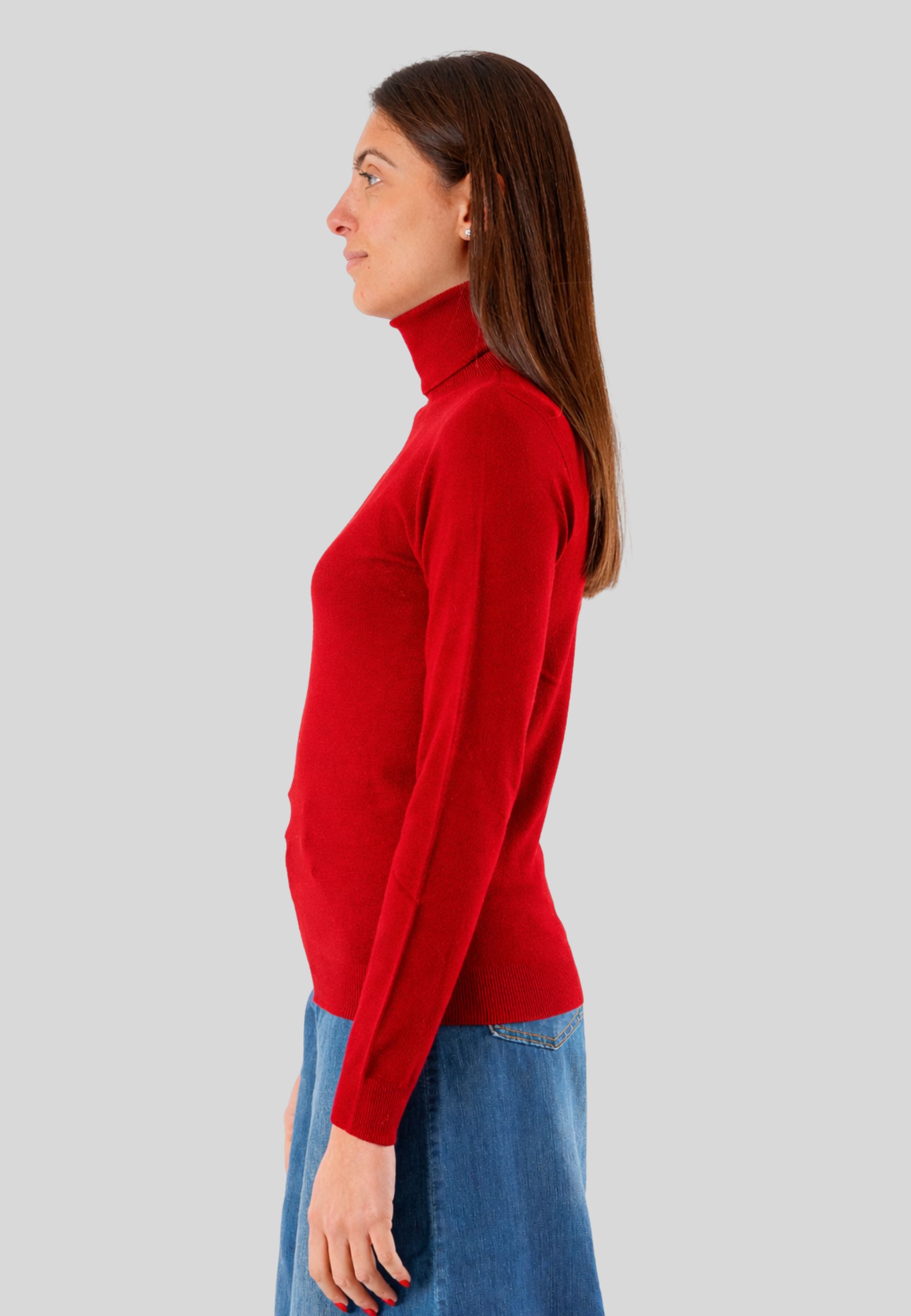 The Kontatto women's high-neck sweater is an essential piece with a clean, feminine design, created to elegantly enhance the silhouette. Made from 63% viscose and 37% polyamide, it offers a soft, stretchy, and comfortable texture, perfect for everyday wear.
