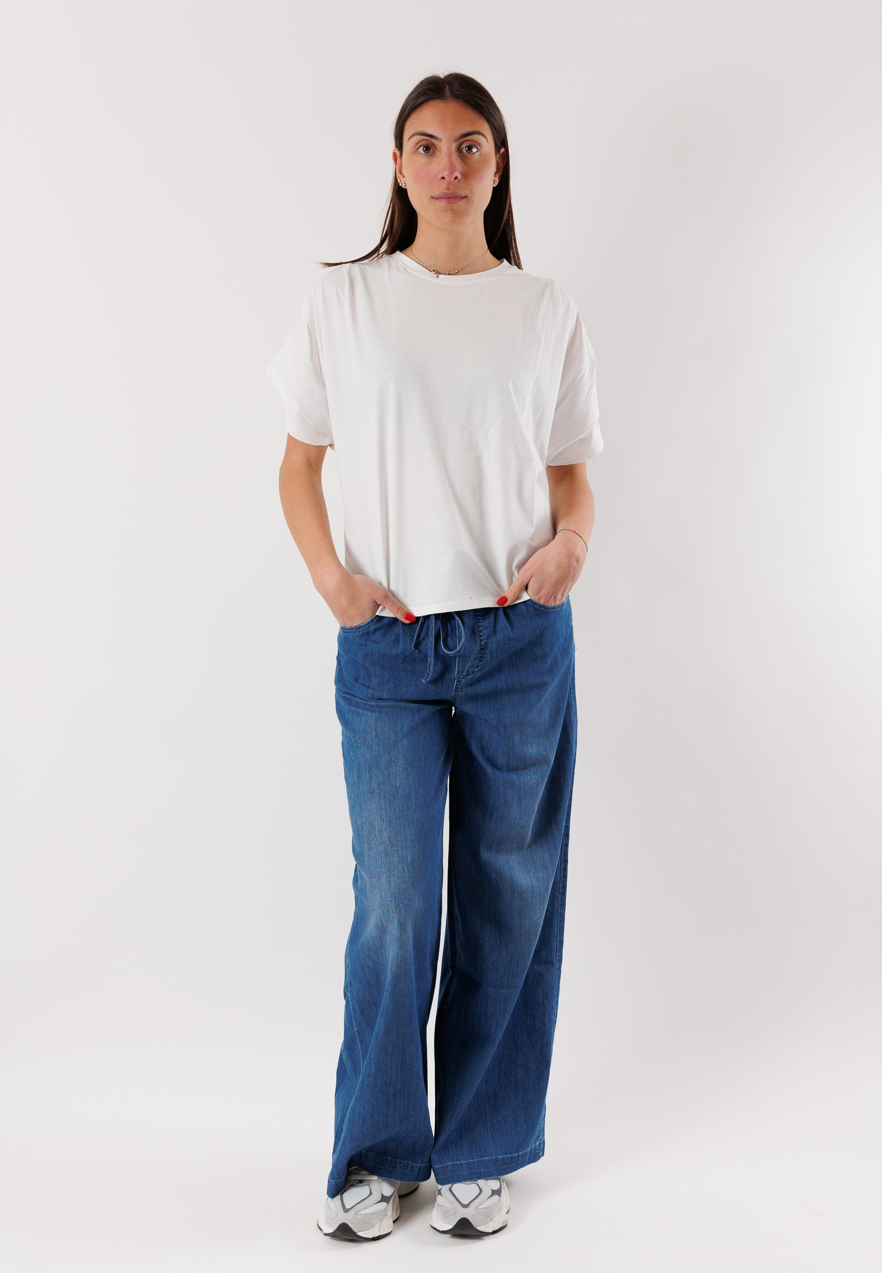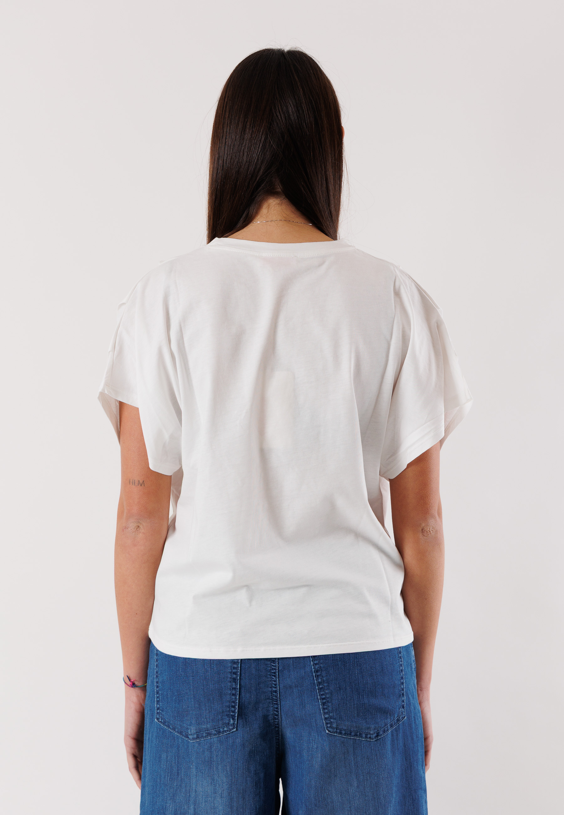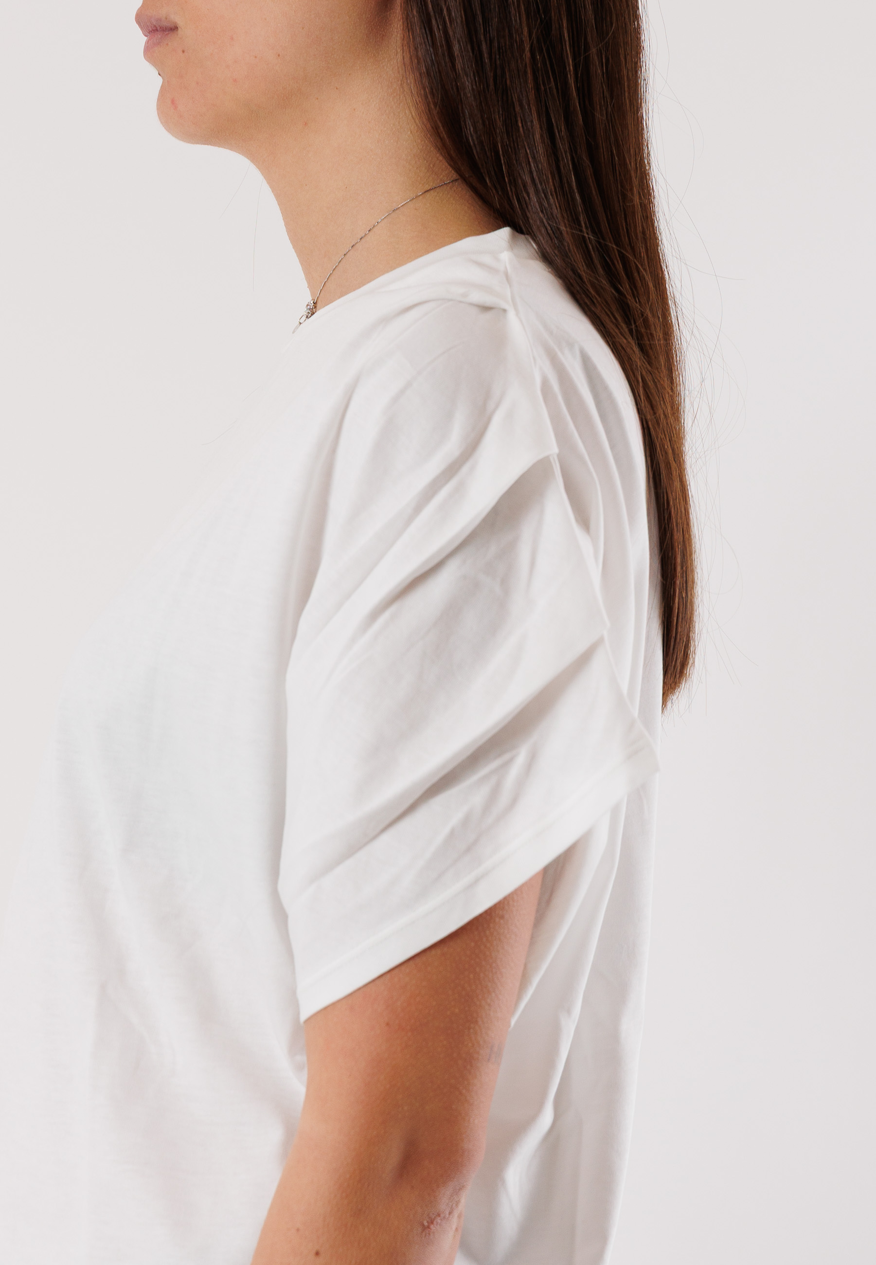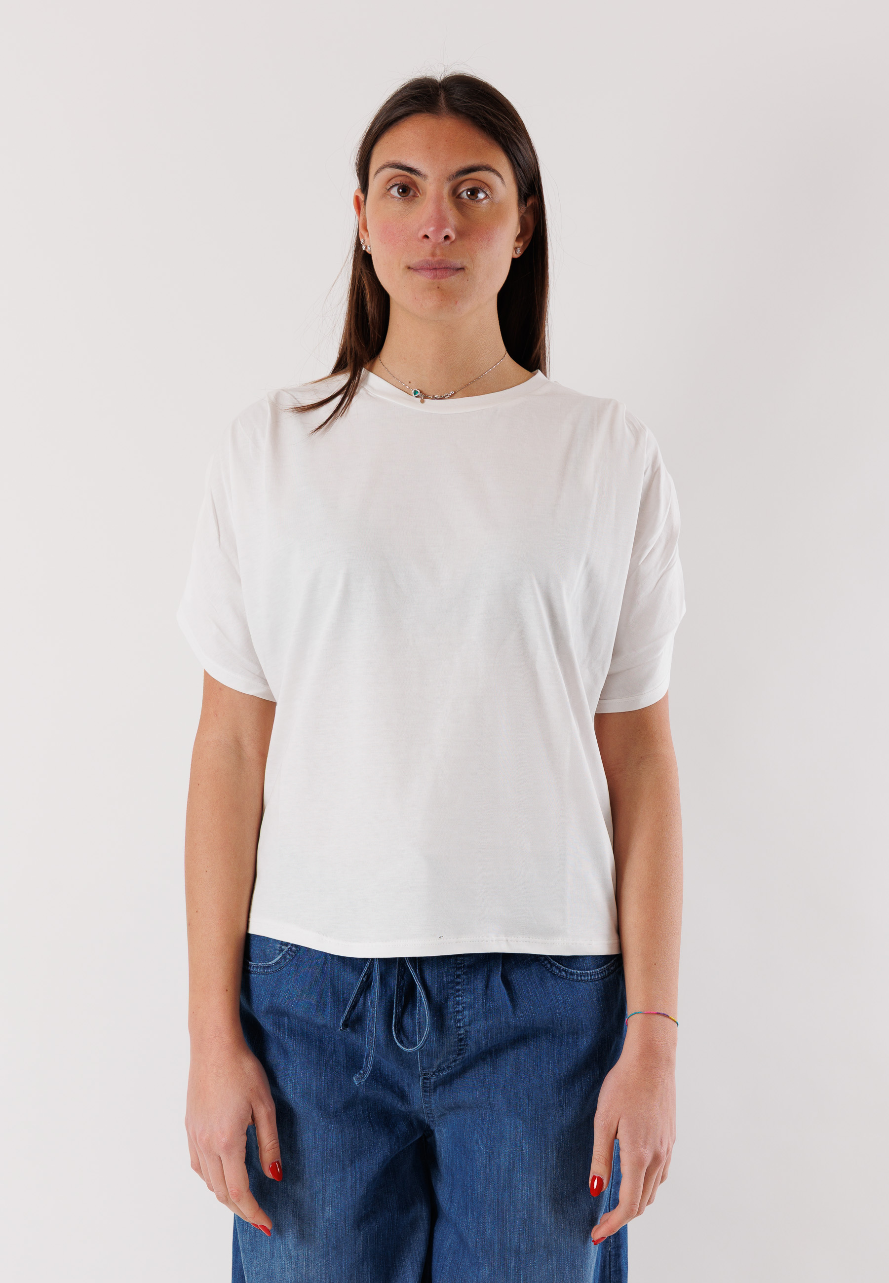 Kontatto women's T-shirt with an essential and contemporary design, created to become a must-have piece in your everyday wardrobe. The clean cut and comfortable fit make it ideal for casual, urban, and leisure looks.