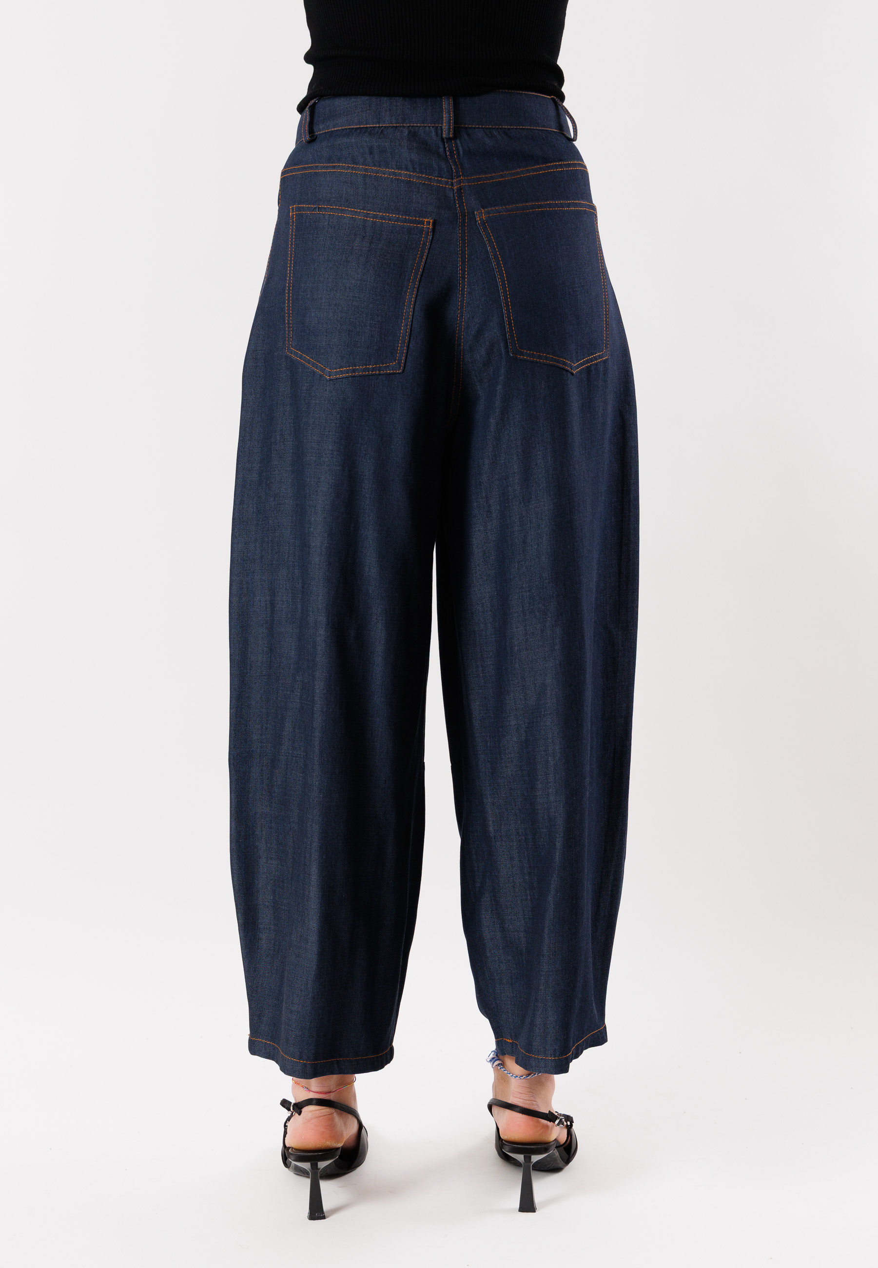Made from 100% Tencel (TE), these jeans stand out for their softness, lightness, and breathability, offering superior comfort and a silky touch. The fluid fabric gives the garment a sophisticated appearance, perfect for both casual chic outfits and more refined combinations.