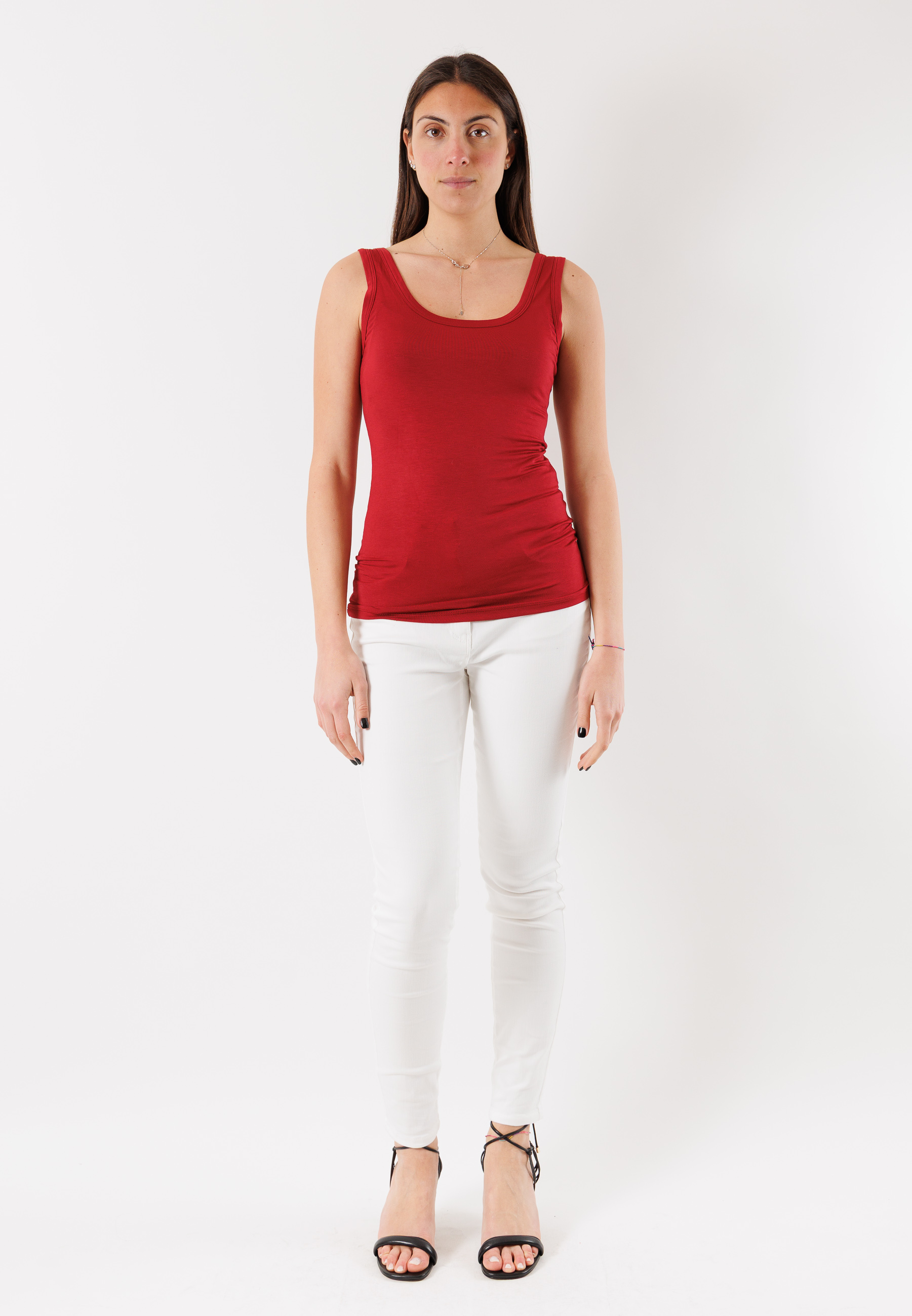 This Kontatto top is an essential and versatile piece, perfect for creating casual, sporty, or more elegant outfits with a clean and modern aesthetic. The design features a fitted silhouette that naturally highlights the figure, while the rounded neckline adds balance and versatility to the look. The sleeveless cut makes it ideal for warm seasons or as a base layer under jackets, blazers, or light shirts.