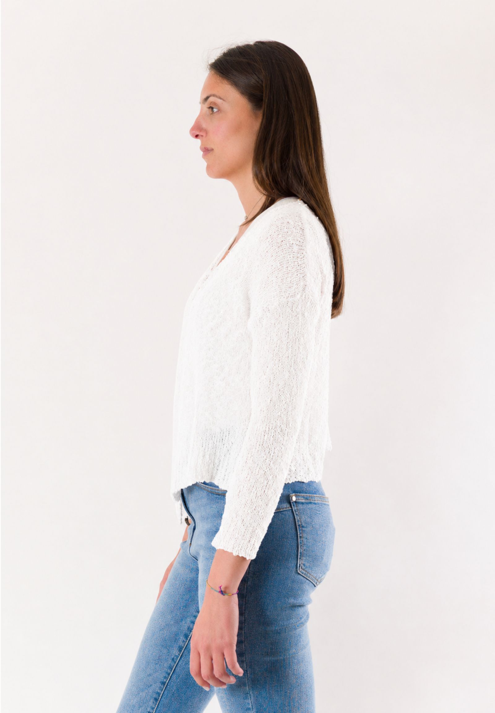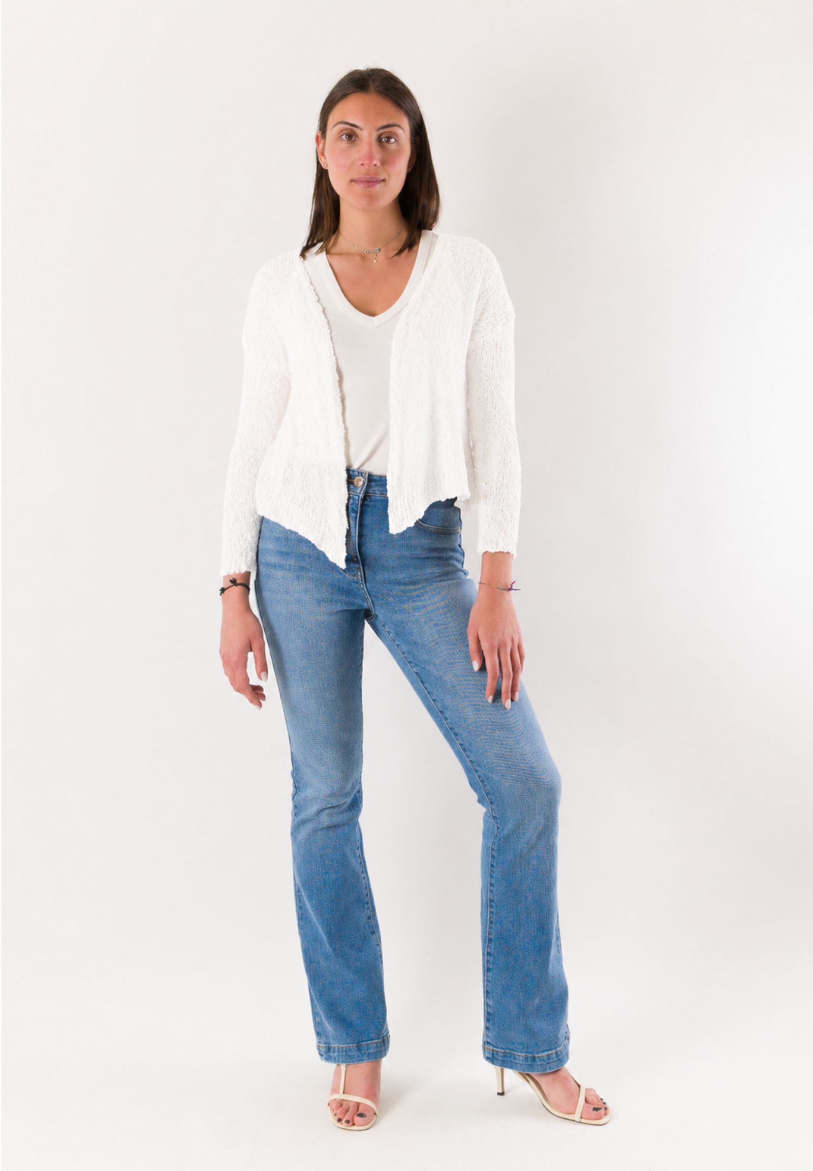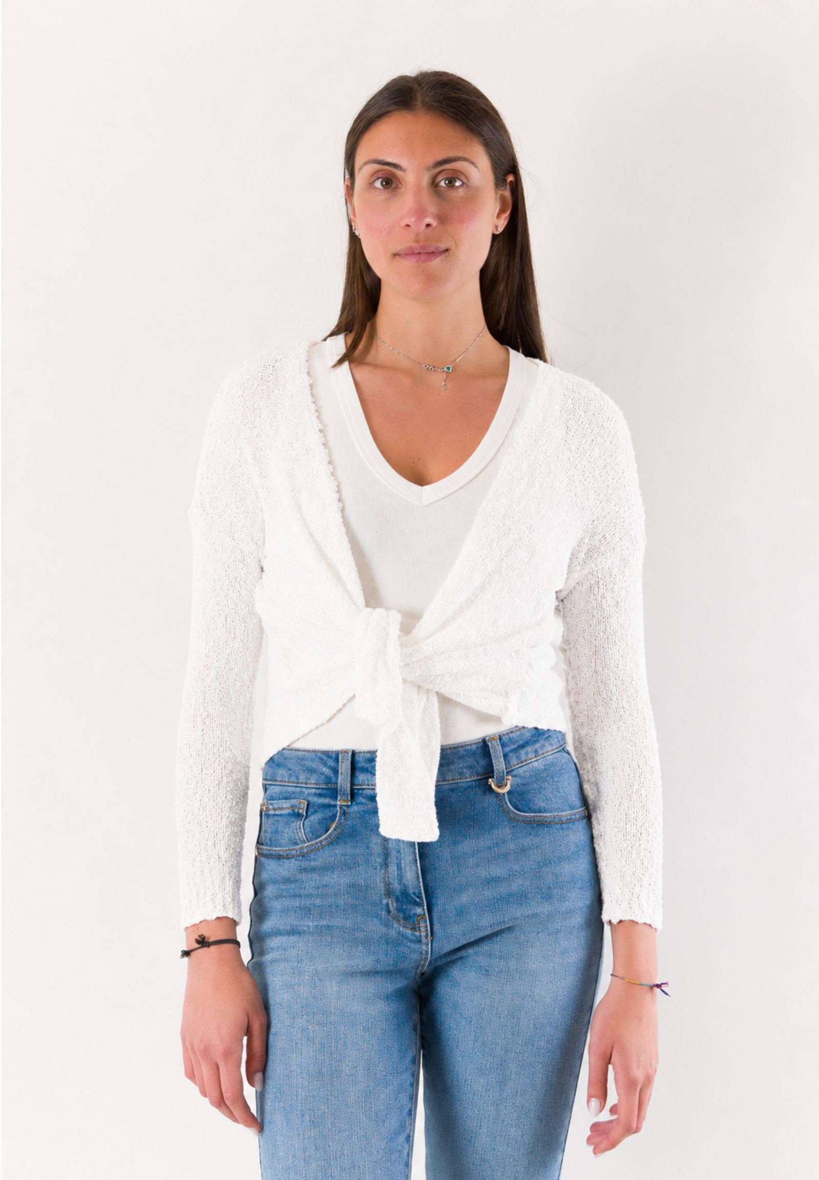 Essential and elegant, this open Mesange bolero is a versatile piece ideal for completing refined and contemporary looks. Made in Italy and crafted from 100% cotton, it offers a natural, breathable texture that is pleasant on the skin, perfect for mid-season and summer evenings. The design features a lightweight knit structure, a front opening without closure, and a short cut that enhances the silhouette without weighing down the outfit. The long sleeves and clean cut make it easy to pair with dresses, tops, or blouses. A practical and refined bolero, symbol of Mesange's tailored quality Made in Italy.