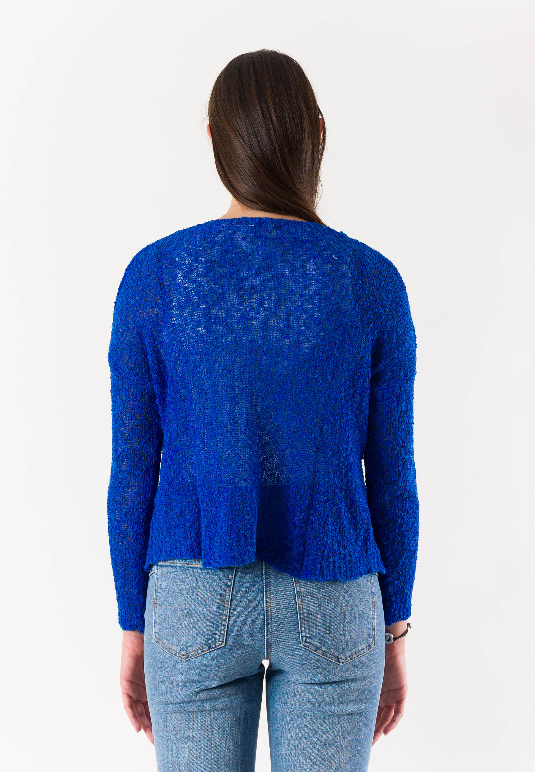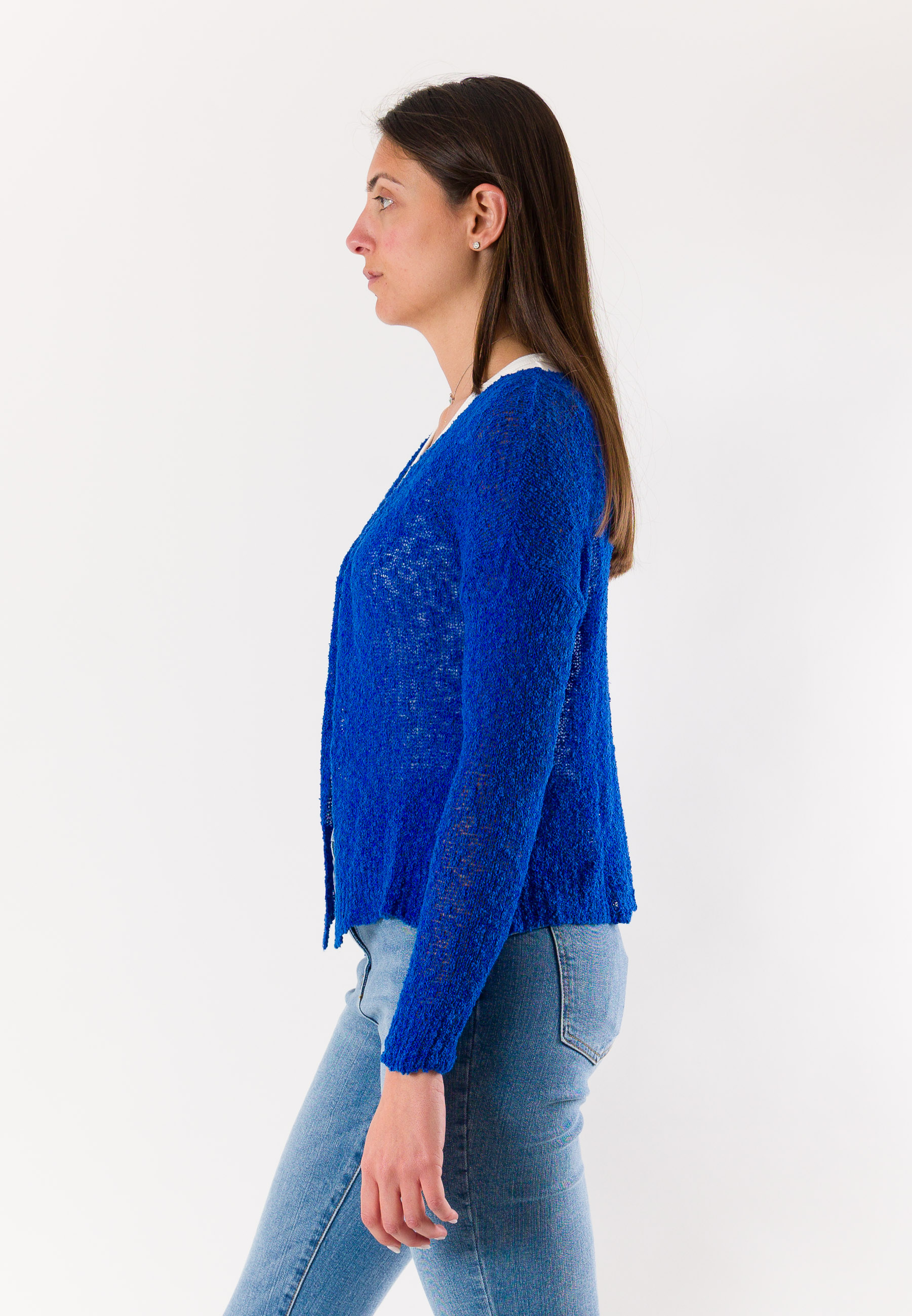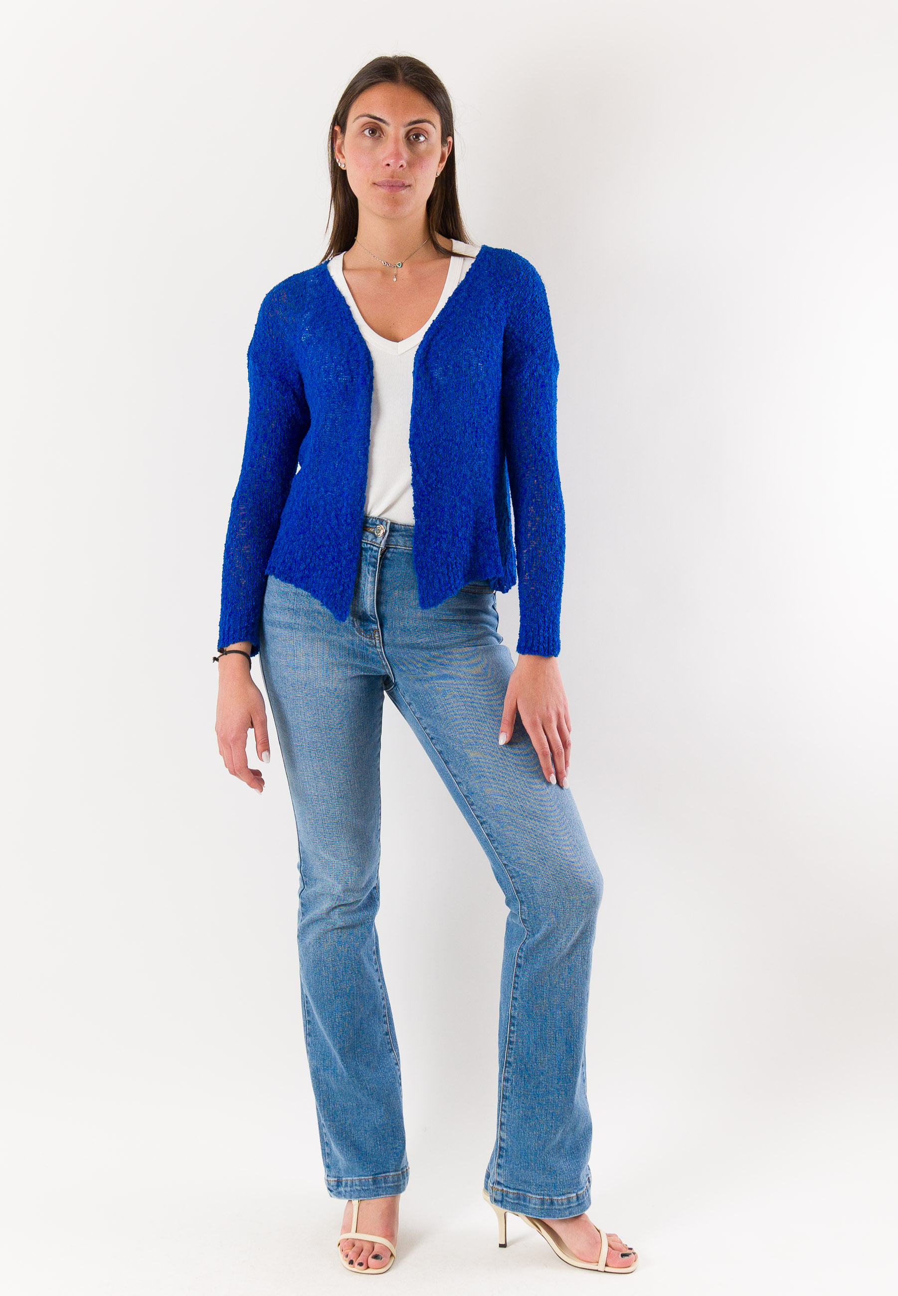 Essential and elegant, this open Mesange bolero is a versatile piece ideal for completing refined and contemporary looks. Made in Italy and crafted from 100% cotton, it offers a natural, breathable texture that is pleasant on the skin, perfect for mid-season and summer evenings. The design features a lightweight knit structure, a front opening without closure, and a short cut that enhances the silhouette without weighing down the outfit. The long sleeves and clean cut make it easy to pair with dresses, tops, or blouses. A practical and refined bolero, symbol of Mesange's tailored quality Made in Italy.