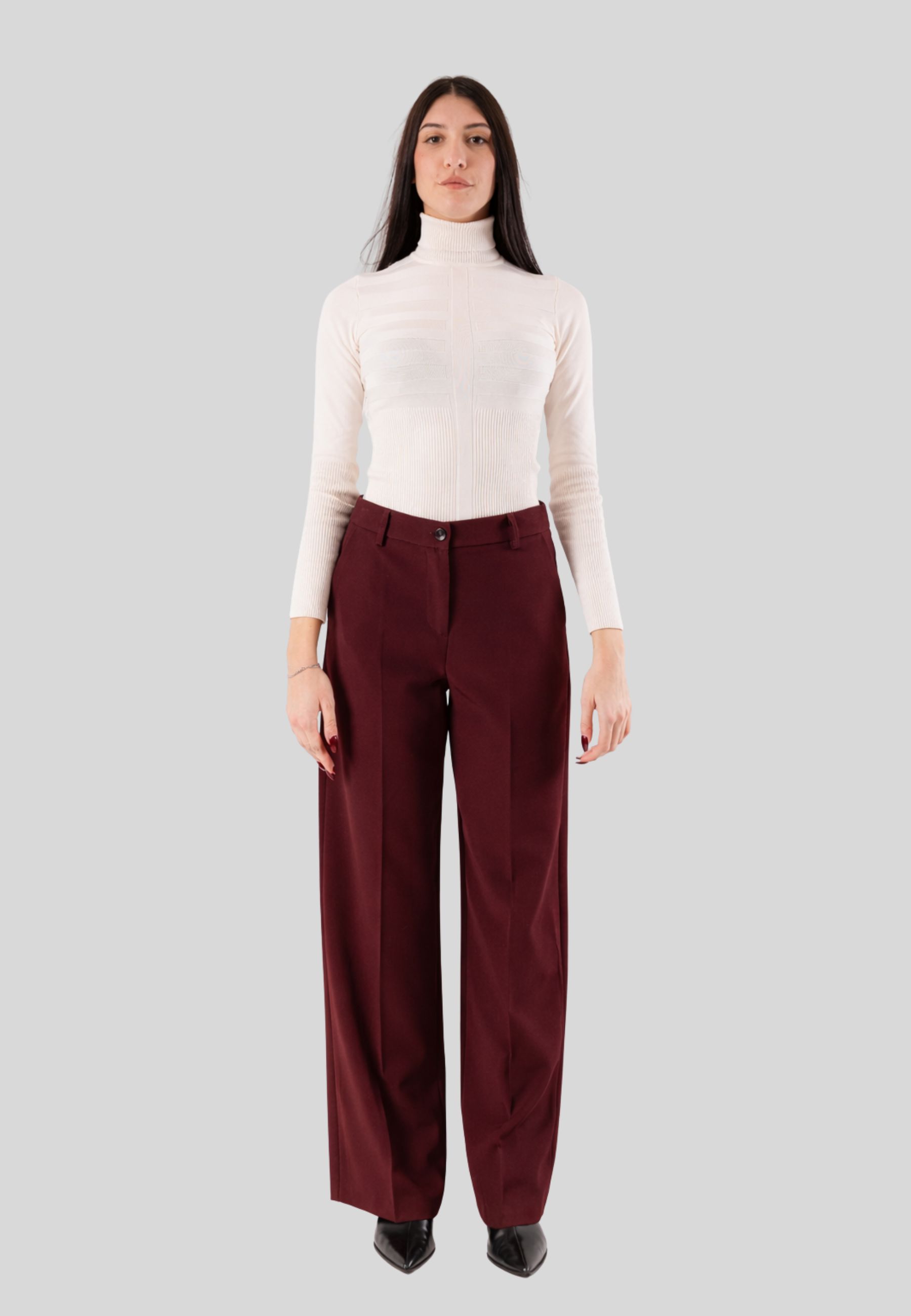 The Mesange Italia palazzo pants represent the perfect balance between style and comfort. Made from stretch technical fabric (88% recycled GRS polyester, 12% elastane), they stand out for their fluid fit and flawless drape. The wide-leg design and regular waist enhance the silhouette and add natural elegance to any outfit. Side pockets and a button-and-zip closure complete the garment with functional and discreet details. Perfect to wear with a shirt during the day or with a coordinated blazer for a sophisticated total look, these pants are a must-have from the Mesange Italia Fall Winter collection, crafted with care and Made in Italy quality. ?? Product details Brand: Mesange Italia Collection: Fall Winter Made in Italy Composition: 88% recycled GRS polyester, 12% elastane Cut: palazzo Waist: regular Details: side pockets, button-and-zip closure Fit: fluid and comfortable Style: elegant, modern