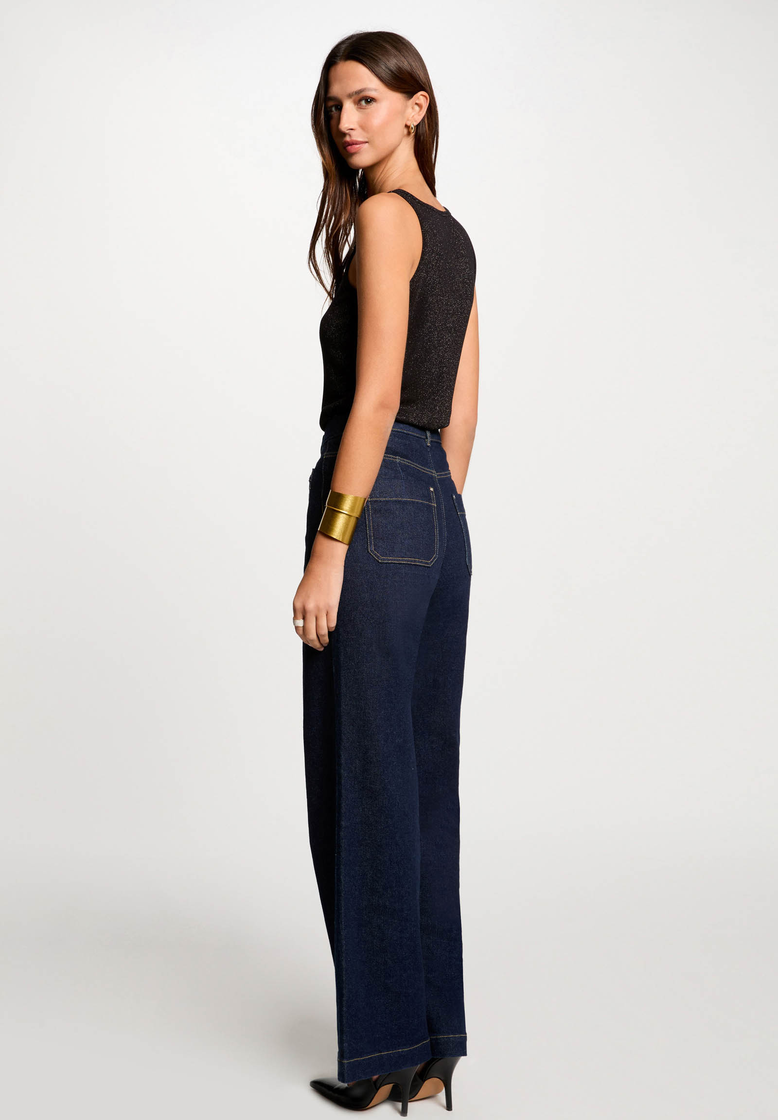 The women's top by Morgan De Toi combines elegance, comfort, and sustainability in a refined and modern piece, perfect for enhancing any outfit. Made from 78% Lenzing Ecovero viscose, 16% polyester, and 6% metallic thread, it ensures a soft feel on the skin, excellent breathability, and a delicate shimmer that gives the look a glamorous touch. The eco-sustainable fabric guarantees quality and environmental respect. The design with thin straps and a clean line enhances the silhouette, while the subtly shiny effect makes this top ideal for both day and evening wear. The comfortable fit follows the body's curves without constraining, offering maximum freedom of movement. Easy to pair with jeans, elegant trousers, skirts, or blazers, it is perfect for creating casual chic, office, or aperitif looks. It can be worn alone in warm seasons or under jackets and cardigans in cooler periods.