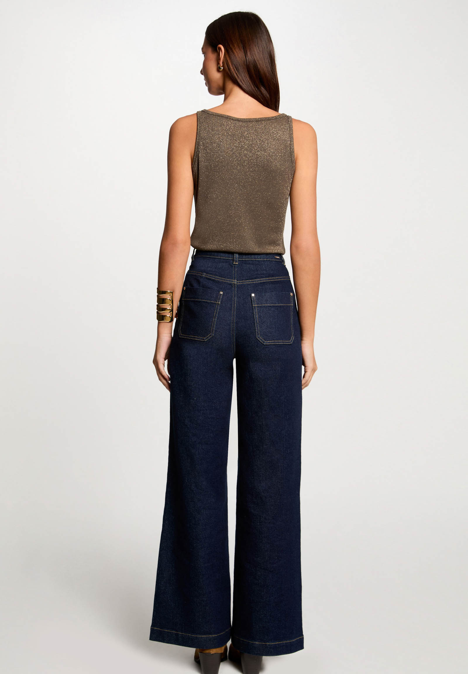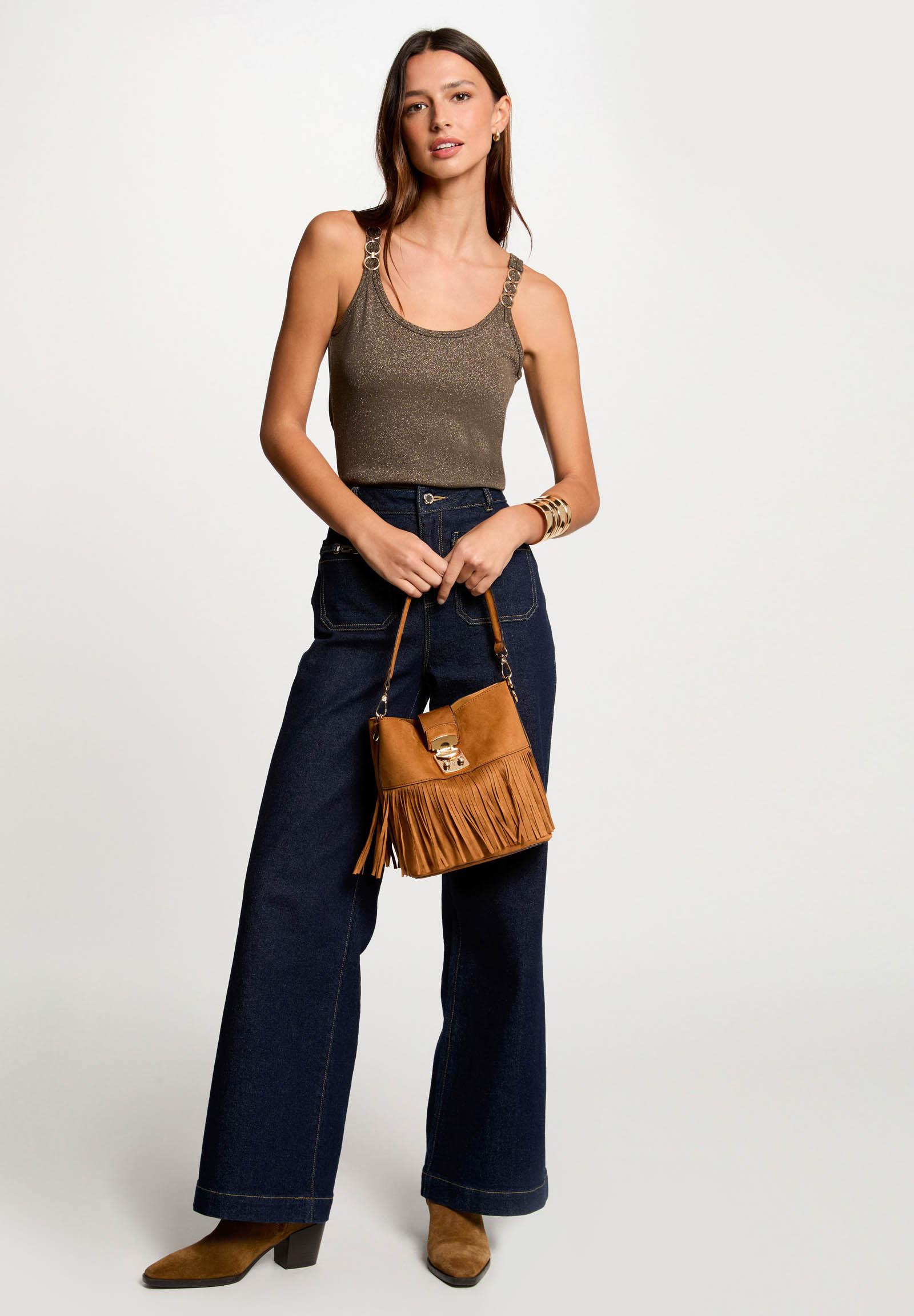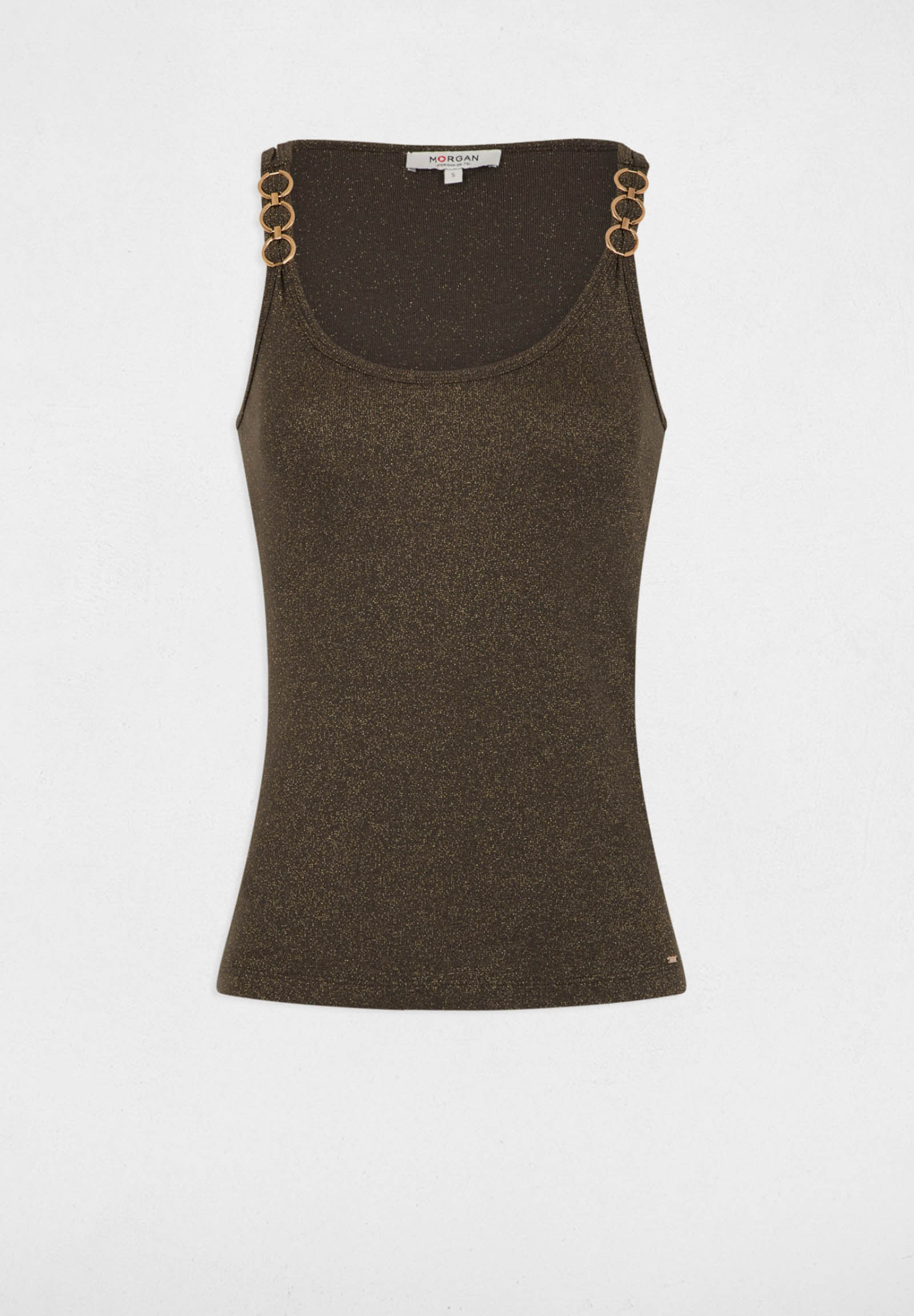 The women's top by Morgan De Toi combines elegance, comfort, and sustainability in a refined and modern piece, perfect for enhancing any outfit. Made from 78% Lenzing Ecovero viscose, 16% polyester, and 6% metallic thread, it ensures a soft feel on the skin, excellent breathability, and a delicate shimmer that gives the look a glamorous touch. The eco-sustainable fabric guarantees quality and environmental respect. The design with thin straps and a clean line enhances the silhouette, while the subtly shiny effect makes this top ideal for both day and evening wear. The comfortable fit follows the body's curves without constraining, offering maximum freedom of movement. Easy to pair with jeans, elegant trousers, skirts, or blazers, it is perfect for creating casual chic, office, or aperitif looks. It can be worn alone in warm seasons or under jackets and cardigans in cooler periods.