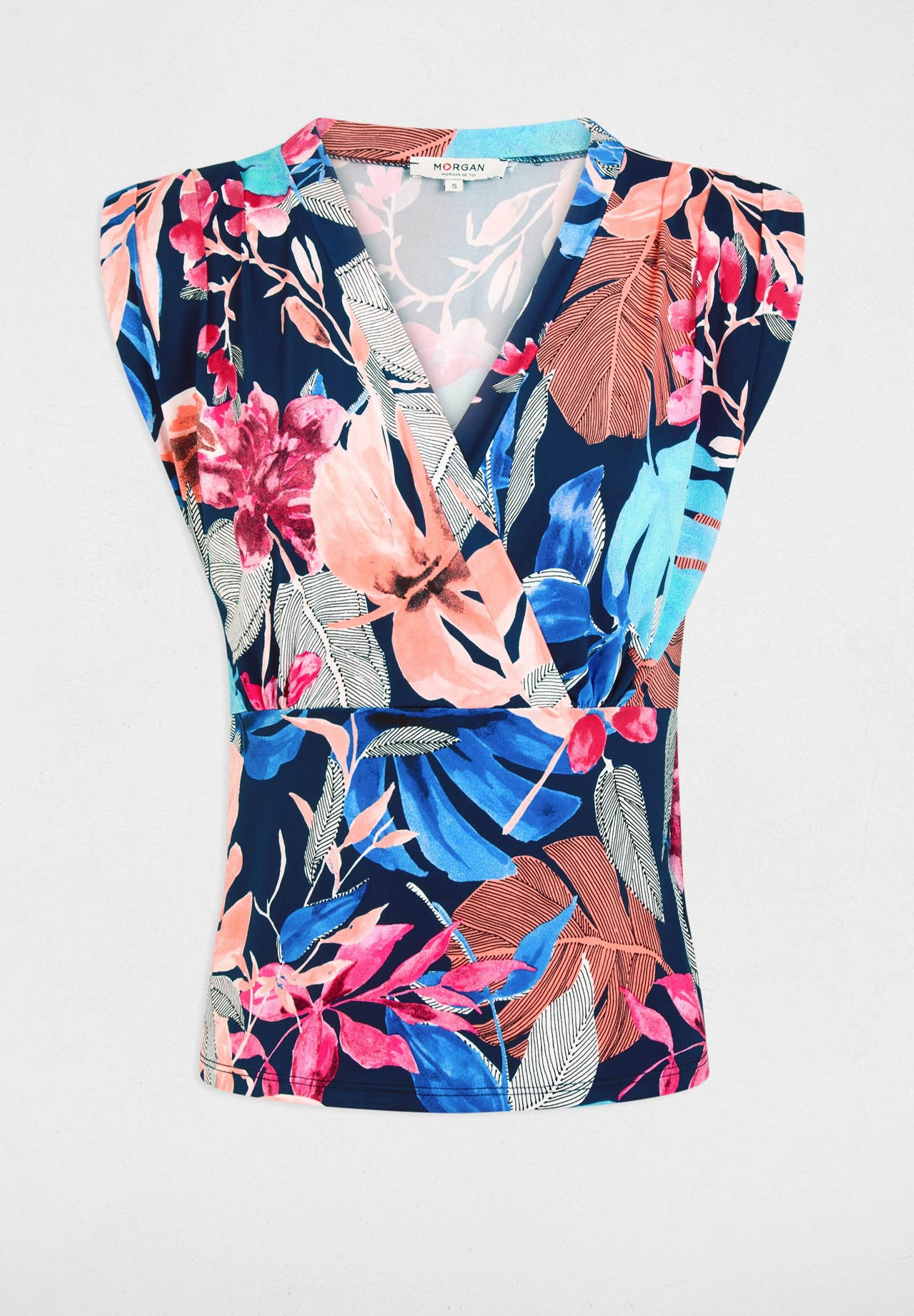 The women's top by Morgan De Toi is a feminine and sophisticated piece, ideal for enhancing any outfit with a touch of color and personality. Made of 94% polyester and 6% elastane, it offers a comfortable, stretchy, and fitted fit that harmoniously follows the body's curves.