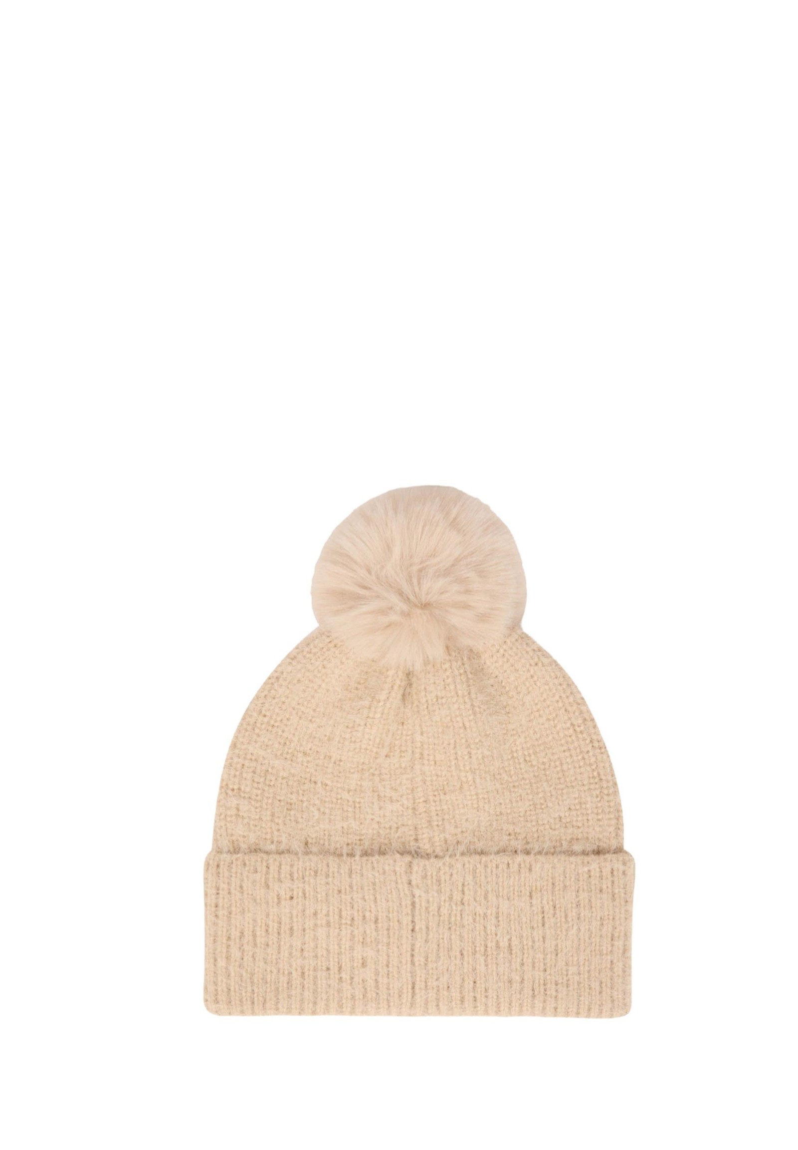 Knitted hat with a pompom, perfect for adding a touch of style to winter outfits. Made of soft acrylic and polyamide blend yarn, it ensures comfort and warmth during the coldest days. The faux fur effect pompom adds a feminine and refined detail, ideal for completing both casual and more elegant outfits. A versatile and fashionable accessory, a must-have for the autumn-winter season.