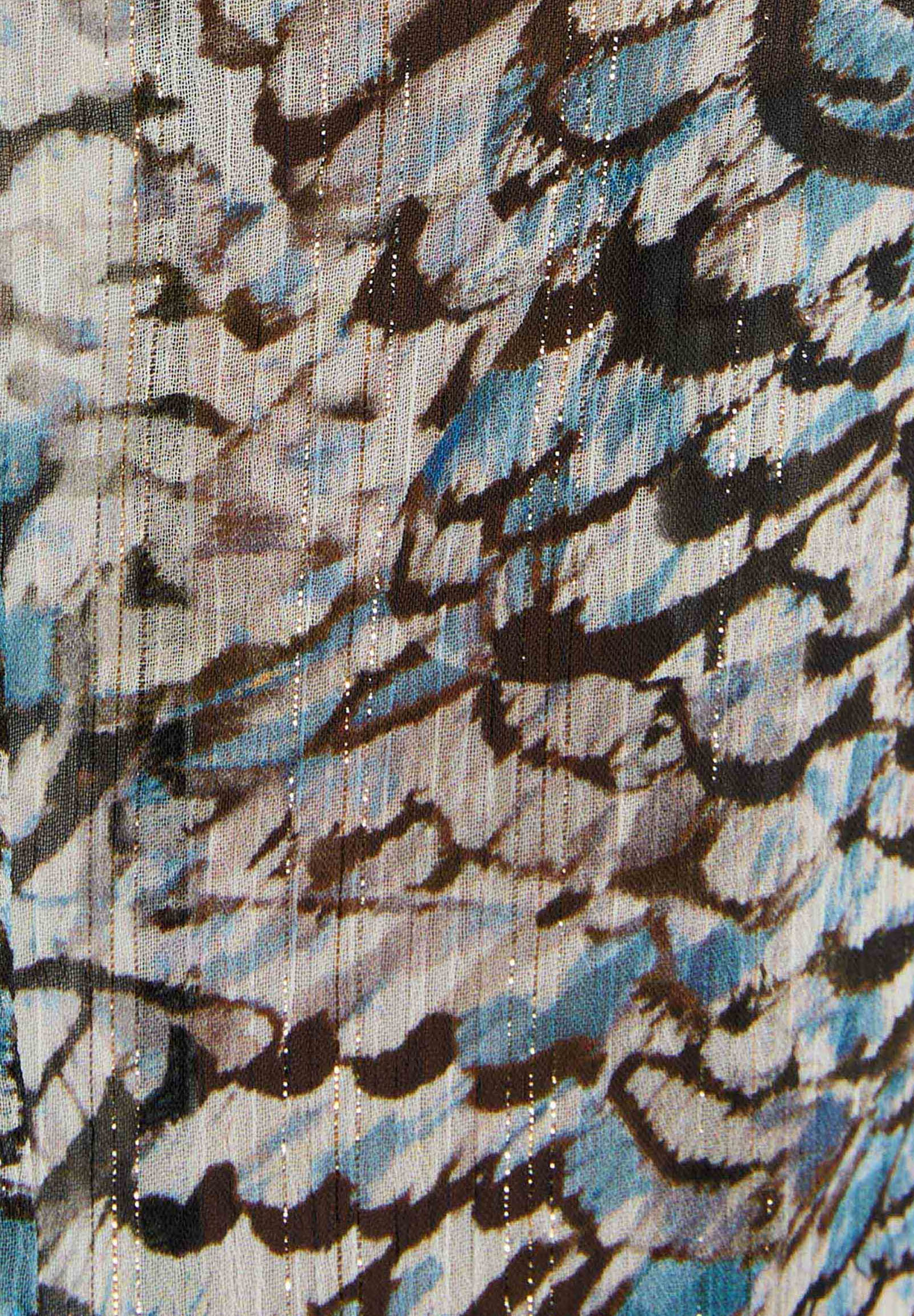 Made from 98% recycled polyester and 2% metallic thread, it combines sustainability, comfort, and style. The lightweight and fluid fabric ensures a pleasant fit, while the metallic thread adds a subtle shine that enhances the garment without being excessive.