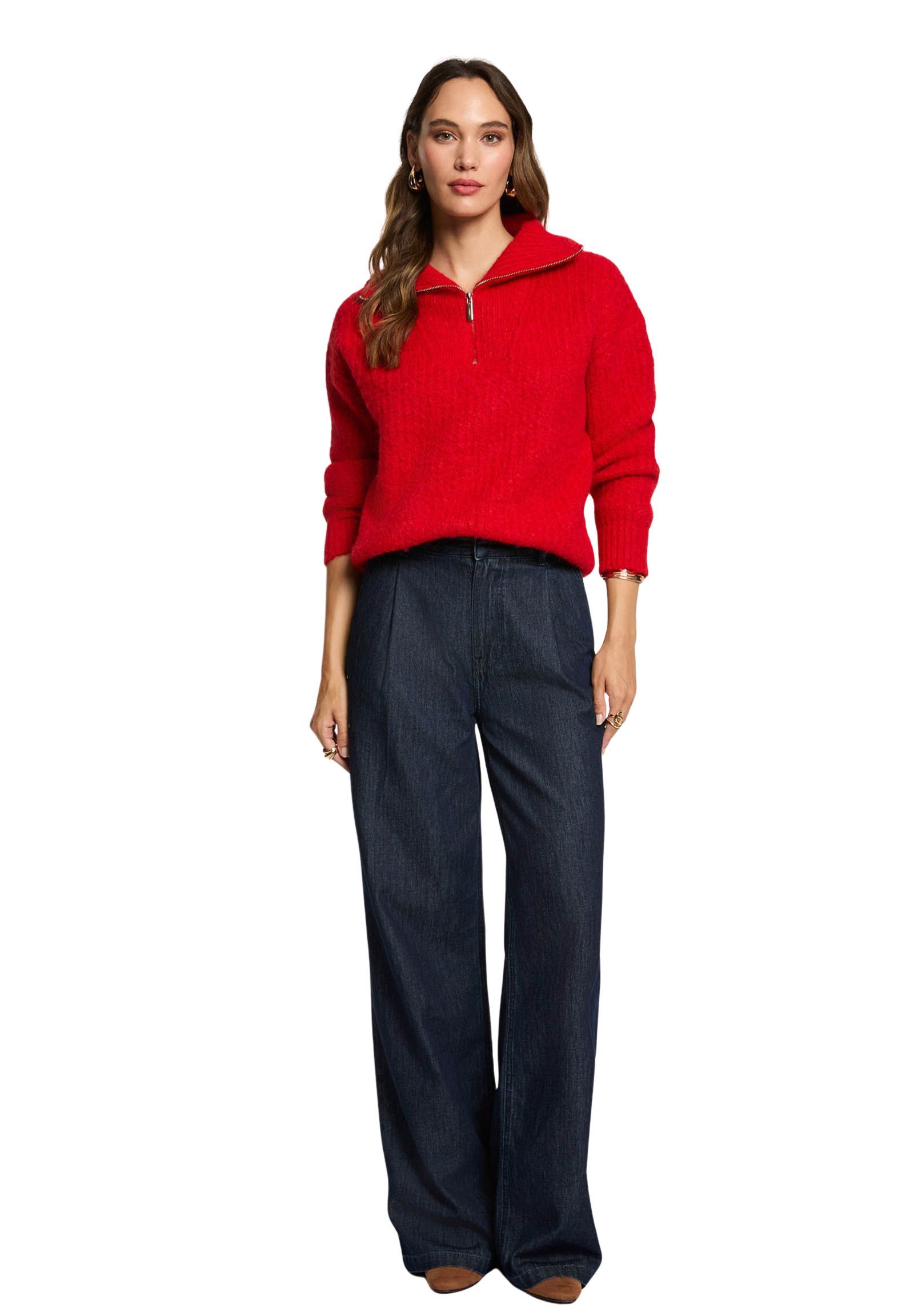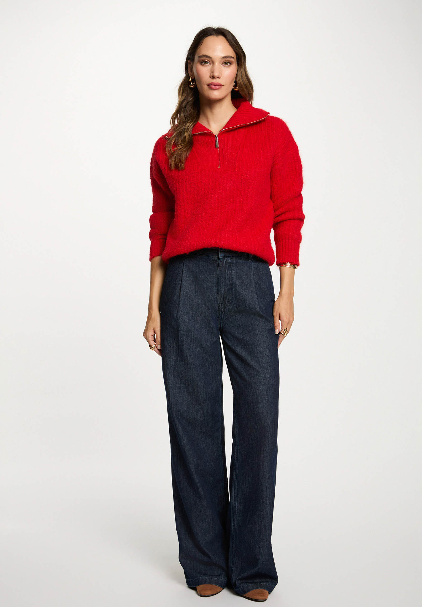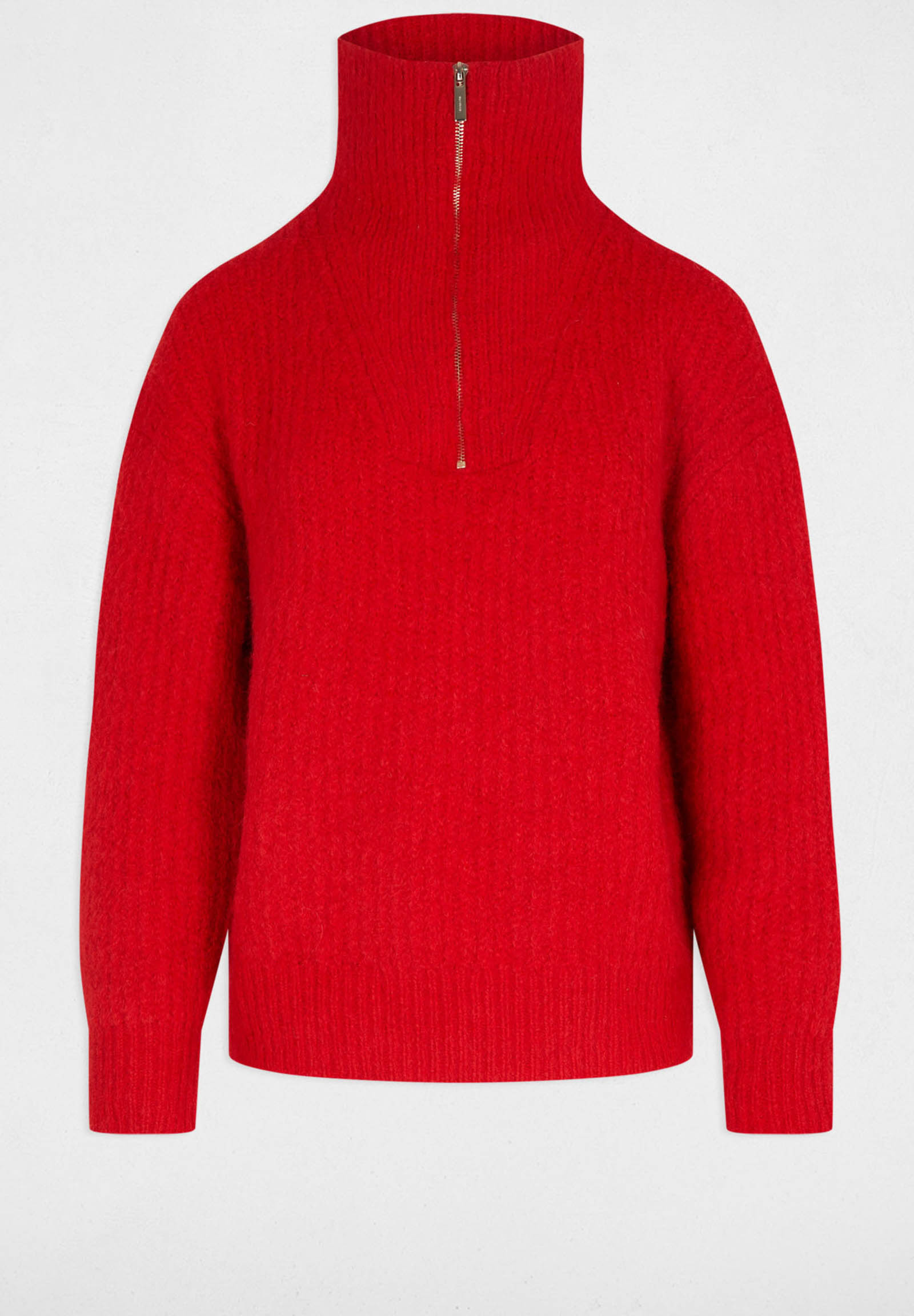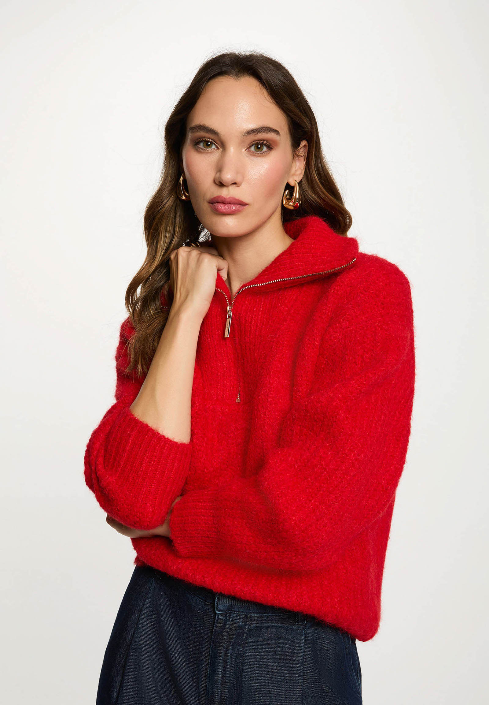 Women's pullover with a half-zip and high collar, perfect for adding a casual and feminine touch to your winter wardrobe.