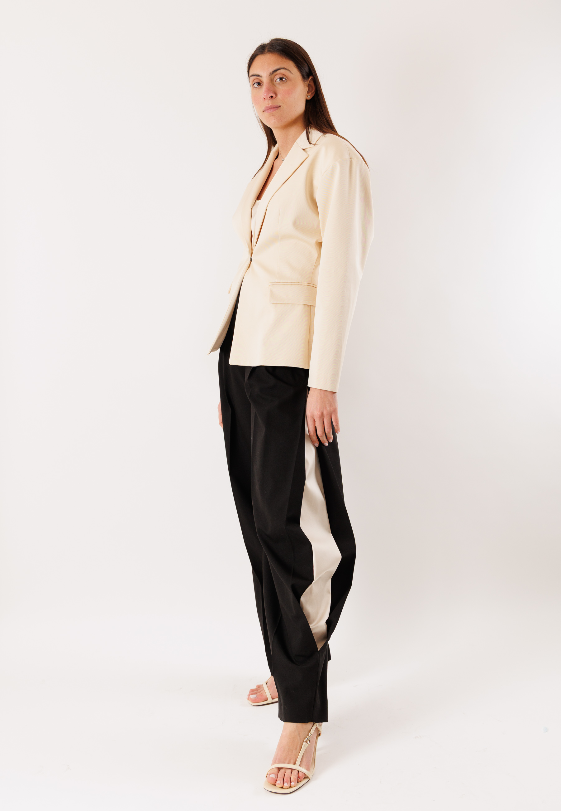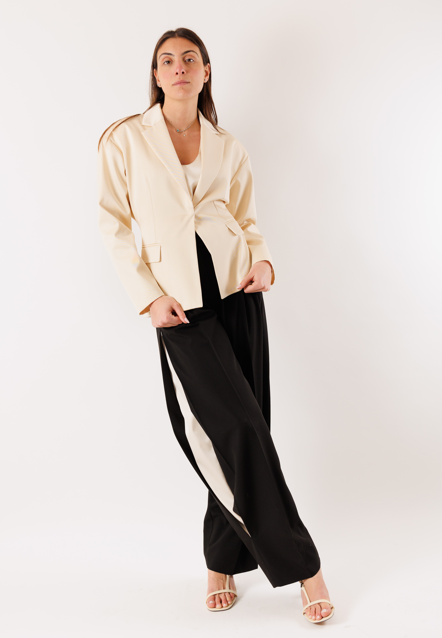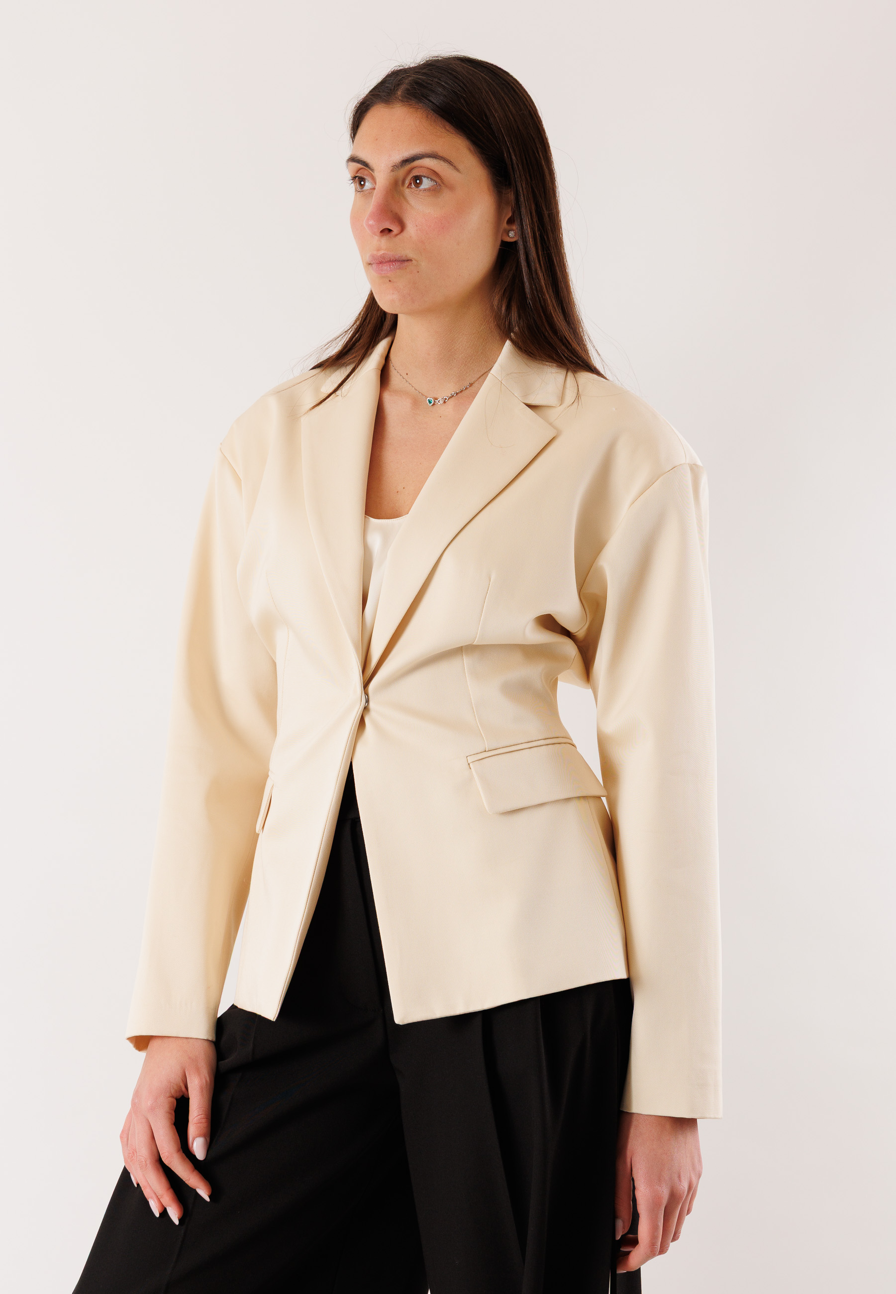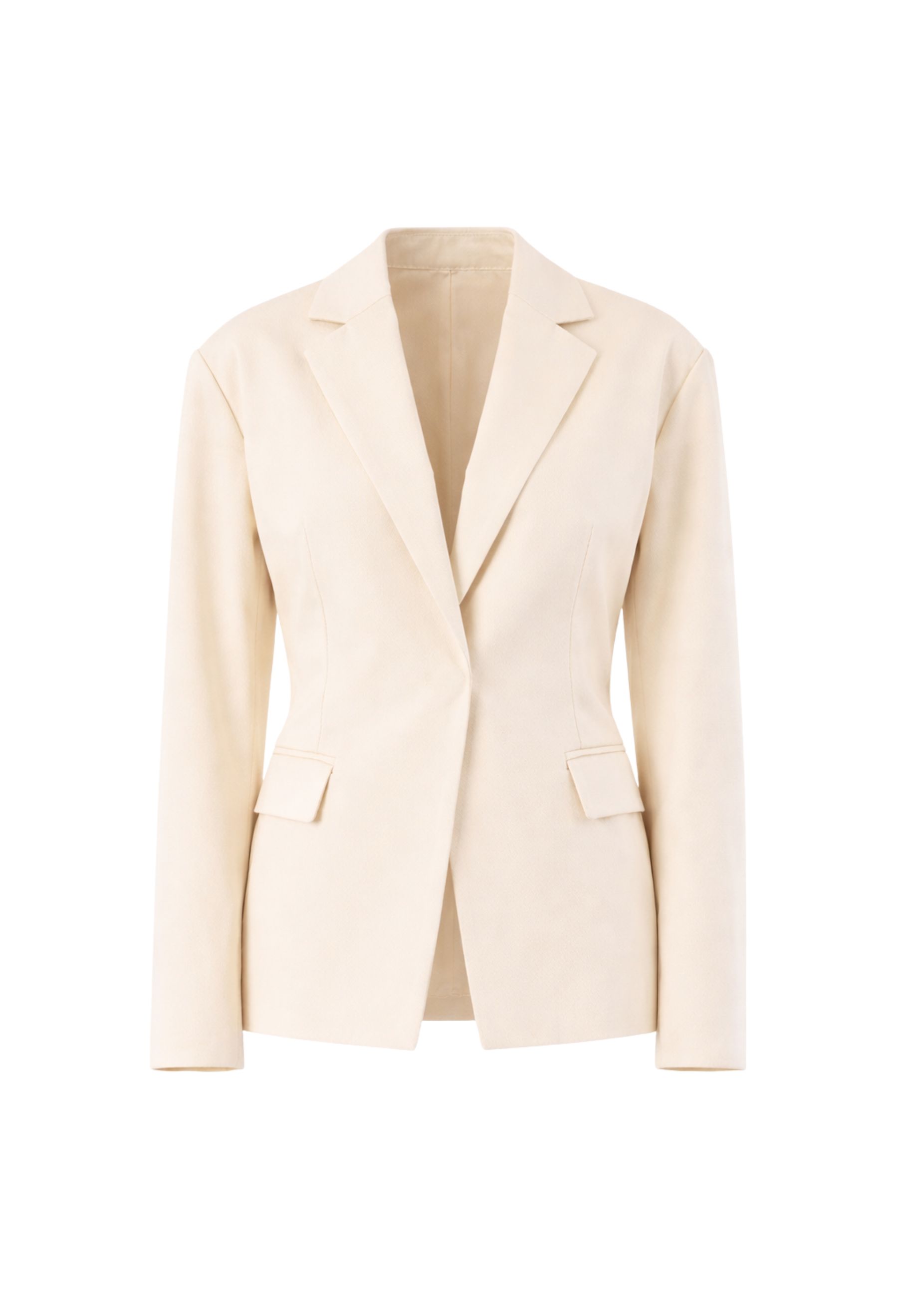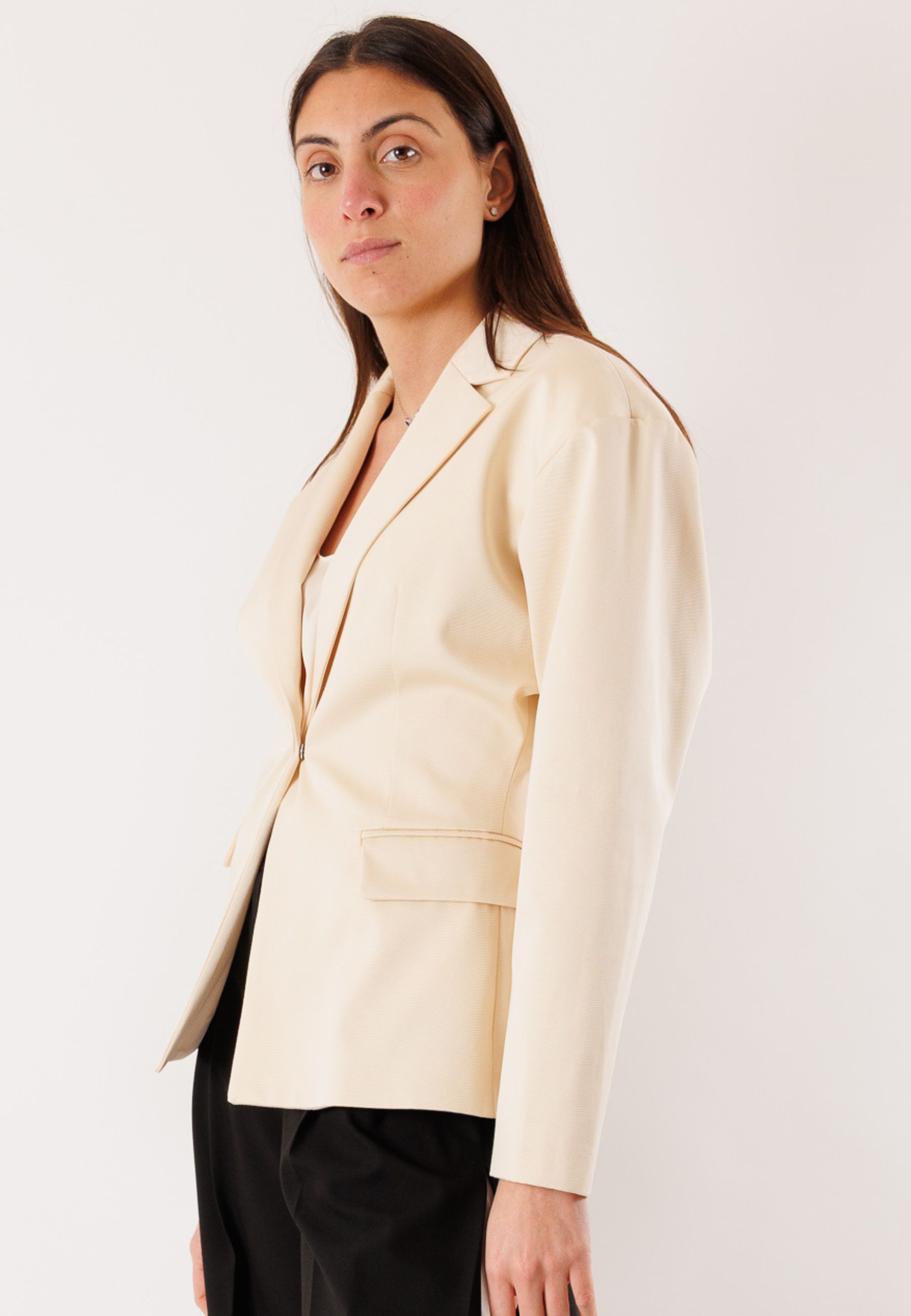The refined design with clean lines and a feminine cut enhances the silhouette, making this jacket ideal for professional, formal, and smart casual looks. The natural fabric ensures durability, freshness, and impeccable performance over time, perfect for the spring and summer seasons.