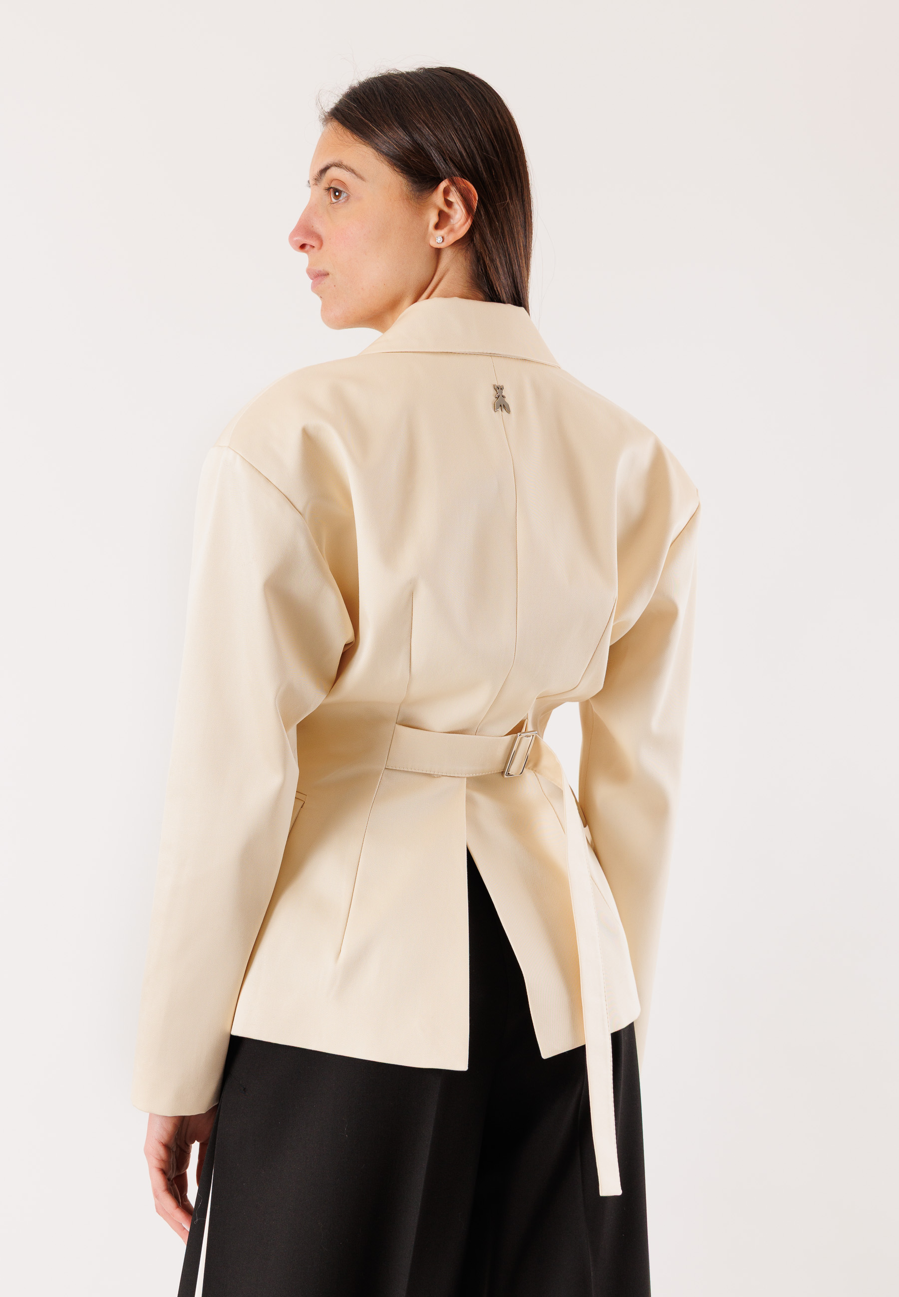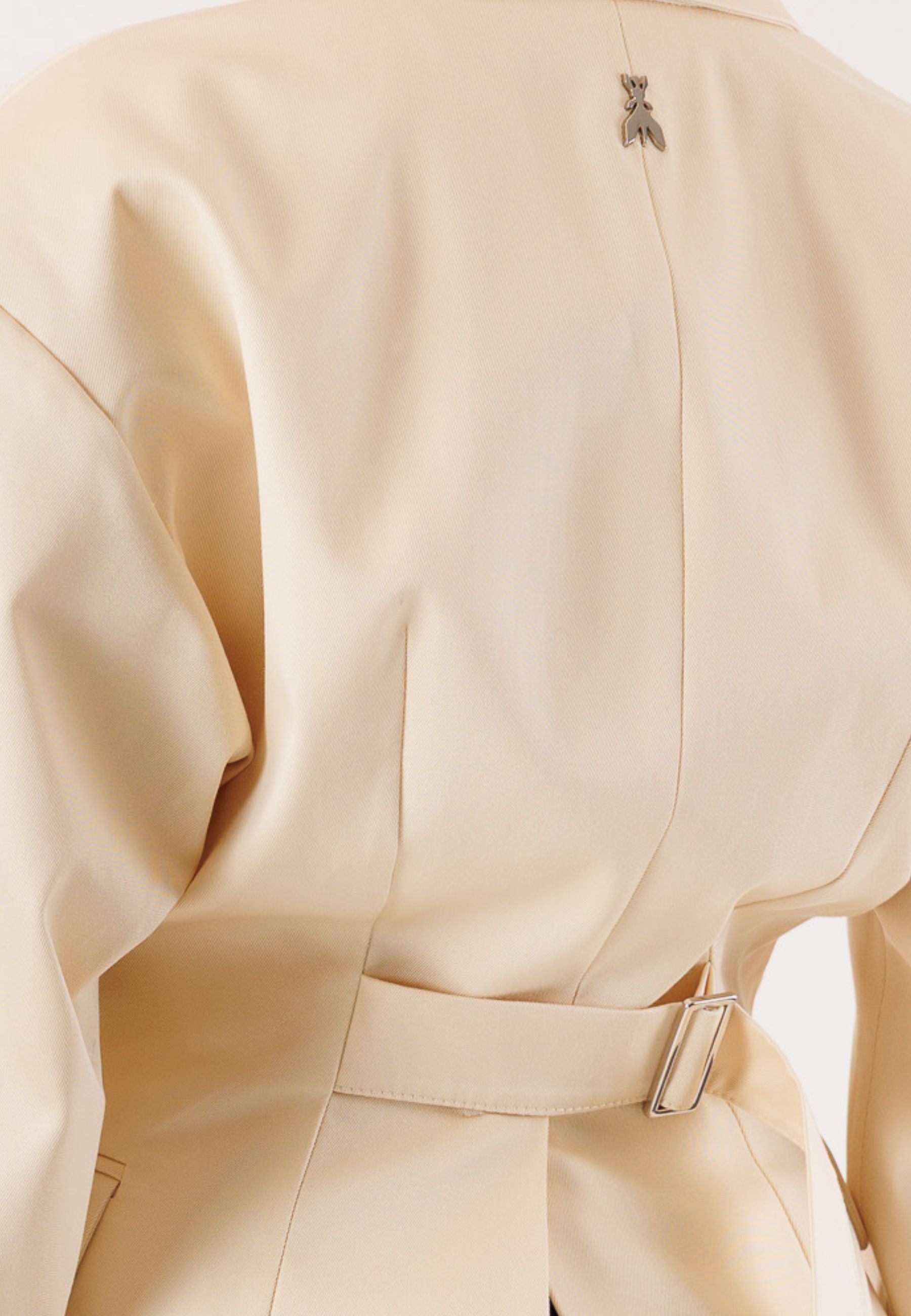 The Patrizia Pepe branded jacket is an iconic piece that combines tailored elegance, natural comfort, and contemporary style. Made from 100% cotton, it offers a soft feel against the skin, excellent breathability, and comfortable all-day wear.