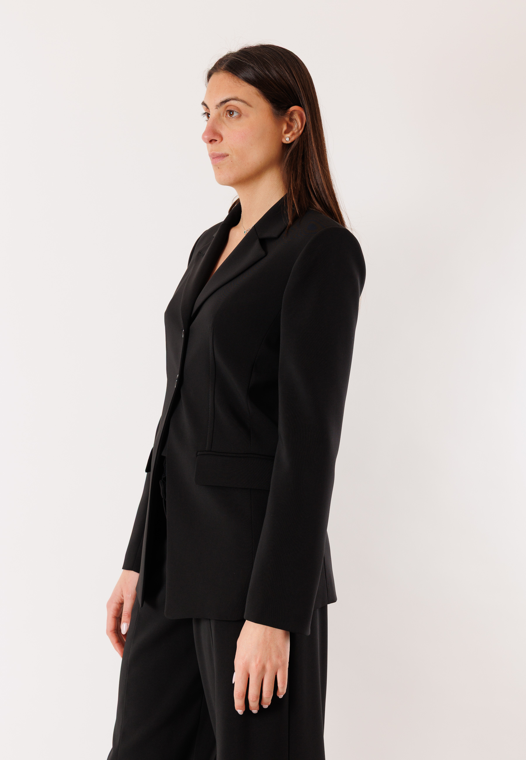 The Patrizia Pepe jacket embodies the perfect balance between tailored elegance, comfort, and contemporary style. Made of 97% polyester and 3% elastane, it ensures a structured yet flexible fit, able to move with you while maintaining a flawless silhouette.