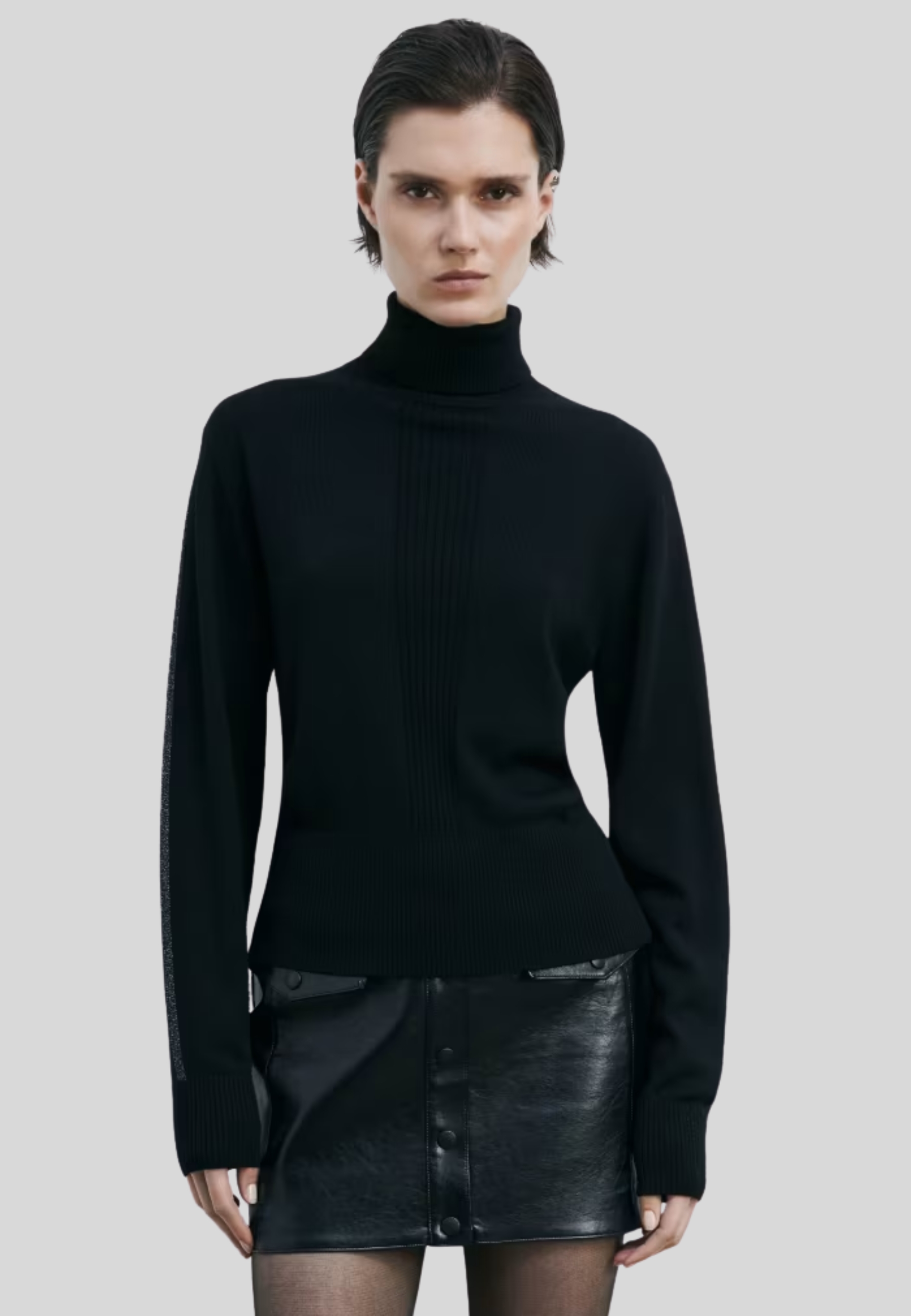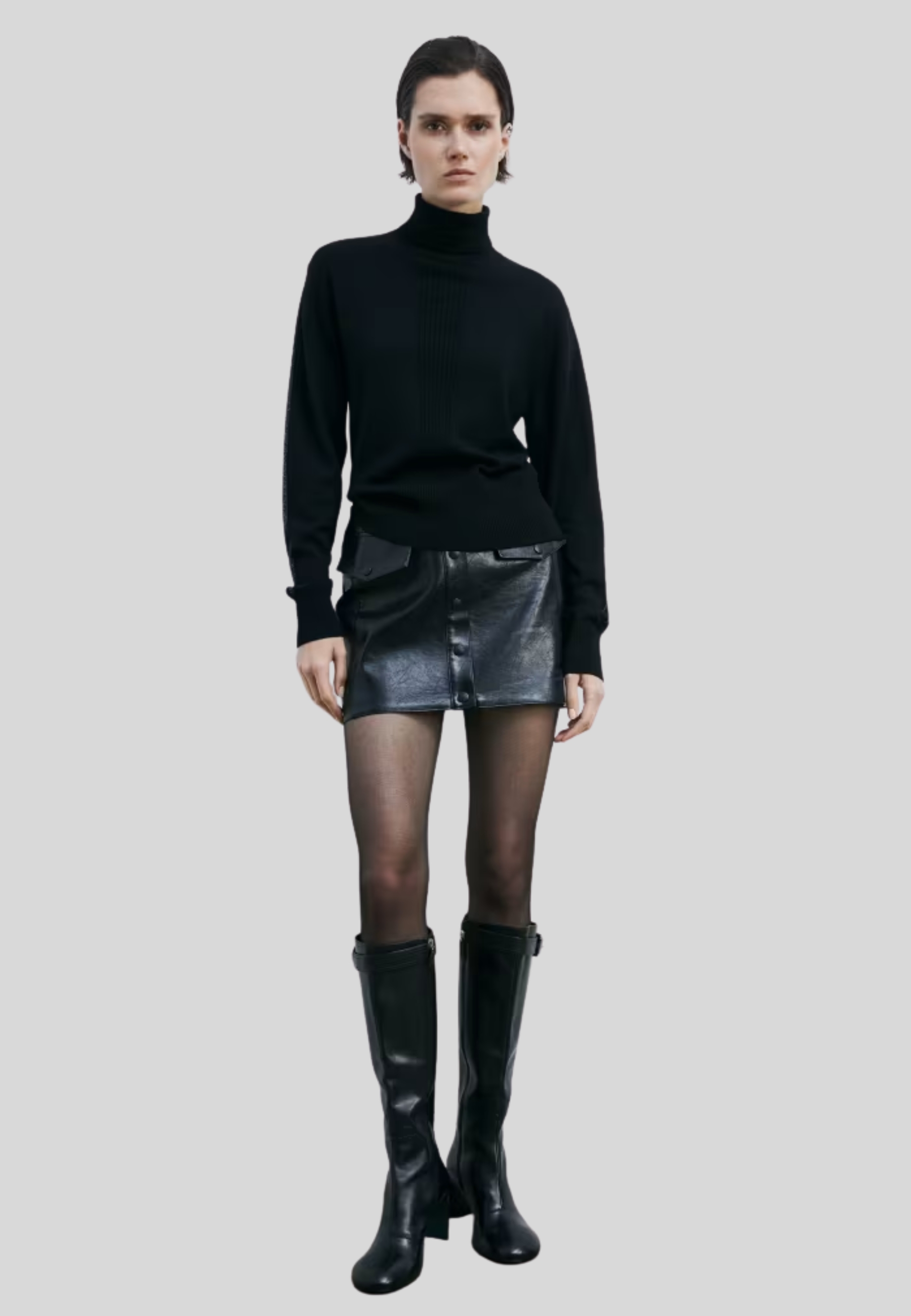 The clean design, structured turtleneck, and minimal lines make it ideal for elegant and contemporary looks. A true winter wardrobe must-have: versatile, sophisticated, and easy to pair with skirts, trousers, or denim.