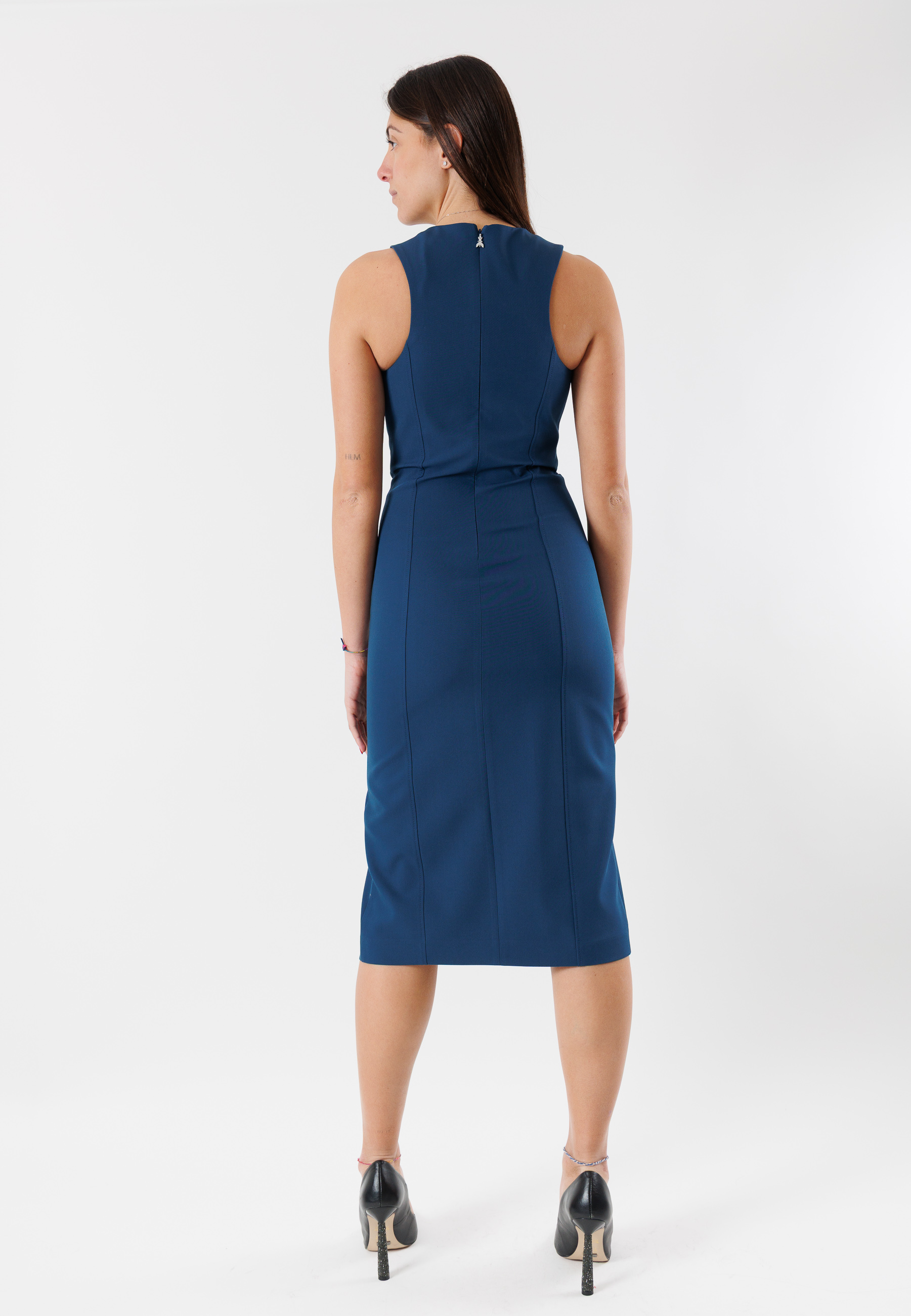 Patrizia Pepe women's dress with a sophisticated and contemporary character, ideal for enhancing the silhouette with a fitted, feminine midi line. Made from a comfortable and high-performance fabric composed of 72% polyester, 23% viscose, and 5% elastane, it ensures a flawless fit and pleasant stretch.