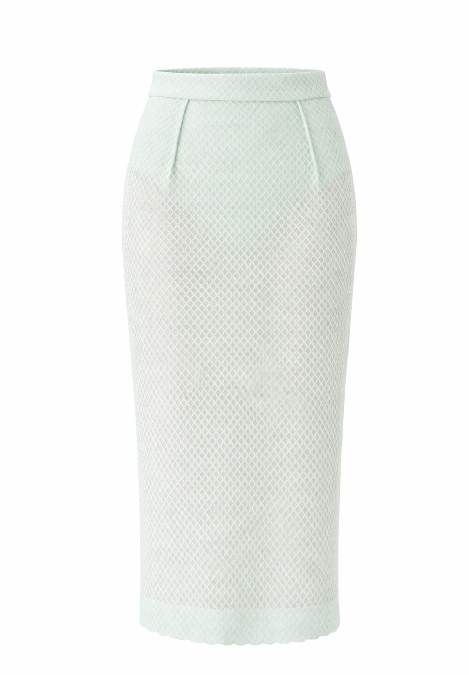 The design stands out for its transparent mesh construction, which creates an elegant see-through effect, balanced by the coordinated inner culotte that ensures comfort and practicality. The midi length elongates the silhouette, while the fitted line enhances the shapes with elegance and character.