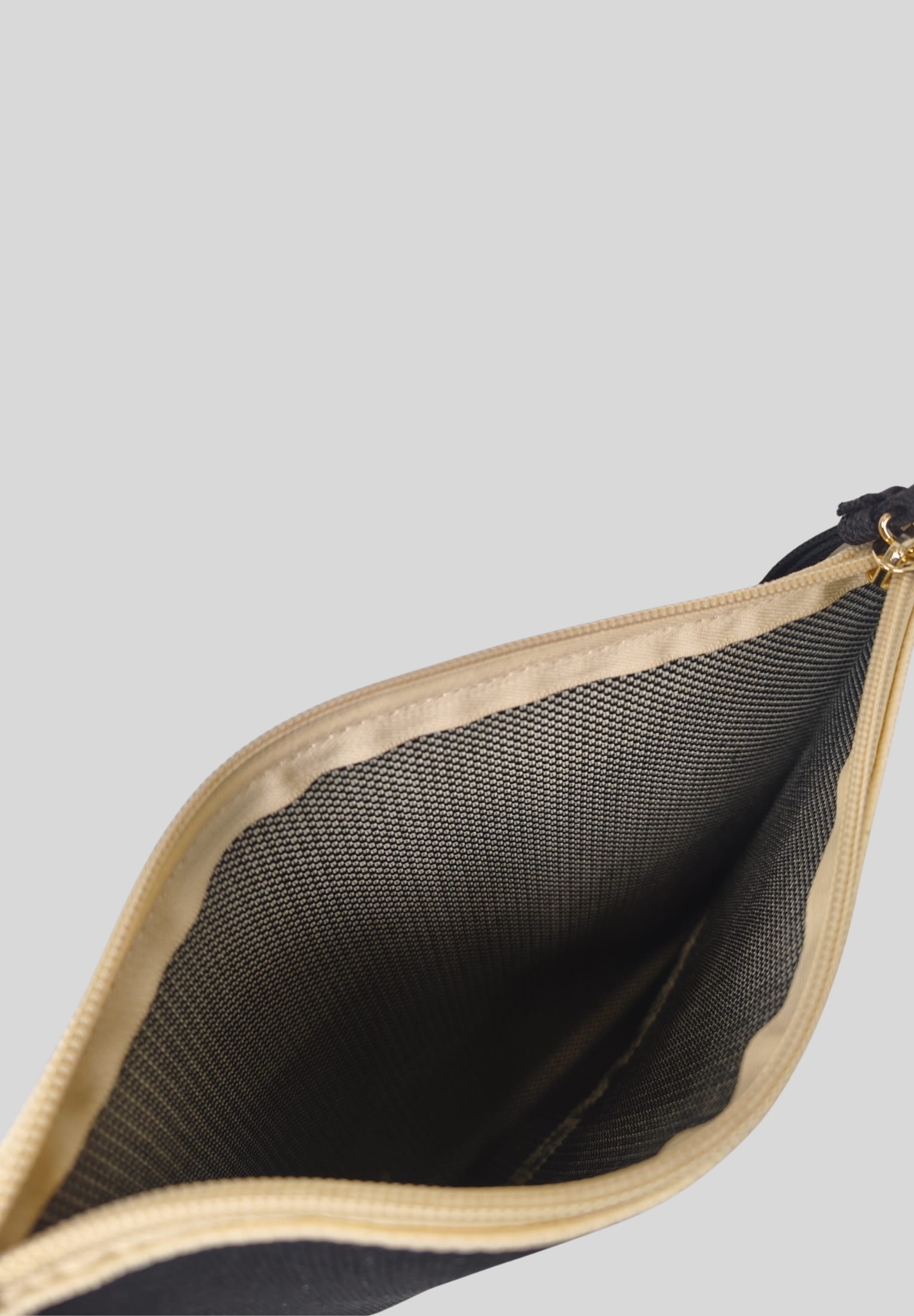 The soft yet durable construction is completed by a top zip closure and a wrist strap, making it easy to use every day. The interior offers ample and well-organized space, ideal for storing personal accessories, small items, or documents.