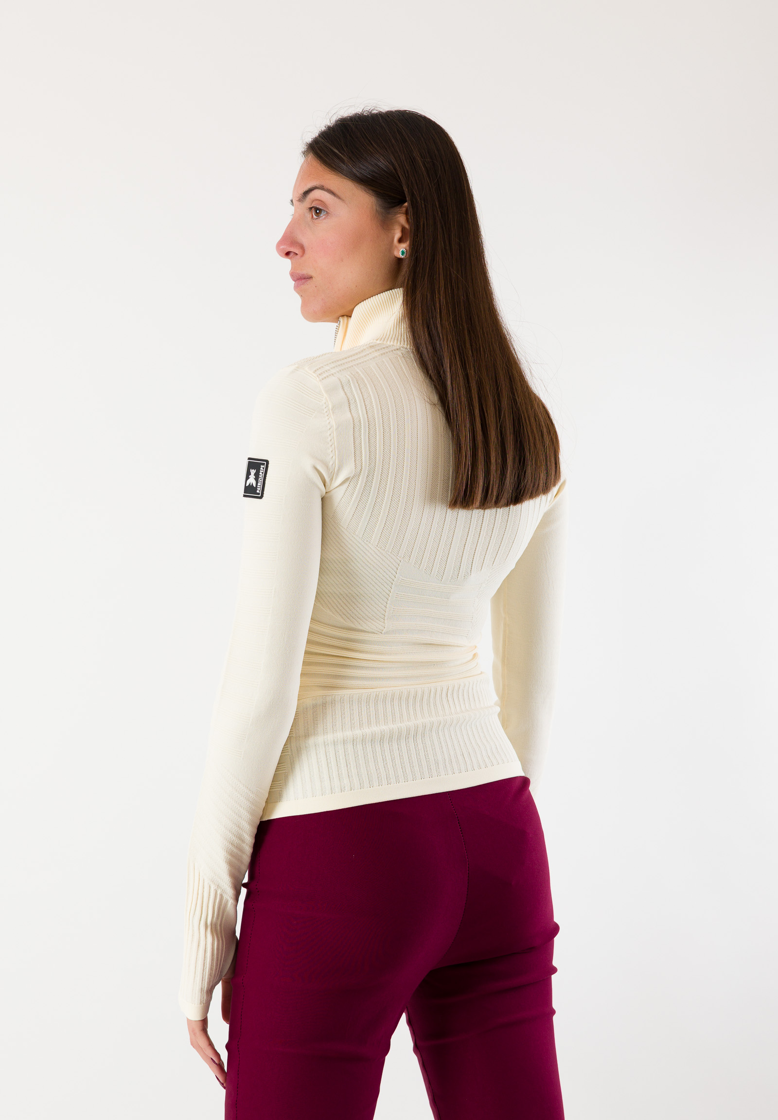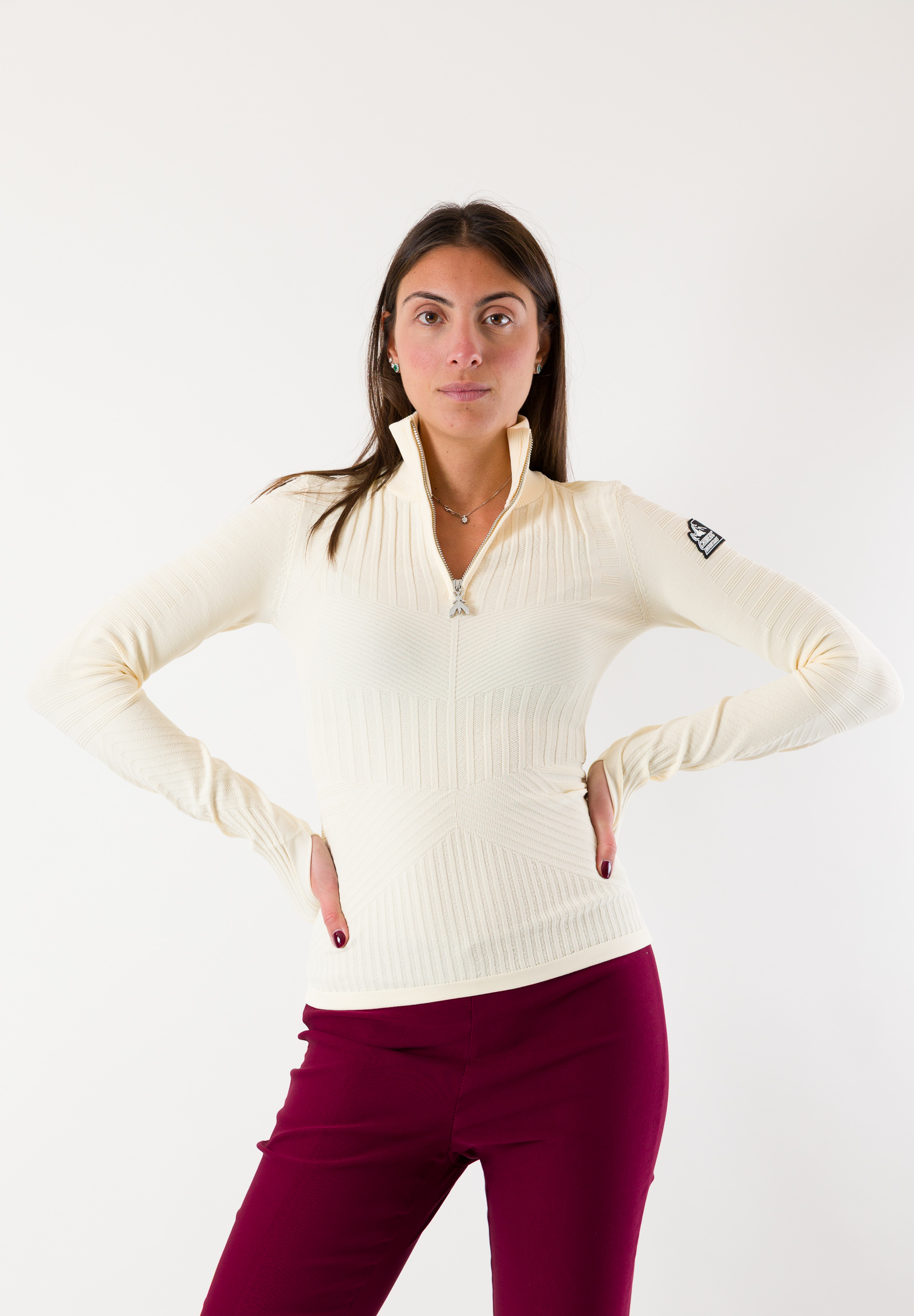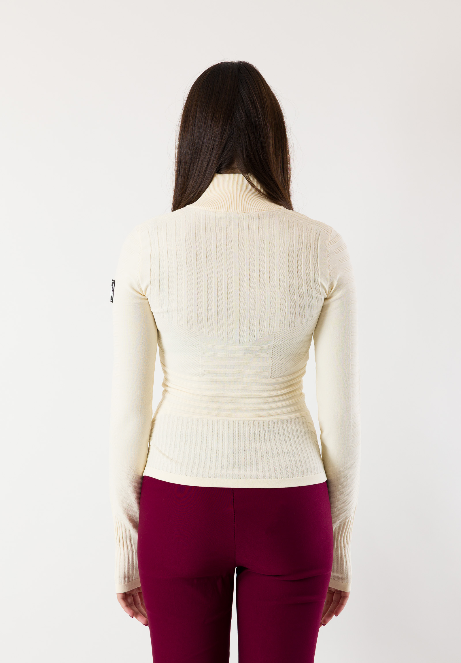 The design with a front zip and tone-on-tone ribbing enhances the silhouette, while the logo applied on the sleeve adds a distinctive touch.