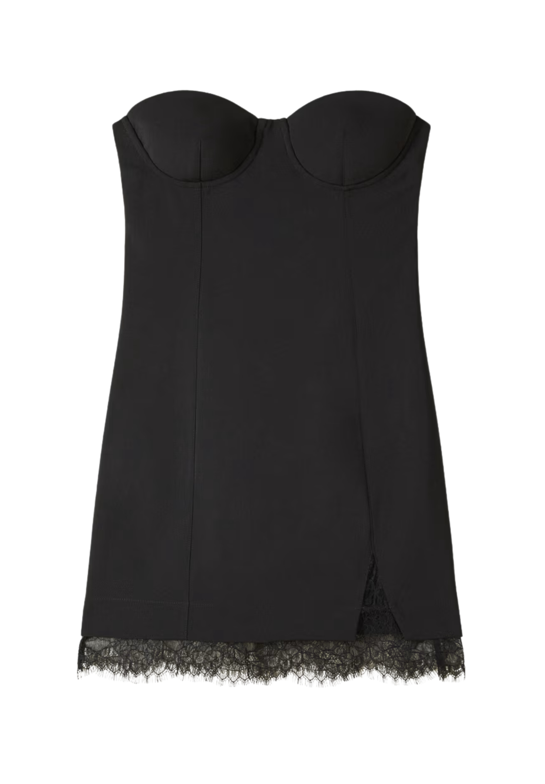 The design with thin straps and a shaped neckline highlights the décolleté, while the lace detail at the hem adds a sensual and elegant touch. Perfect for evenings, special events, or glamorous occasions, this dress pairs ideally with pumps or high-heeled sandals.