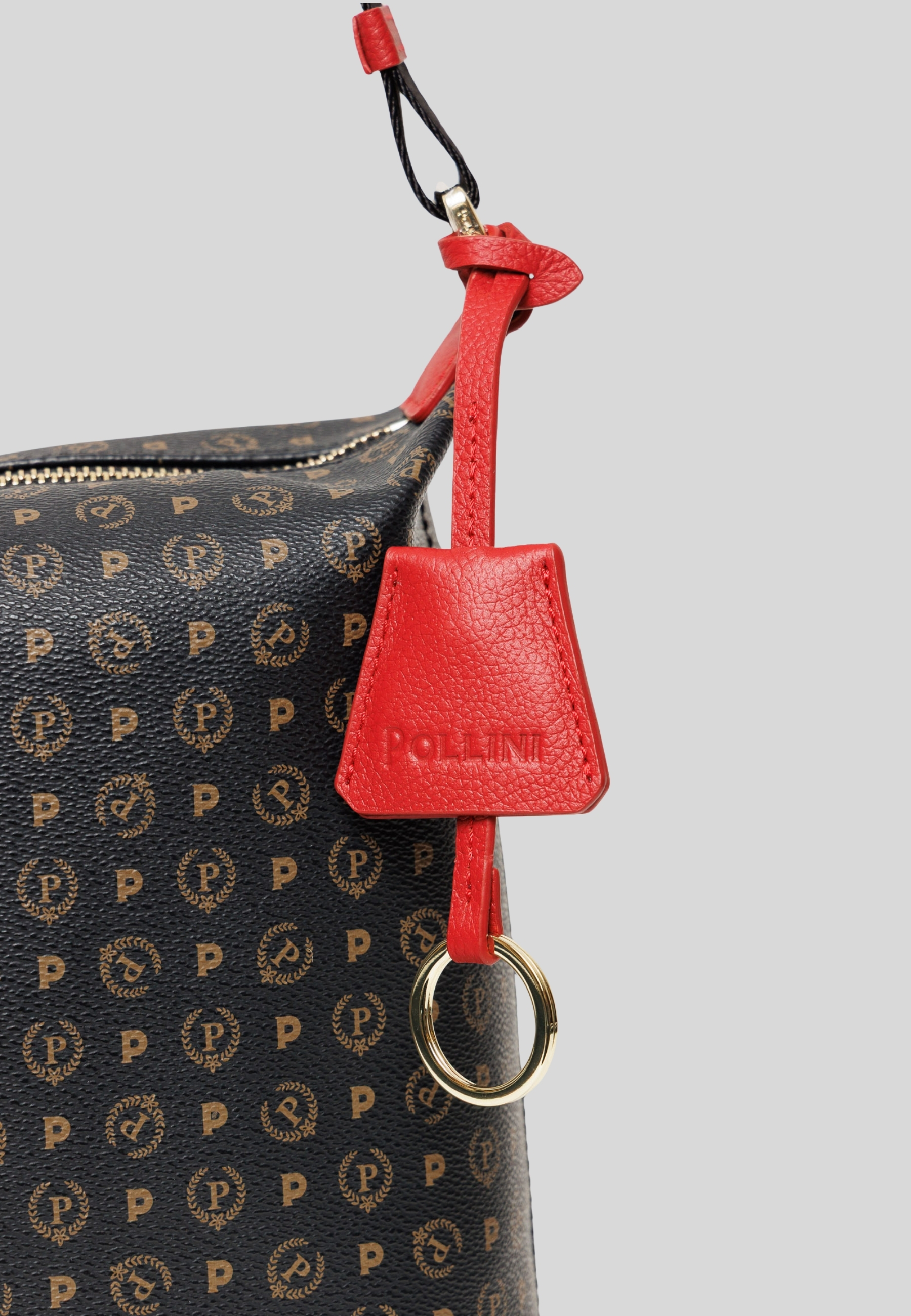 - Details: Logo charm with decorative ring, smooth leather inserts