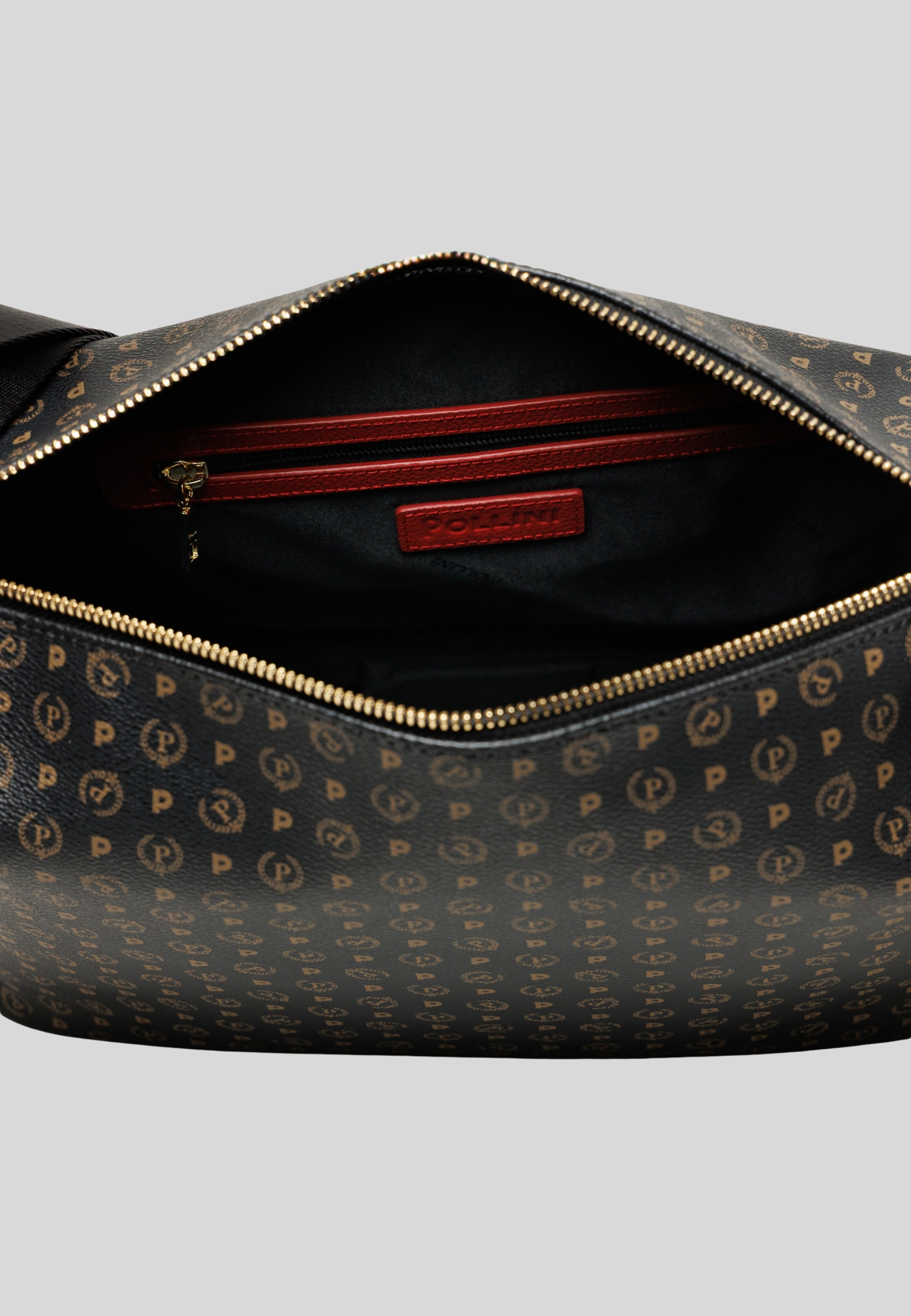 Shoulder bag by Pollini. Made of high-quality synthetic material with an iconic all-over Heritage print, it stands out for its structured design and attention to detail. The contrast between the logo motif and the pebble leather details gives the model a refined and contemporary touch.
