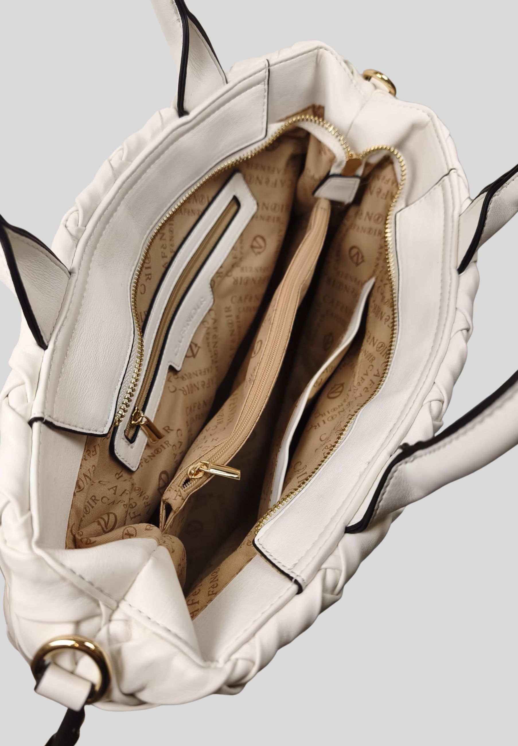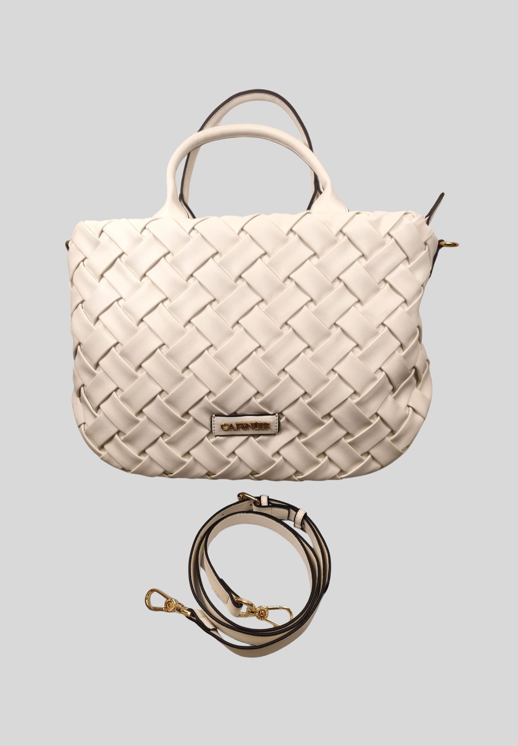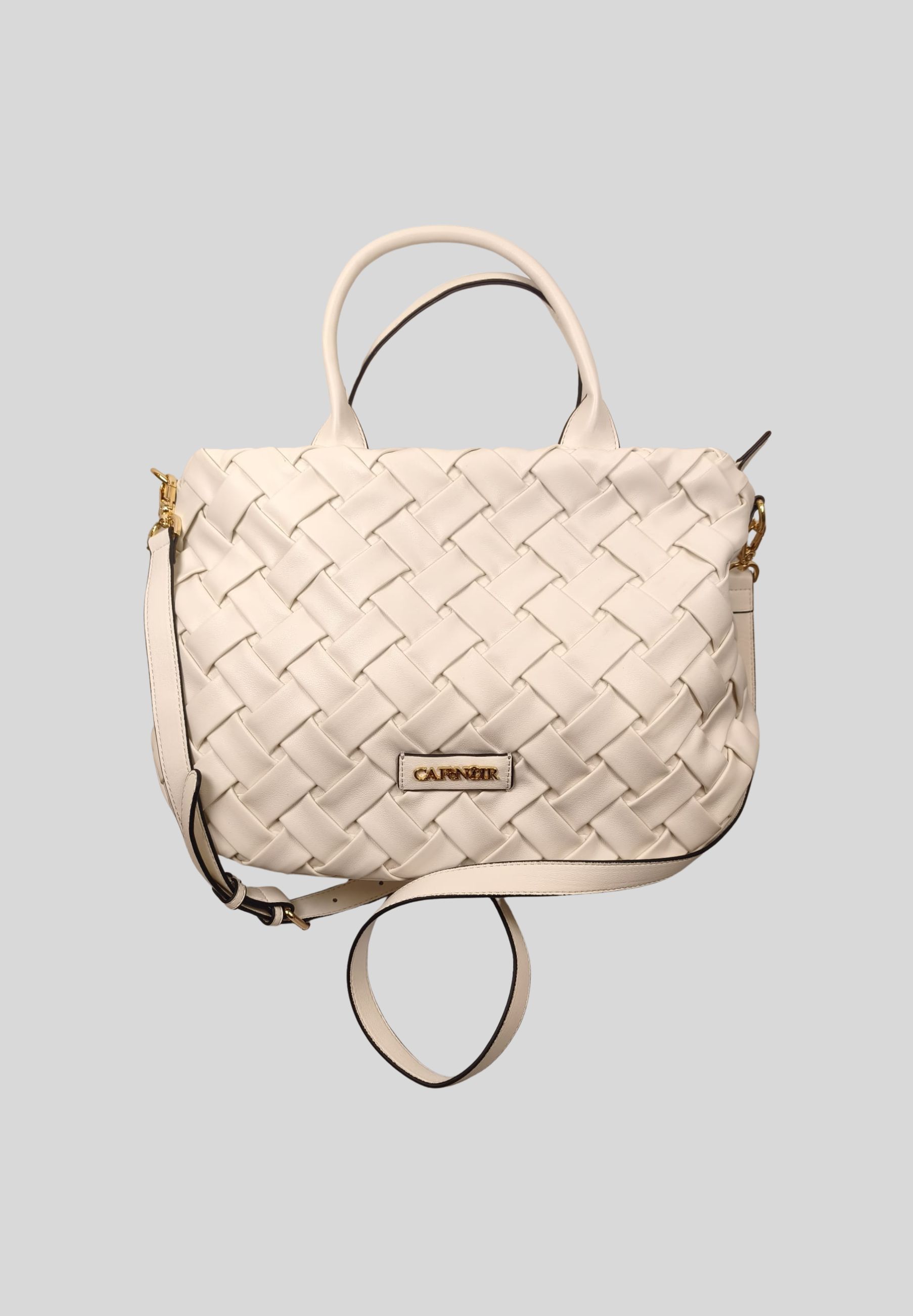 Elegante e contemporanea, questa borsa Cafè Noir è realizzata in 100% poliuretano con una raffinata lavorazione intrecciata in similpelle, che dona carattere e stile al design. La forma compatta ma strutturata la rende ideale per luso quotidiano, mentre i doppi manici garantiscono una portabilità comoda. È dotata di tracolla regolabile e removibile, per un utilizzo versatile a mano o a spalla. Linterno foderato con tasca zip permette una pratica organizzazione degli oggetti essenziali. Perfetta per look casual chic e outfit urbani, è un accessorio moderno e funzionale firmato Cafè Noir.
