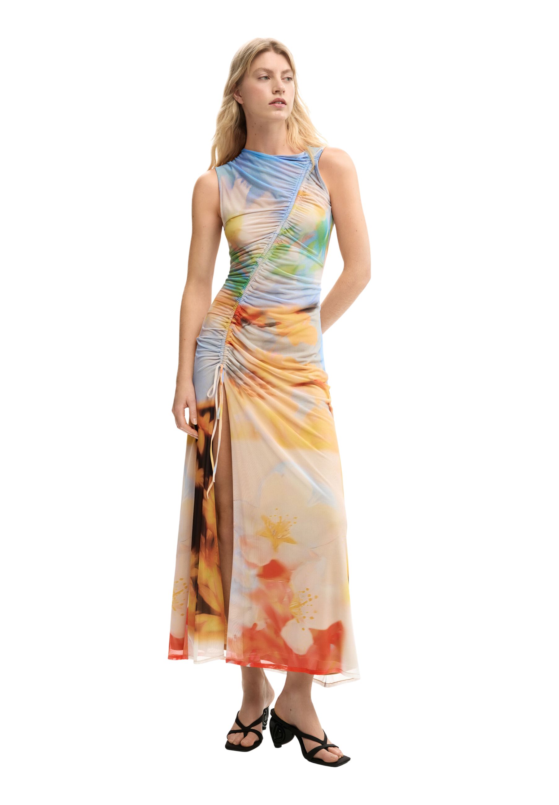 Questo abito Desigual in 93% poliestere e 7% elastan è un modello dallo stile fresco e vibrante, perfetto per look estivi dimpatto e outfit da città ricchi di personalità. Il design presenta una linea lunga e scivolata, con un corpetto morbido drappeggiato che valorizza la parte superiore del capo in modo naturale ed elegante. La lunghezza maxi dona slancio e armonia alla figura, accompagnando i movimenti con leggerezza.