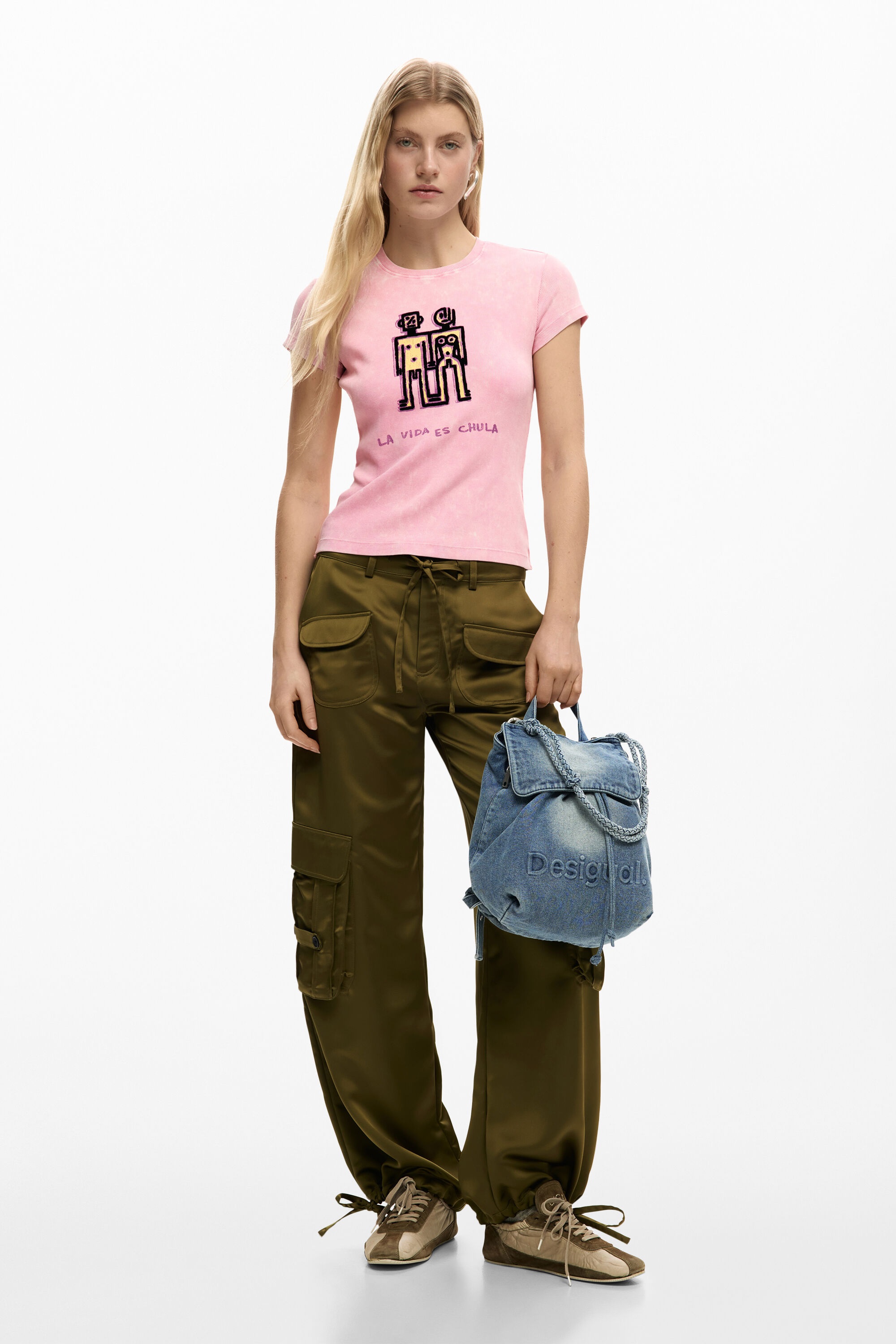 Il design ispirato al denim, arricchito dal logo Desigual in rilievo e da dettagli decorativi iconici, dona personalità e carattere allaccessorio. La struttura compatta ma capiente lo rende ideale per accompagnare le giornate in città, il tempo libero o i viaggi brevi.