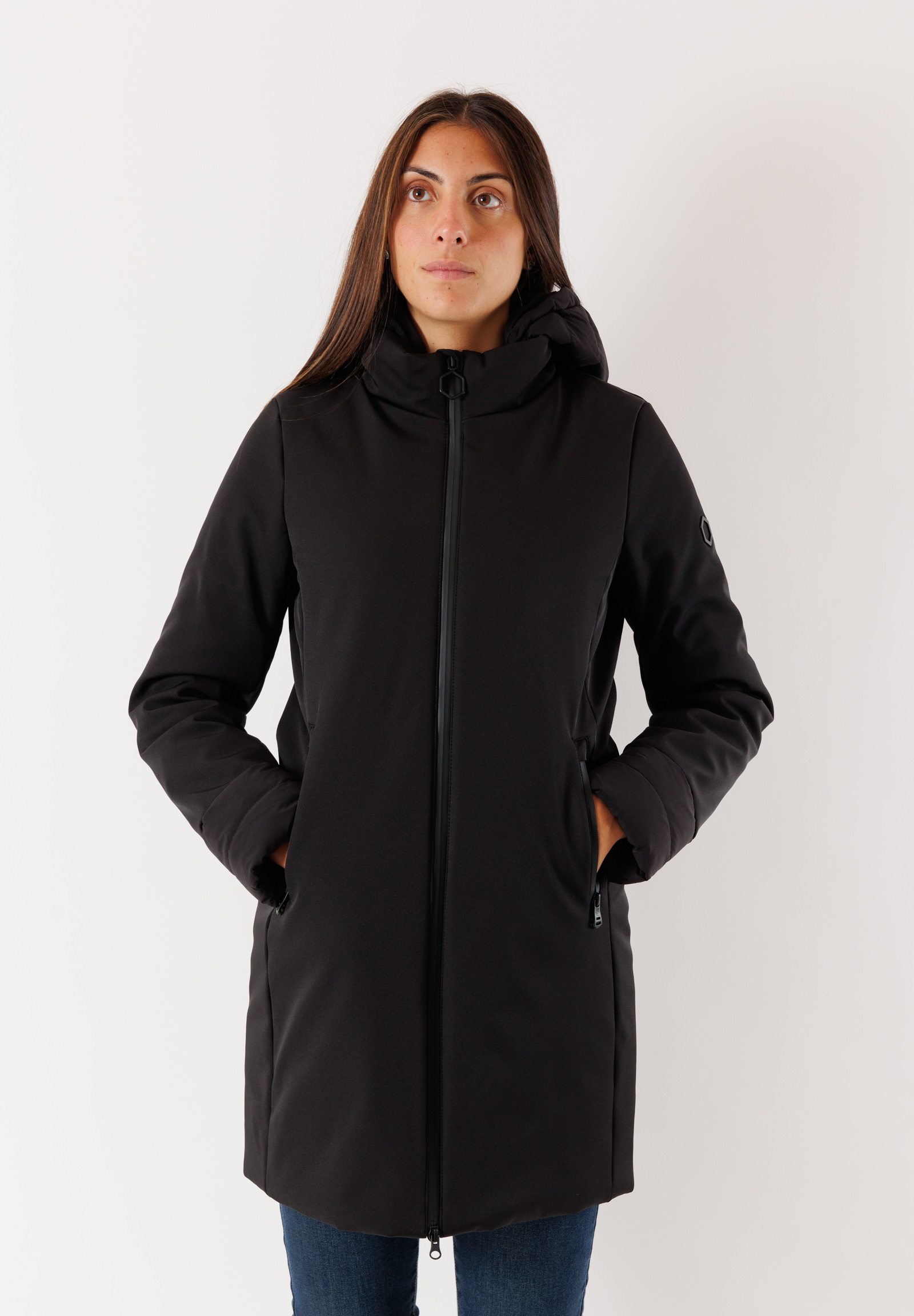 Realizzato in un tessuto tecnico sul davanti, questo giubbino 3/4 con cappuccio è perfetto per proteggerti dal clima invernale. Il retro è trapuntato per un ulteriore strato di calore e le tasche a filo ti permettono di portare con te gli essenziali. Mantieniti al caldo e alla moda con questo giubbino elegante.