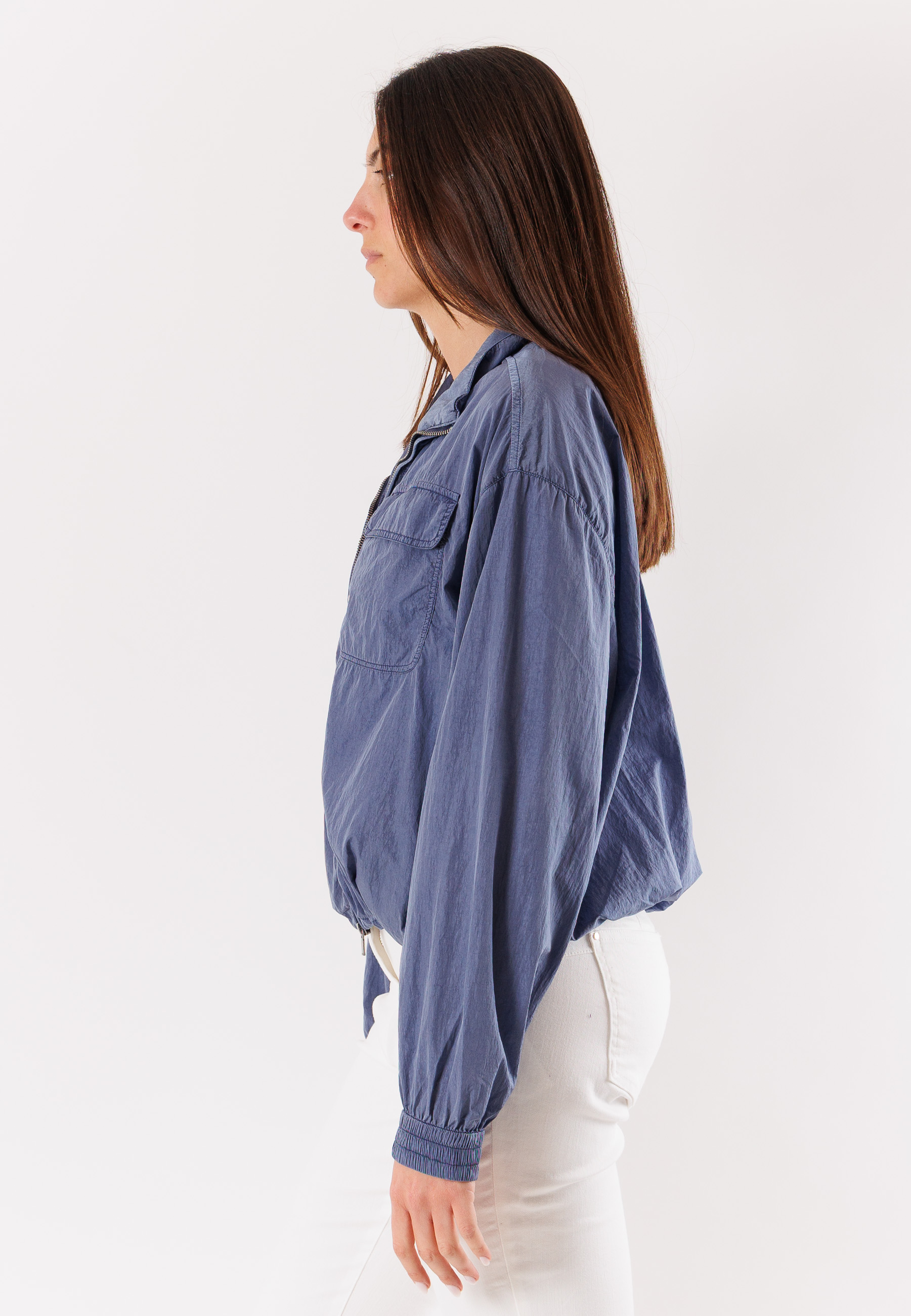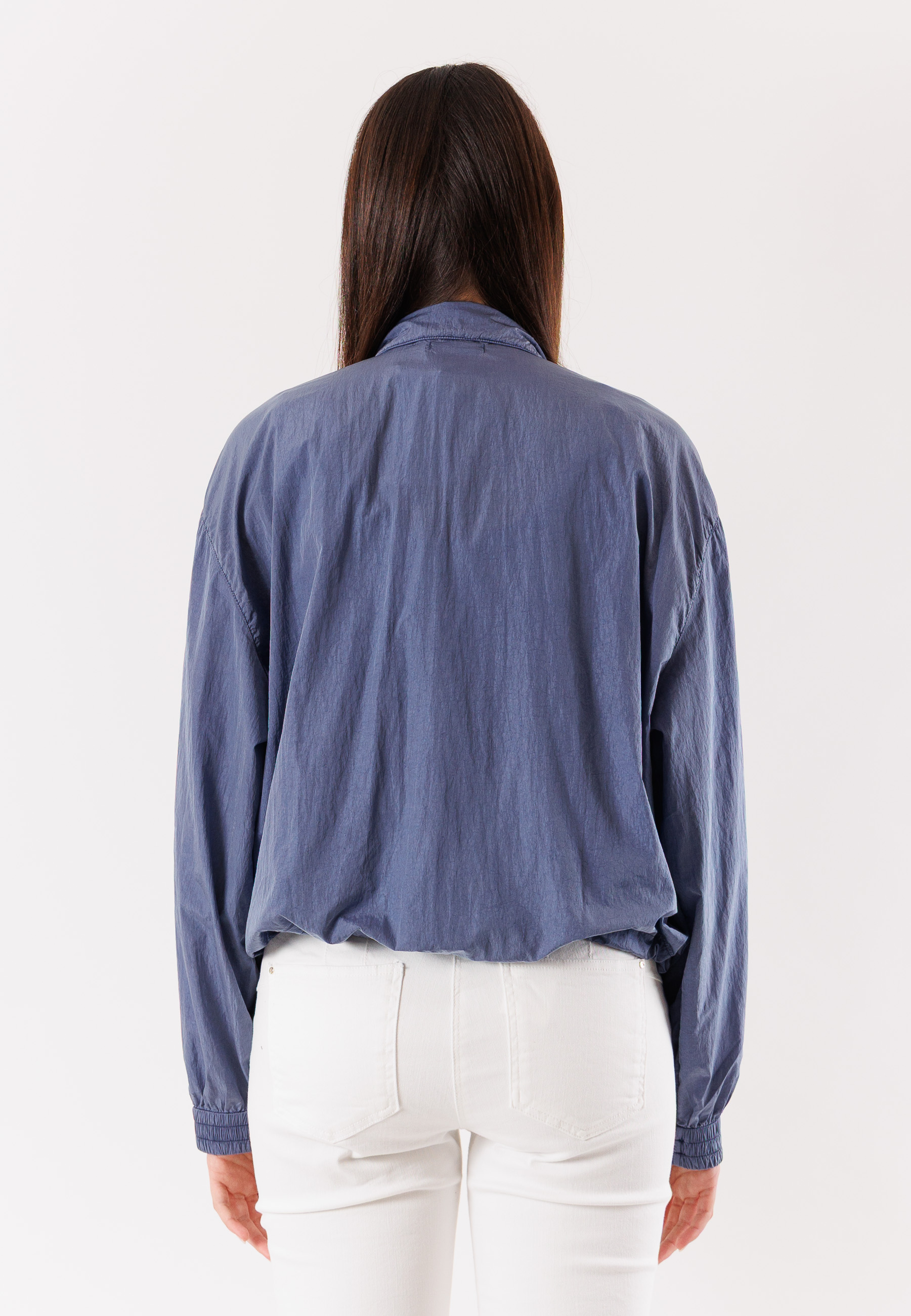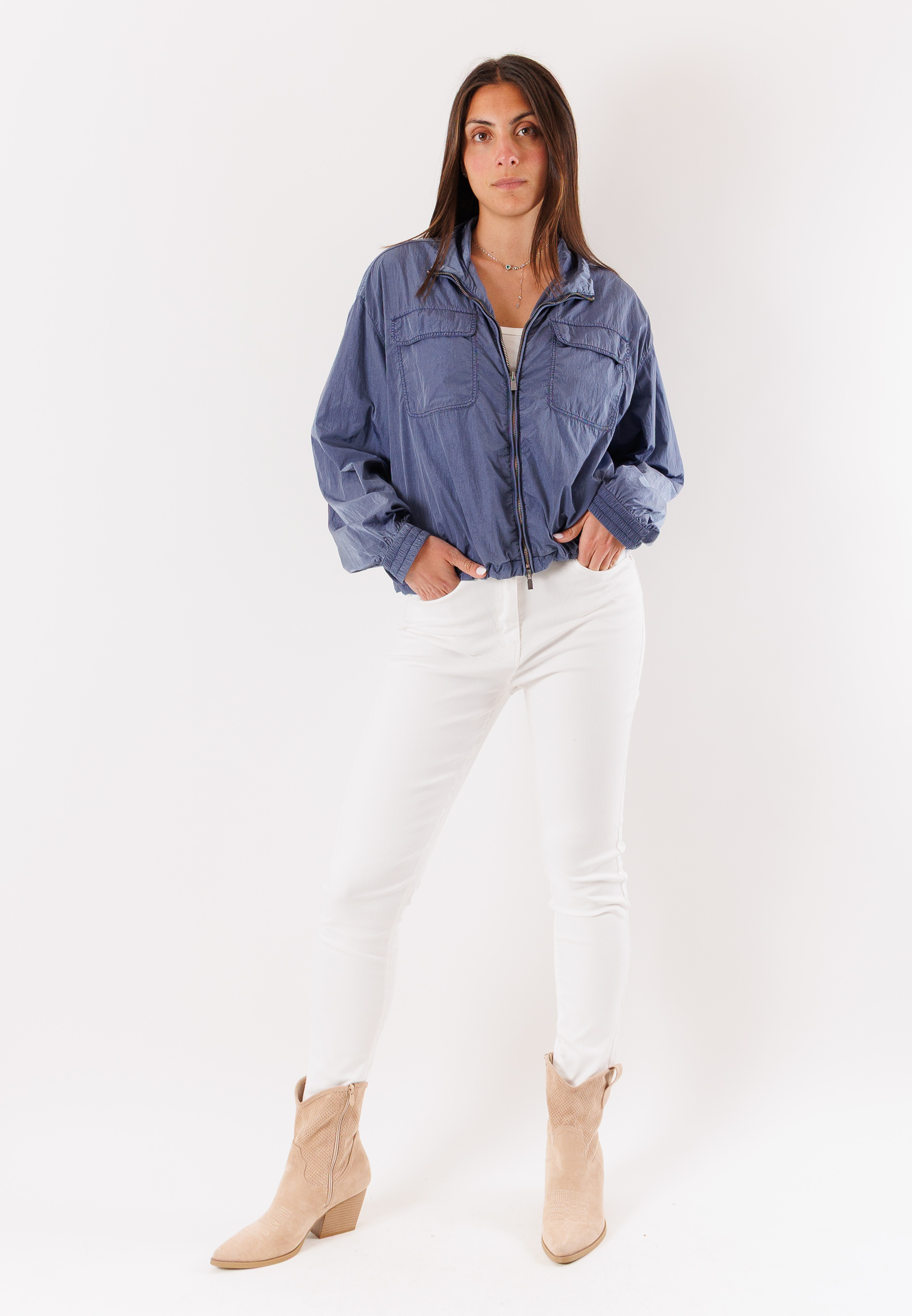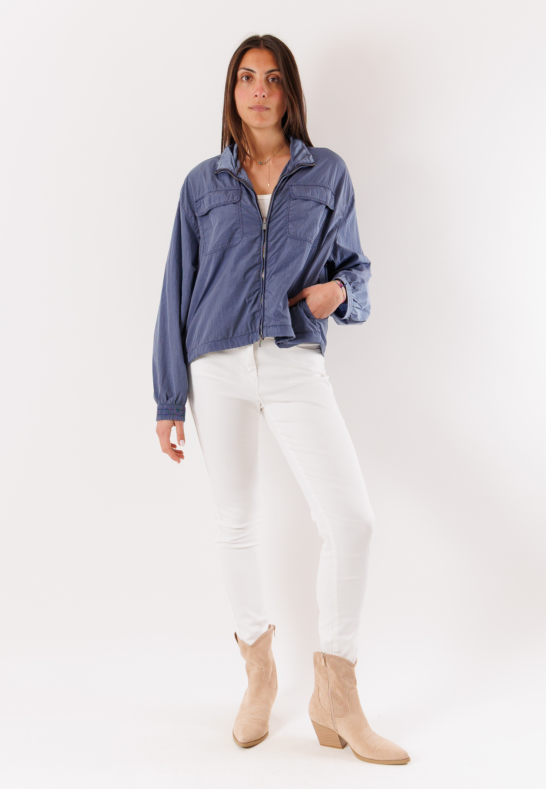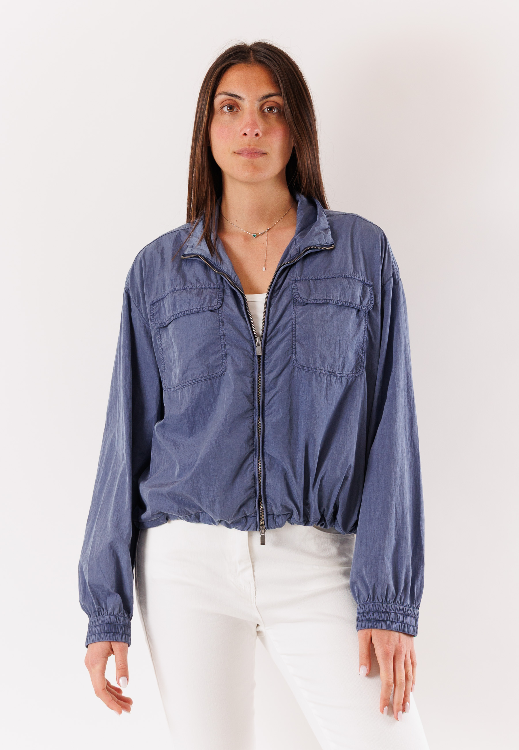 Il design presenta una chiusura frontale con zip, un collo alto e una linea morbida che garantisce comfort e libertà di movimento. Le maniche lunghe con polsini elasticizzati e il fondo leggermente arricciato contribuiscono a una vestibilità pratica e moderna. La struttura essenziale rende la giacca facile da abbinare e adatta a diverse stagioni.