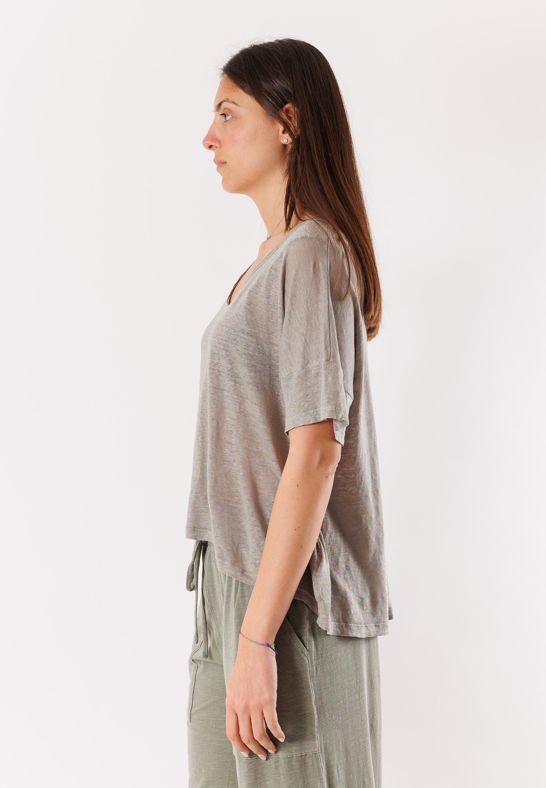 Essenziale e naturalmente raffinata, questa T-shirt over Keeling è un capo ideale per chi cerca comfort e stile in una proposta leggera e contemporanea. Realizzata in 100% lino, offre unelevata traspirabilità e una texture fresca e naturale, perfetta per la stagione primavera-estate.