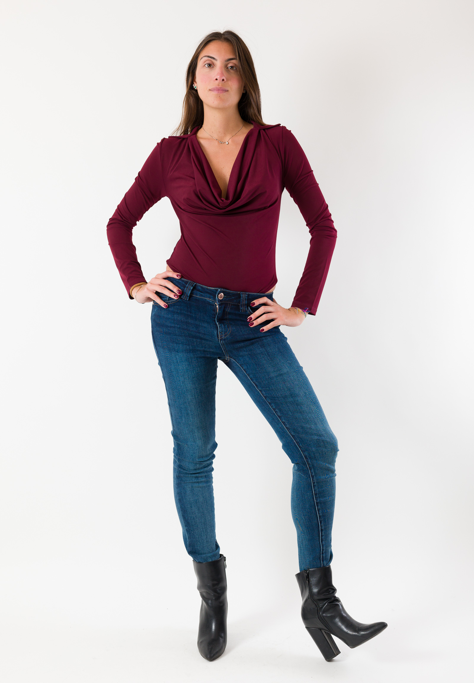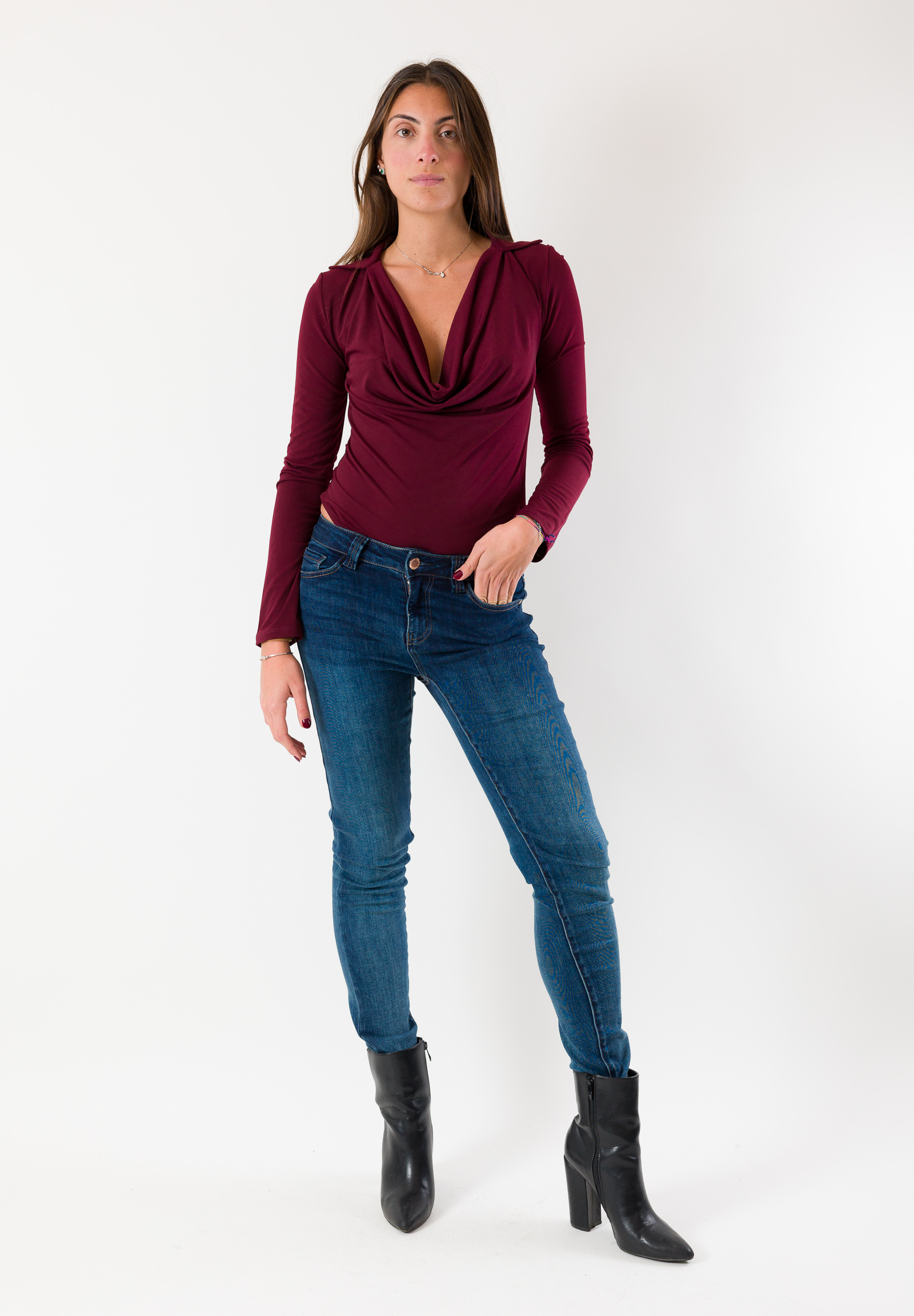 Le maniche lunghe e la linea aderente rendono questo body una scelta versatile per cene, party e serate speciali.