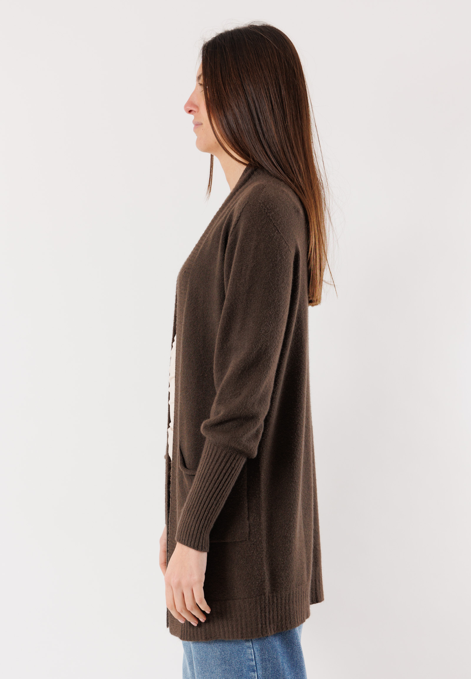 Cardigan lungo con tasce laterali e polsini elasticizzati