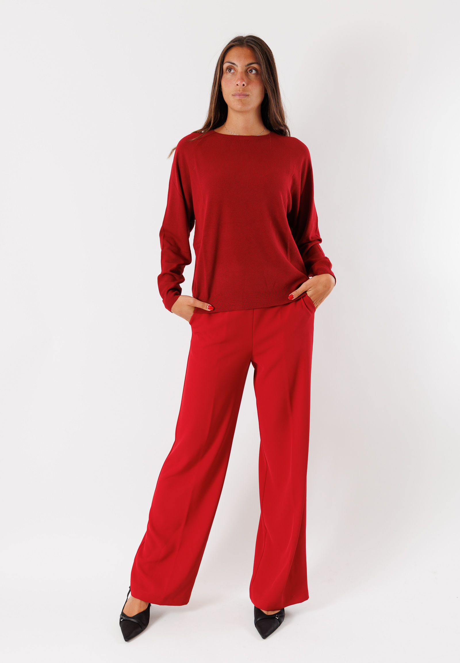Il design essenziale con scollo rotondo, maniche lunghe e finiture a costine la rende ideale per essere indossata sia con pantaloni eleganti che con denim o gonne.