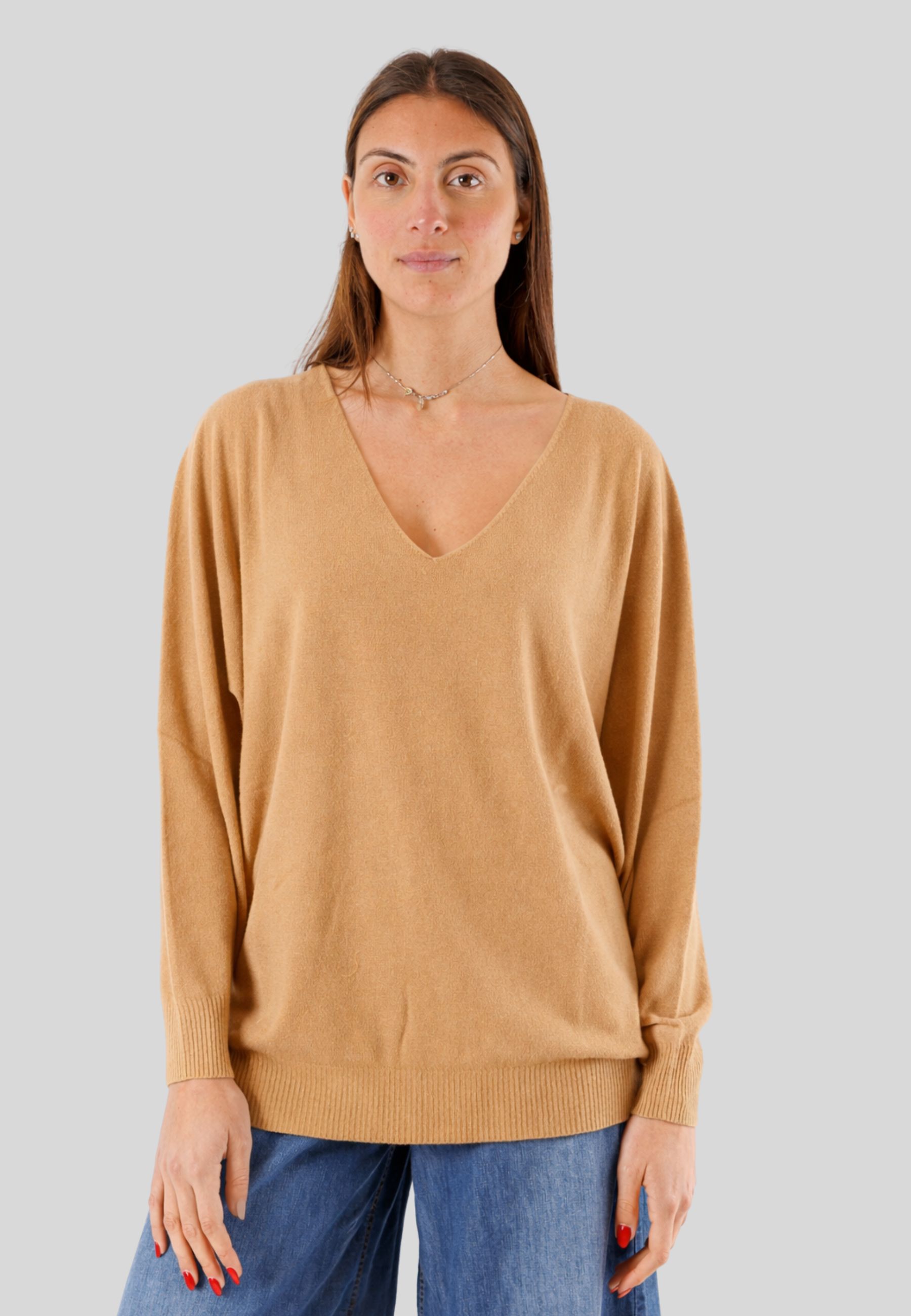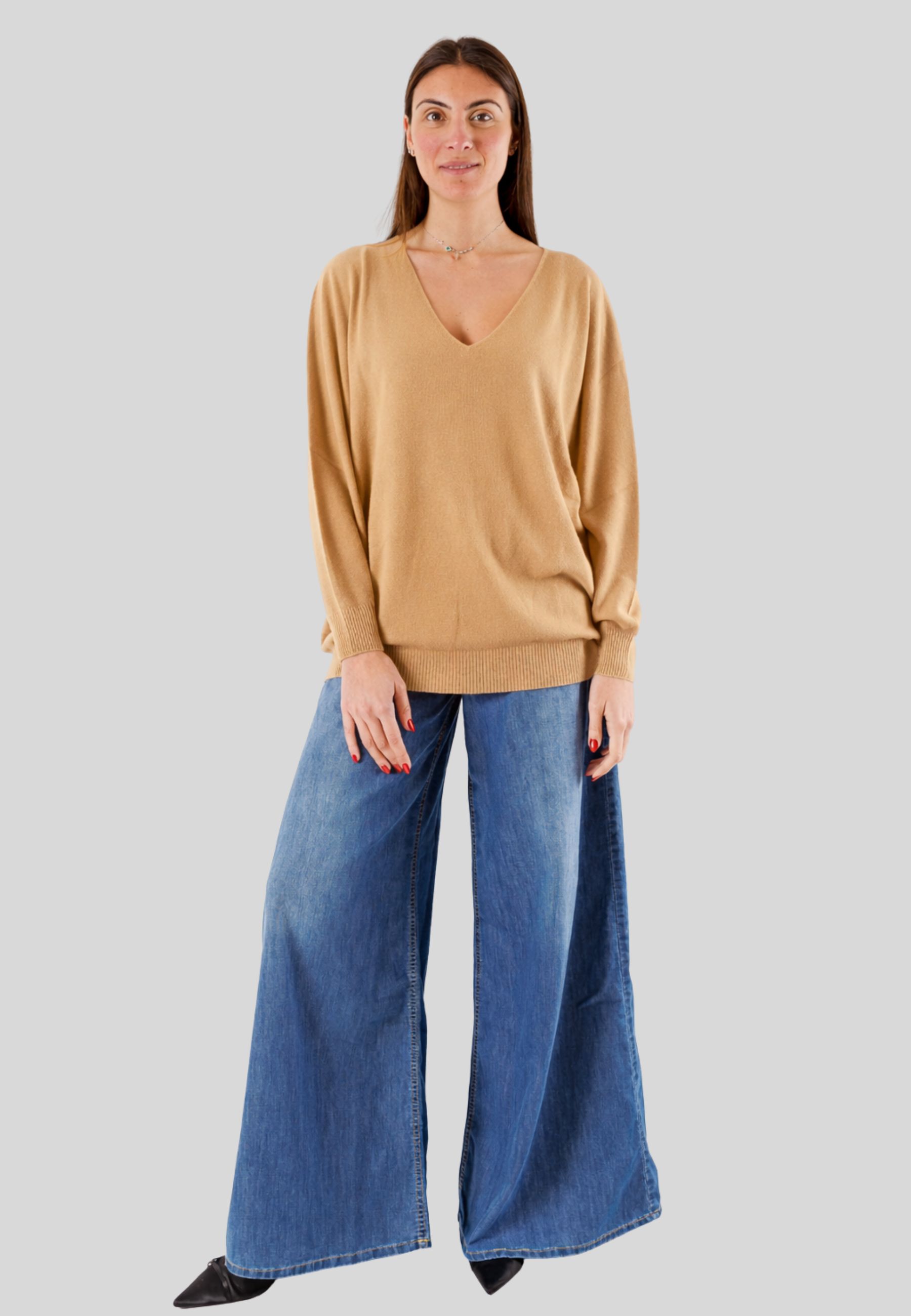 Il design con scollo a V valorizza il décolleté e rende il capo versatile, perfetto sia con jeans che con gonne a vita alta.