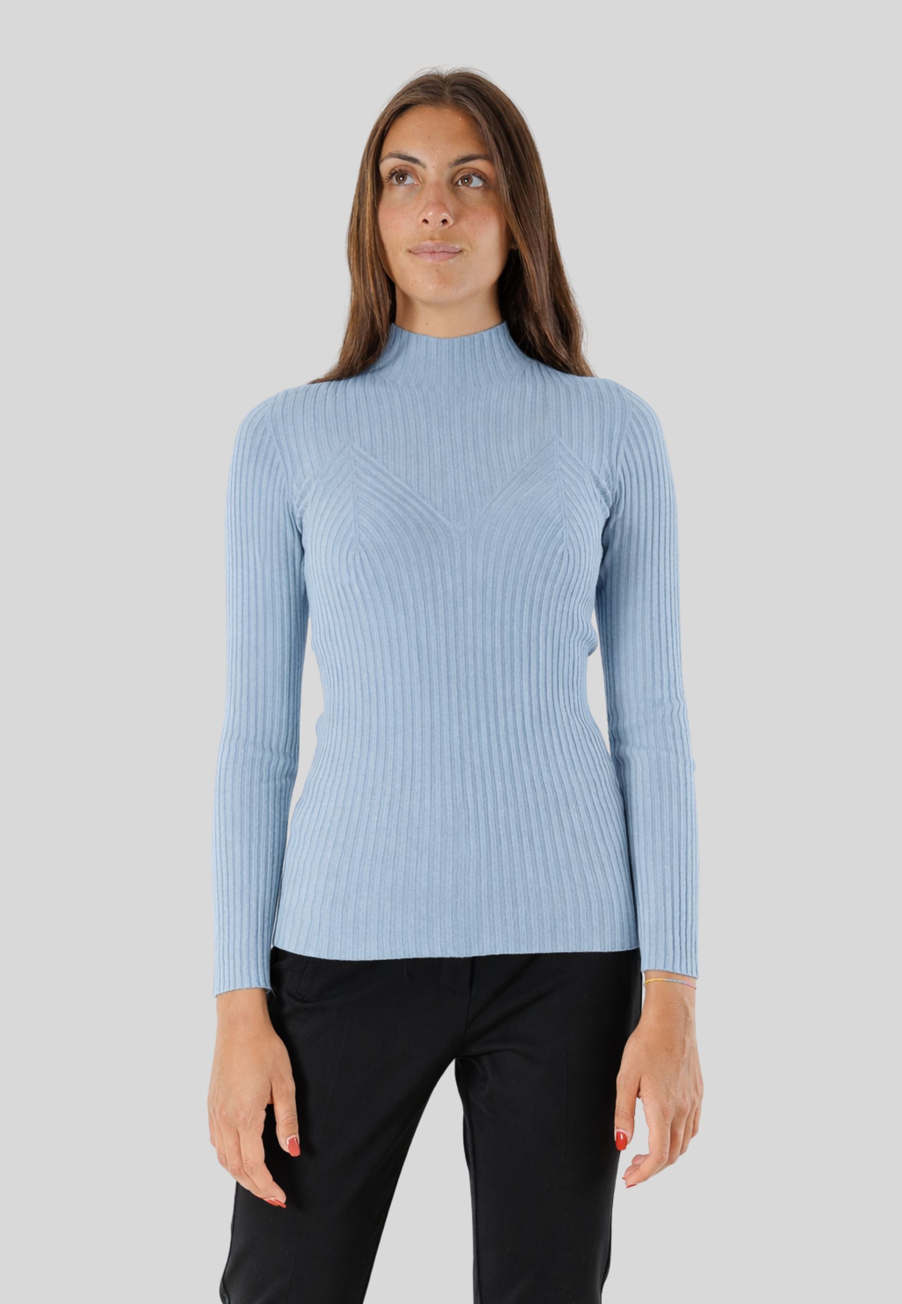 Pullover a coste sottili , con collo alto e linea aderente 3M0814