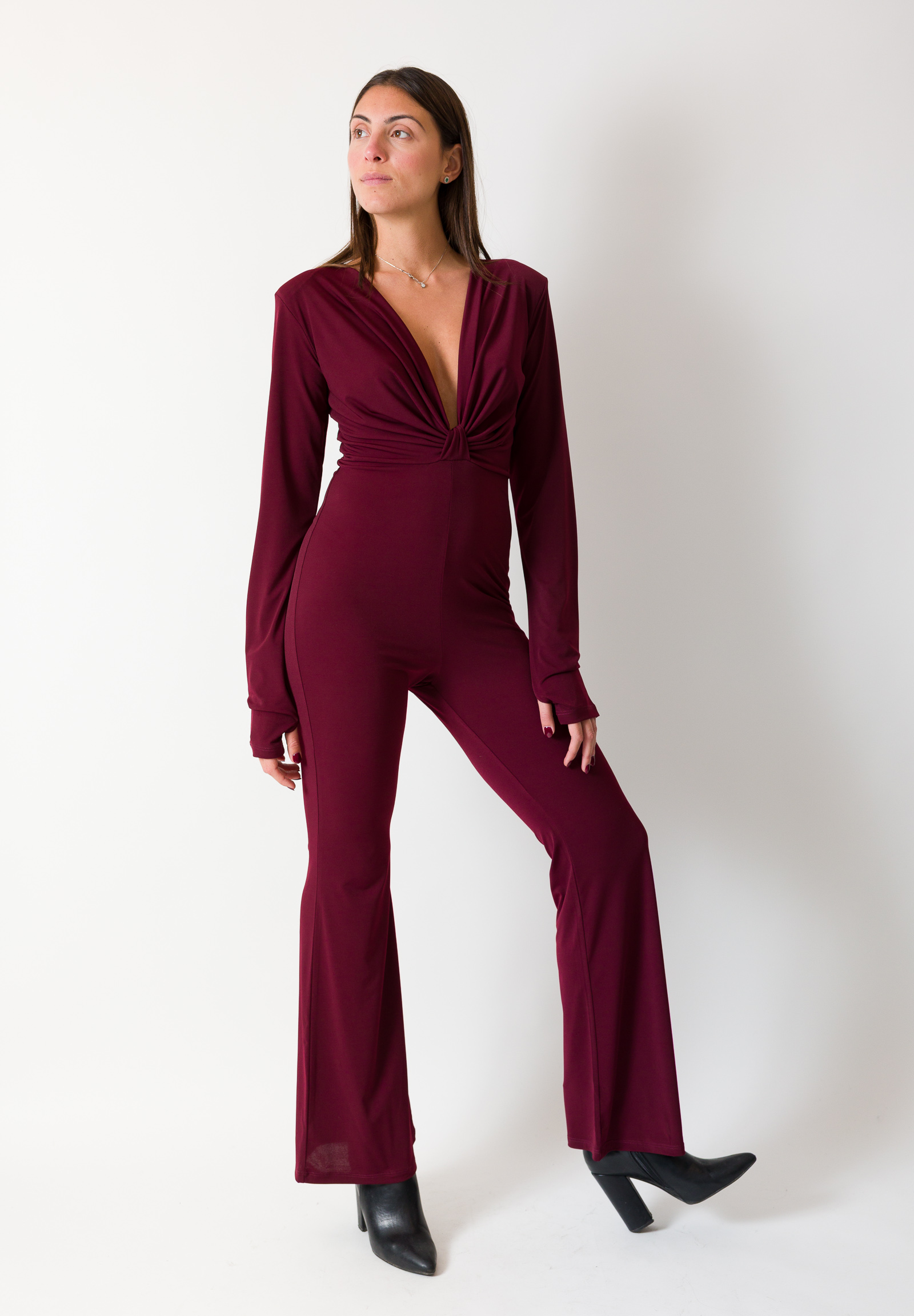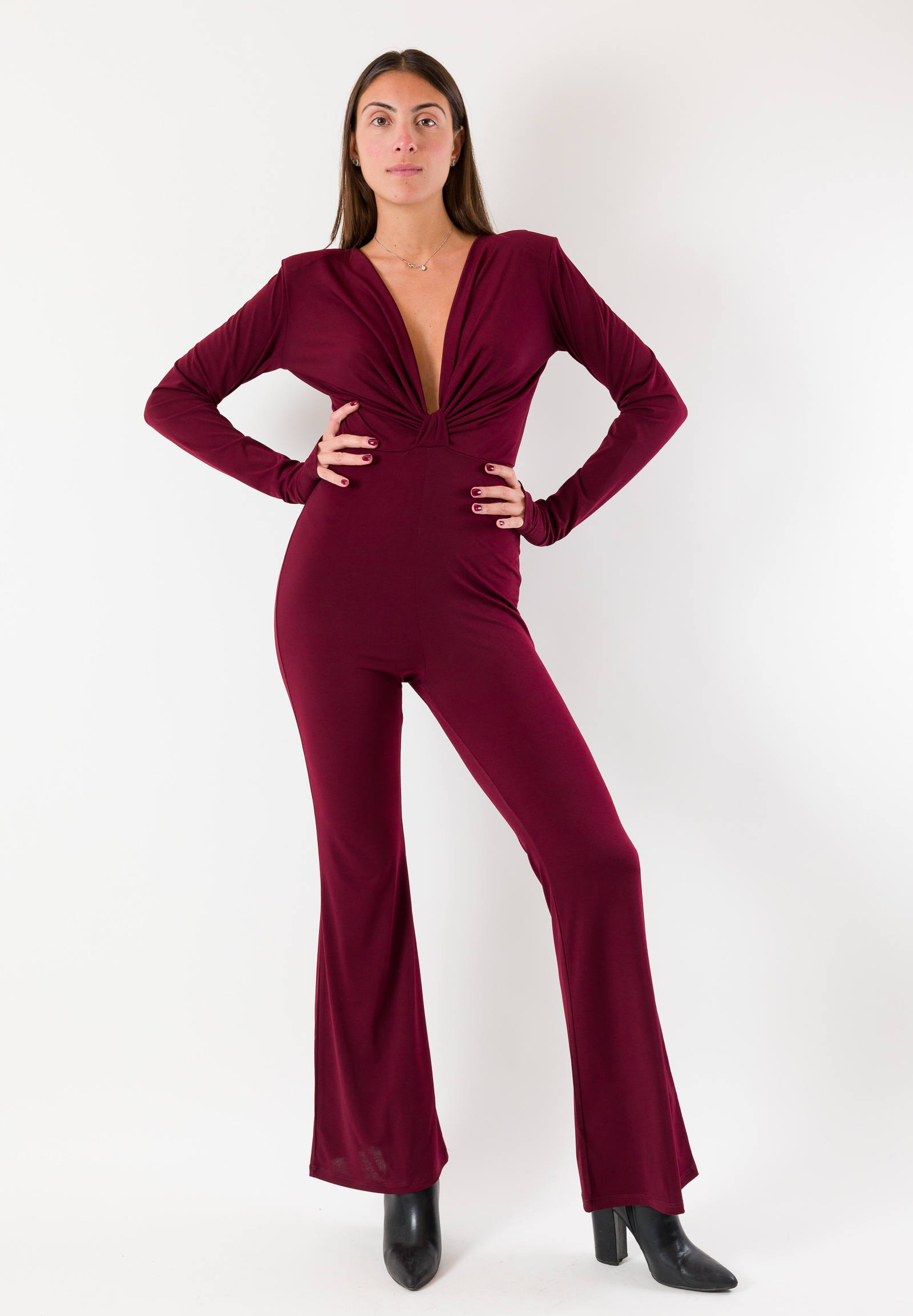 Celebrate le festività con stile grazie alla tuta elegante Kontatto Collezione Natale 2026, un capo raffinato e femminile perfetto per serate speciali, party e occasioni glamour. Realizzata in tessuto morbido e fluido, valorizza la silhouette con una linea avvolgente e una scollatura profonda che aggiunge un tocco di sensualità sofisticata.