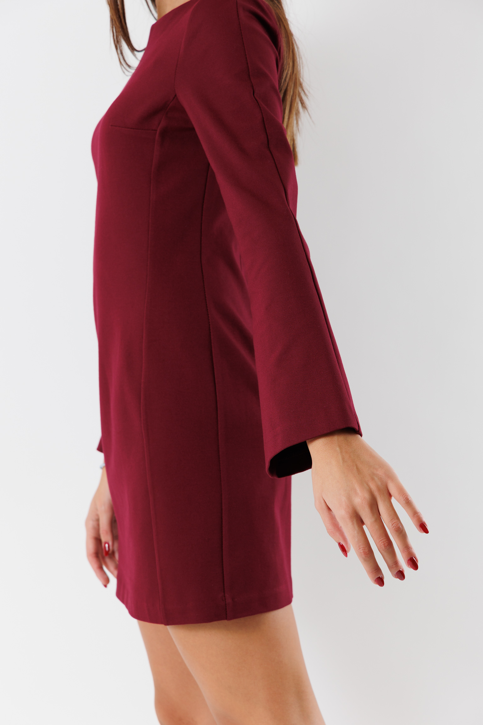 Abito corto con scollo a barca e maniche a campana